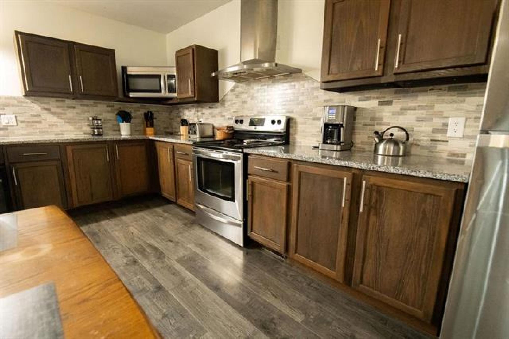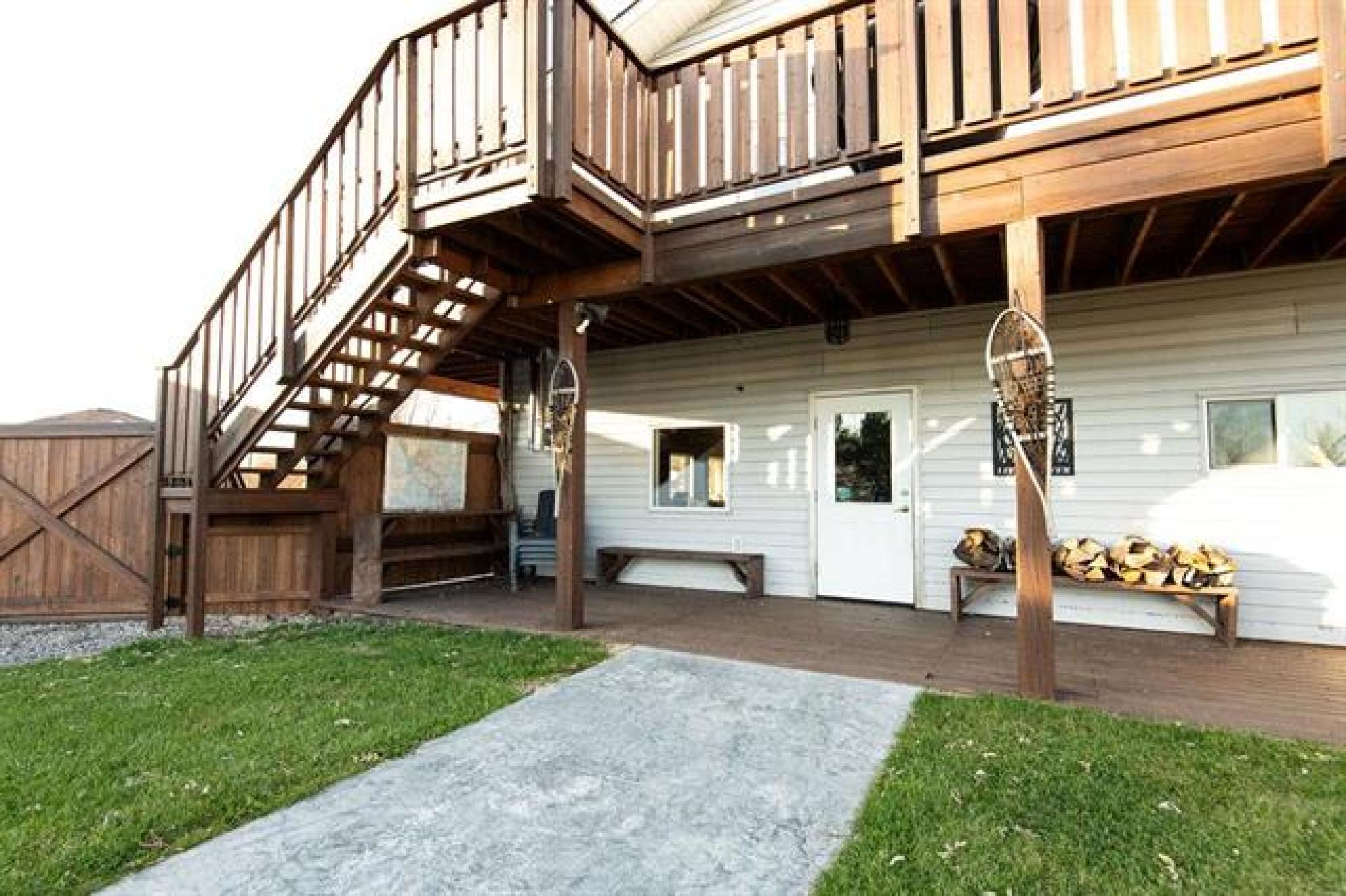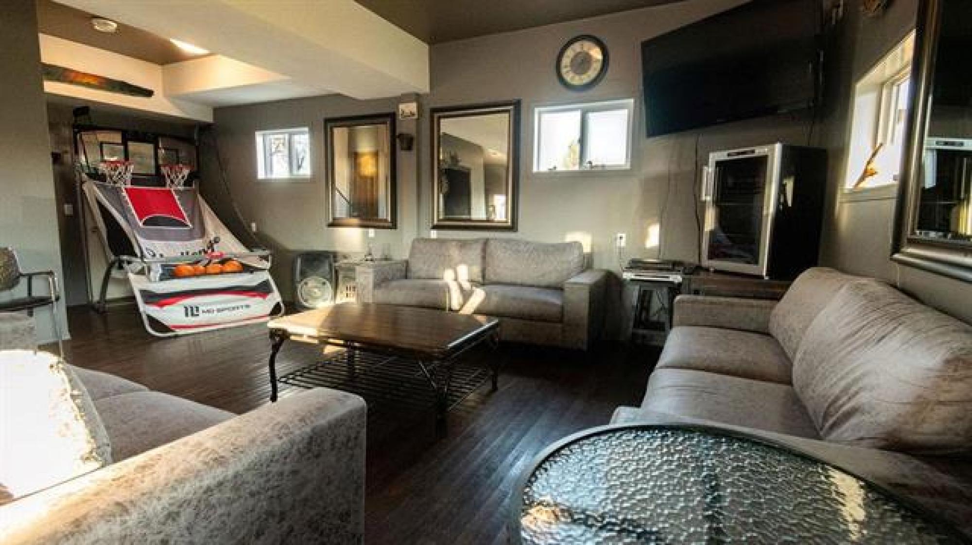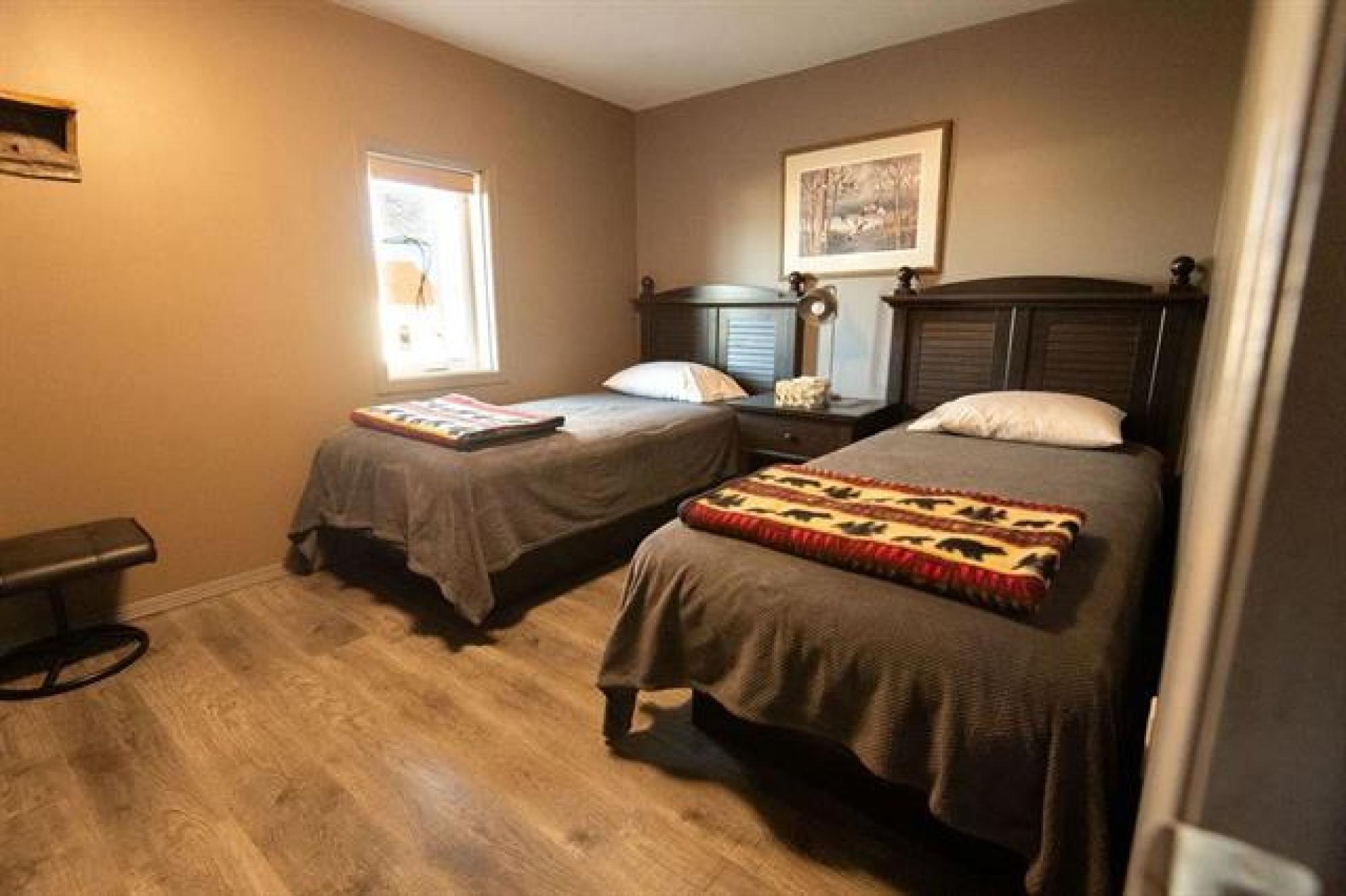 Beautiful whole-house retreat in Marchand, operating as a successful Airbnb since 2022 with a 4.97-star rating and 94 reviews. This spacious property sleeps 16+ guests with 7 bedrooms, 3 - 3pc bathrooms, 2 - 2pc bathrooms, plus huge kitchen & dining area connected to huge wrap second story decks. Fully furnished attached manager’s suite. Enjoy the games room with pool table, smart TVs, Wi-Fi, coin-op laundry, and a large fenced backyard with a fire pit. Insulated heated garage, storage outbuildings, and 65' x 30' Quonset offer exceptional space and flexibility. Perfect for corporate retreats, family gatherings, golf groups, snowmobile/ATV/SxS groups and hunting trips. A large circular driveway provides ample trailer parking. Located just minutes from the extensive Sandilands trail system. Gas station and store across the street and a vendor/bar next door. See supplements for income and expense details plus more info. 2 Titles for property.