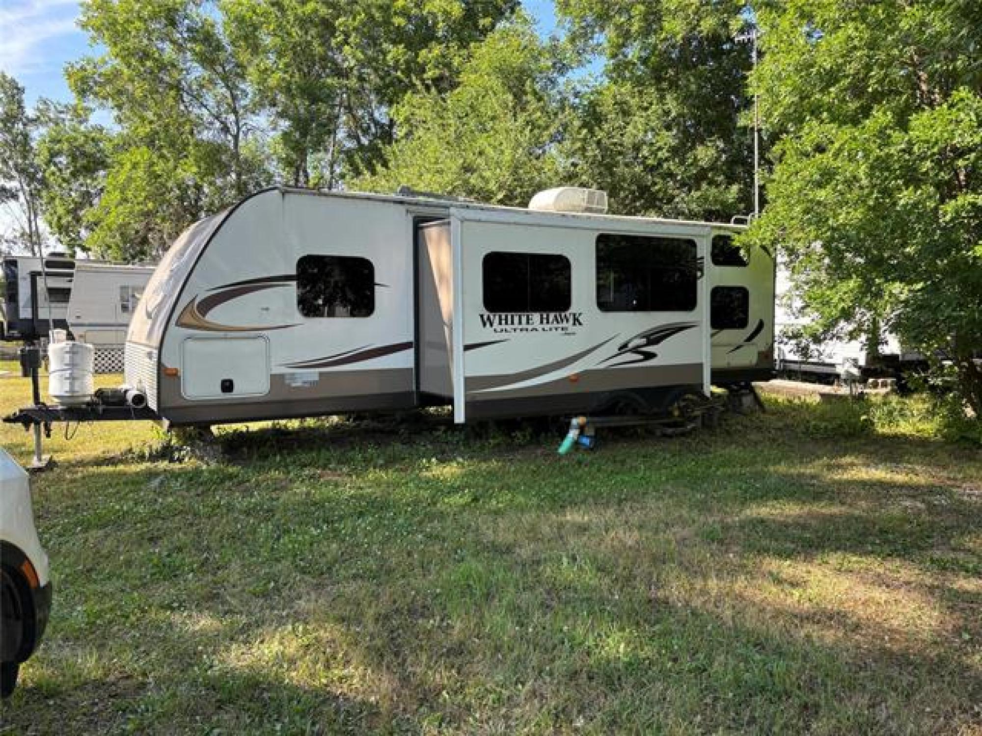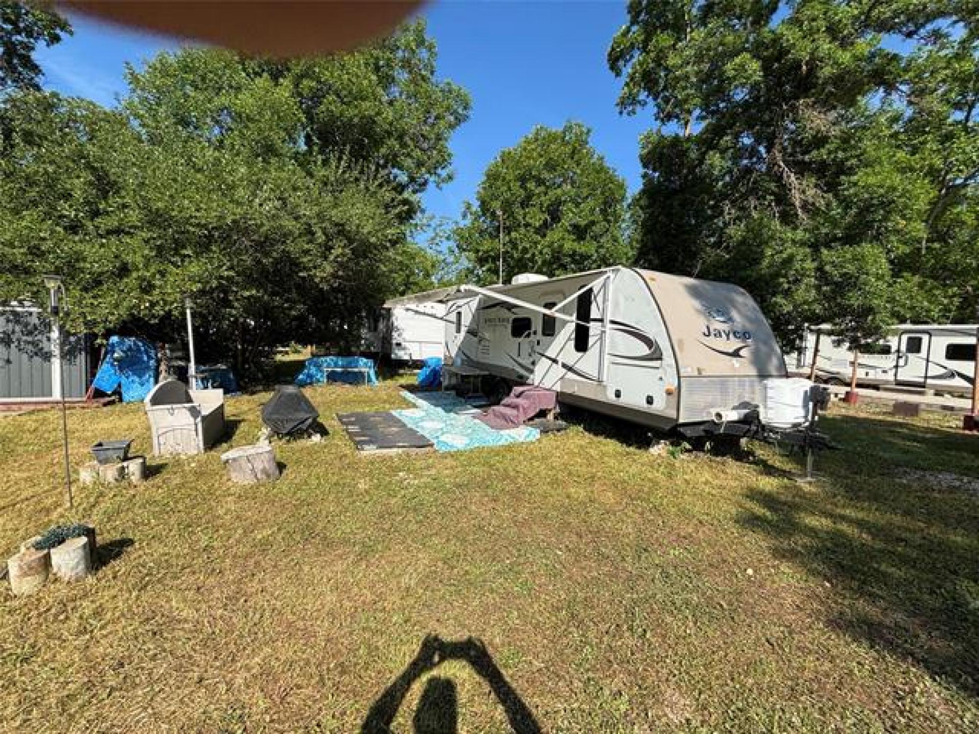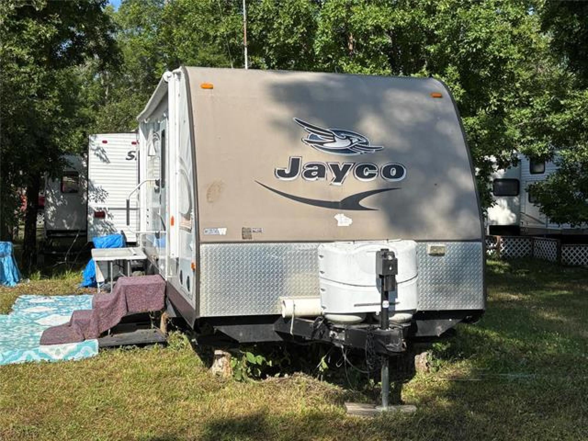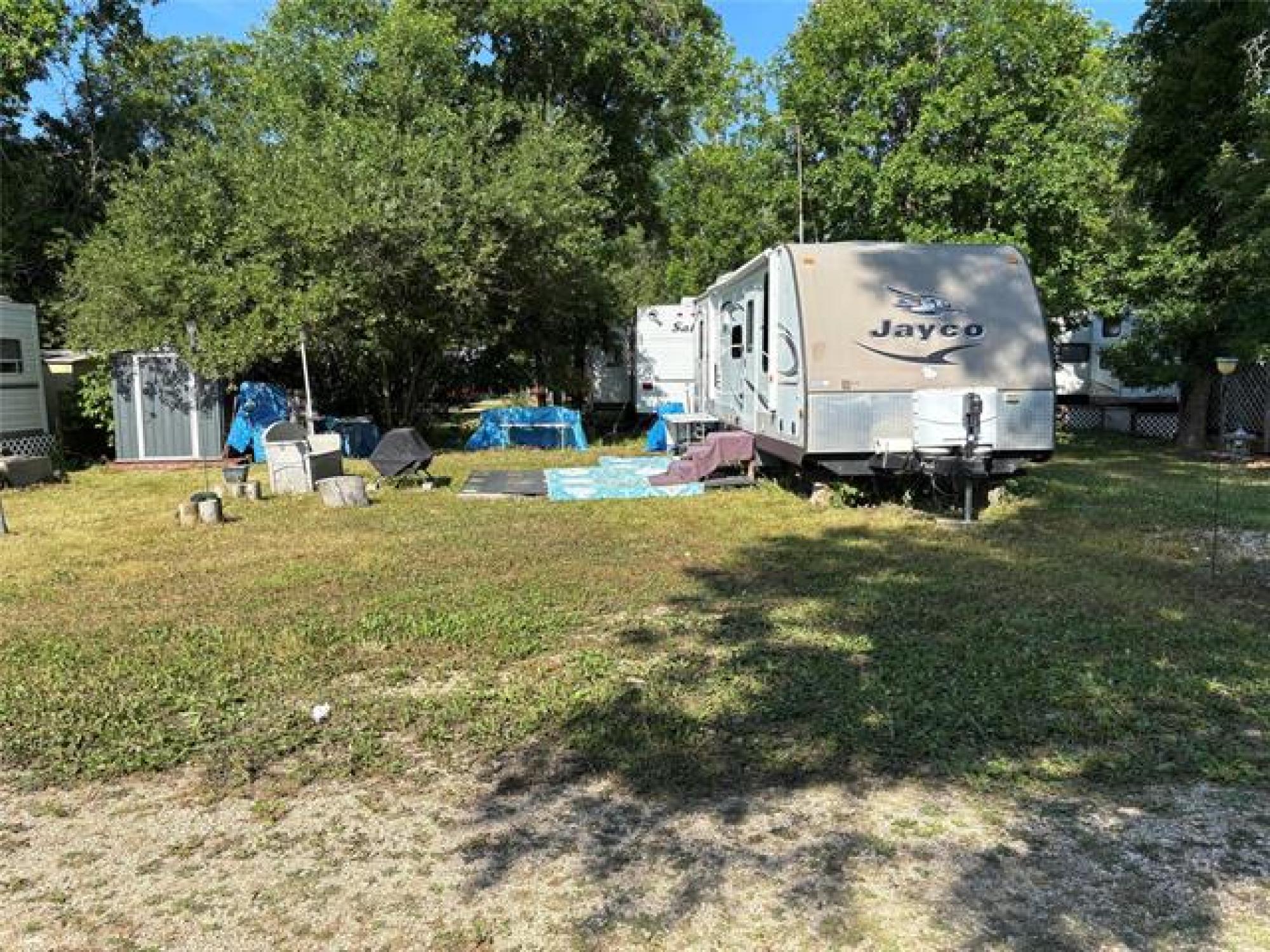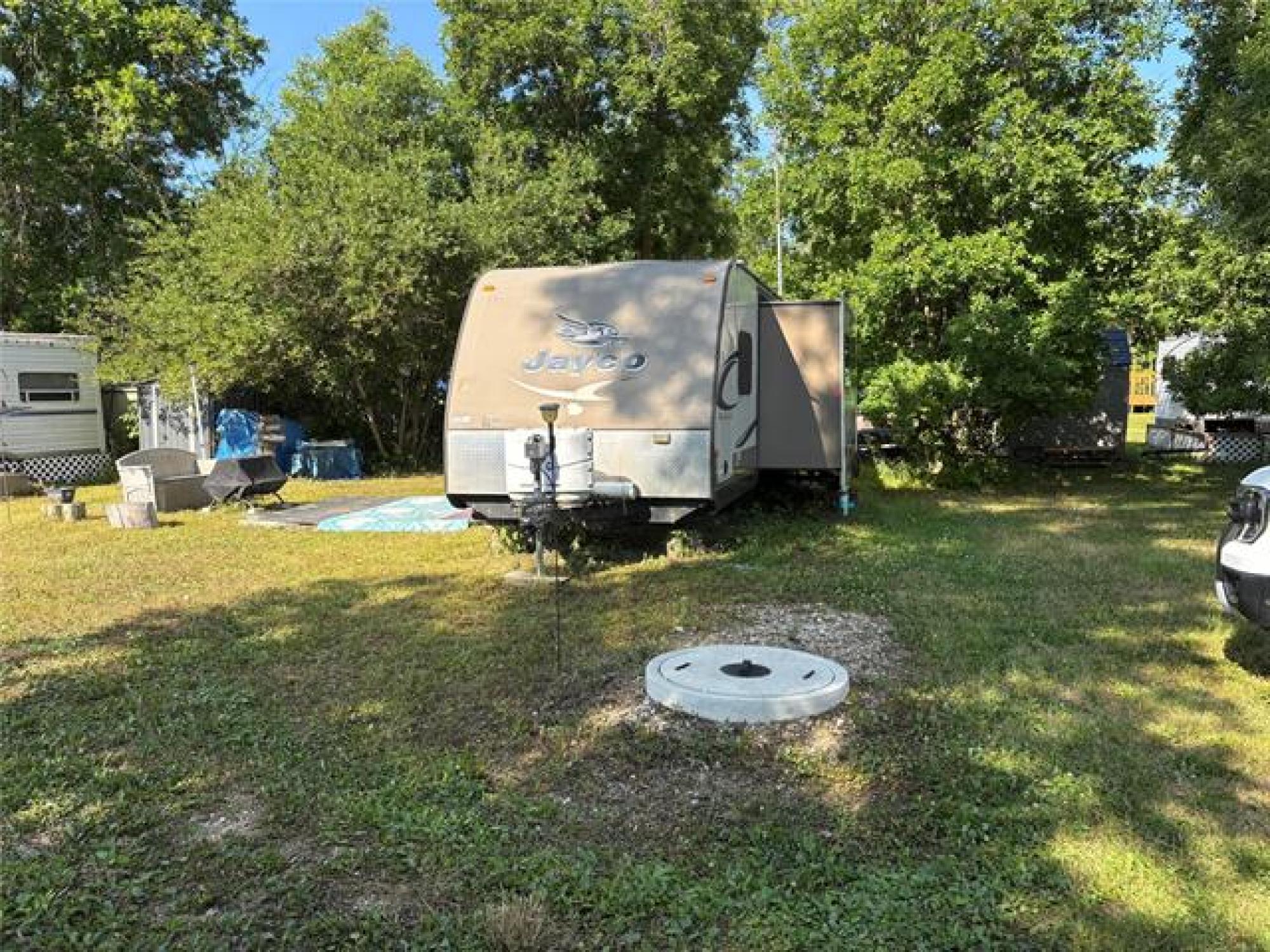 Beautiful move in ready 28 foot Jayco camping trailer. Sleeps 10. 3 burner stove and oven. On a huge lot. Front main bedroom. Rear double bunks plus futon and table that can be made into a double bed. electric awning. Air conditioned Season is from may 15th to Sept 15th, Then there is no more hydro or water available. trailer can stay on site during winter and can be accessed, Rental season runs from May to May. Lot fee of $2100 is paid for 2025 . Inclusions are bedding, shed, firewood, kayak, paddle board, bench, fire pit, equalizer hitch. 2 propane tanks. Outside access direct to bathroom. Campground has showers, washrooms, clubhouse, playground.