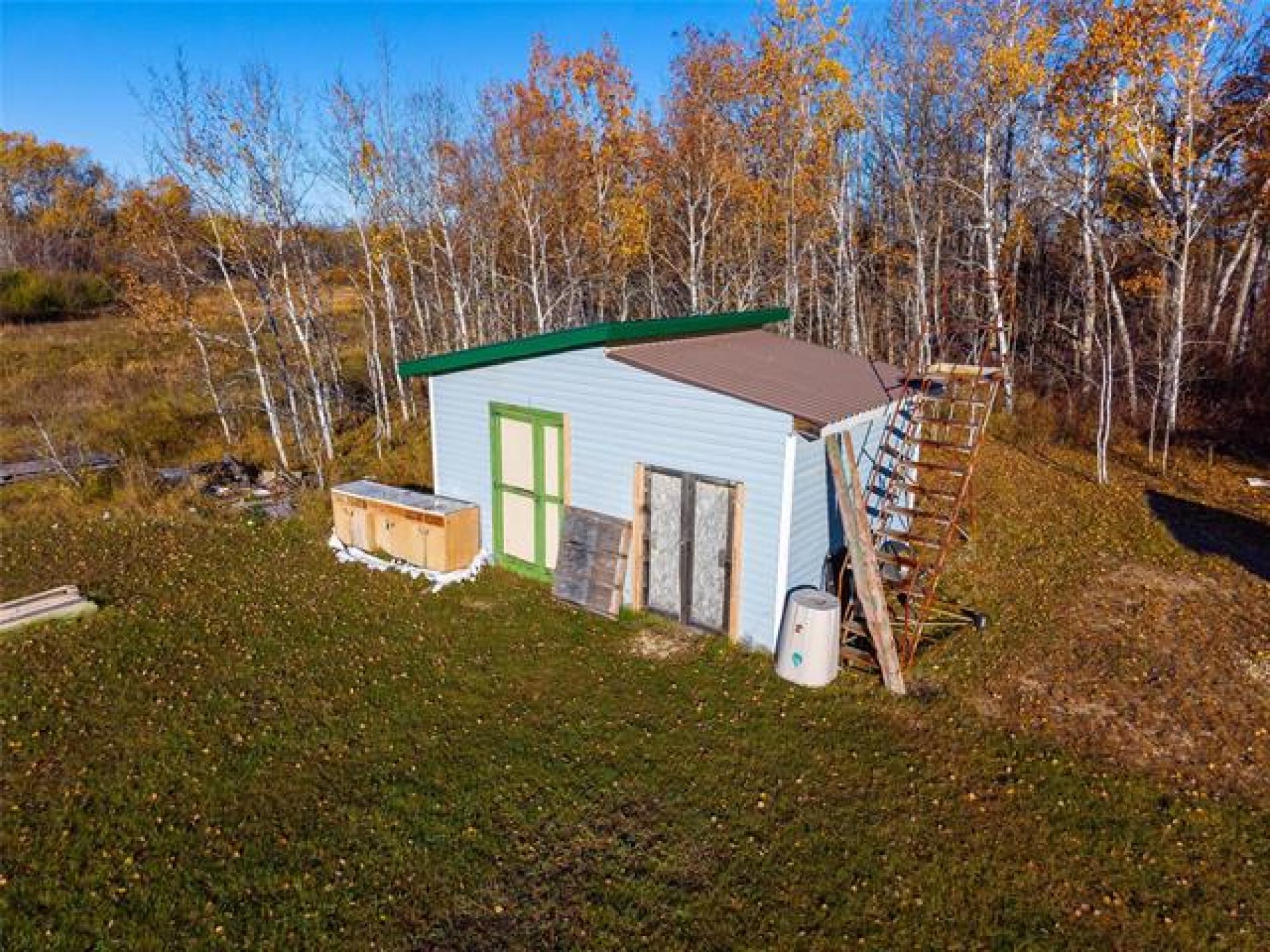 Discover 160 acres of natural beauty at 105071 Road 8 E. This property offers the perfect mix of privacy and potential for recreational use or hunting. The land is primarily treed with approximately 30 acres of open hay land, providing a blend of cover and open space for wildlife and outdoor activities. A modest dwelling on the property includes power and a wood stove, creating a comfortable base camp for weekend getaways or hunting trips. Additional structures include a large storage shed for equipment and a smaller utility shed. There is currently a well with hand pump but no plumbing on site, offering a blank canvas for future development. Surrounded by nature and rich with wildlife, this property presents a rare opportunity to own a sizeable piece of Manitoba wilderness that is ideal for hunters, nature lovers, or anyone looking to create an off-grid retreat.