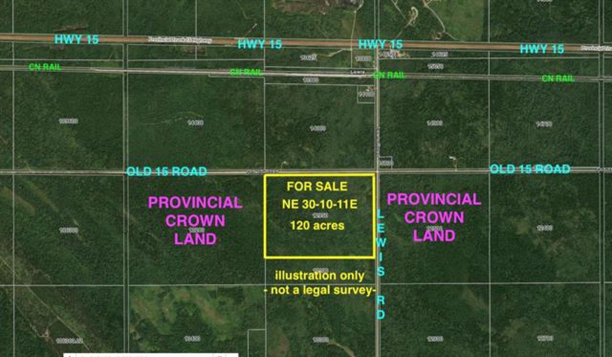 This magnificent 120 acre parcel offers an inviting blend of rolling poplar ridges, pockets of tamarack & black spruce, & stunning old growth spruce trees surrounding a historic yardsite. The property sits proudly on a corner lot bordered by Old 15 Road to the north & Lewis Road to the east, with an approach leading into the original homestead. A handful of outbuildings & a derelict 2 storey house remain, & while all should be demolished, one can easily imagine how this must have been the grandest home in Lewis when it was first built. Hydro runs along both roads, & there’s evidence the old house was once serviced, offering added potential for future development. Posts are already in place for your own chain across the driveway, providing simple peace of mind when you’re away. Whether you envision a new home, recreational retreat, or simply enjoying the land in its untouched natural form, this property offers endless opportunities. Just an easy 41 minute drive from the city’s east perimeter and less than 10 minutes from Elma. This site has some obvious hazards, with potential for there to be an old well somewhere (possibly in a building); do NOT enter the house - the pictures in the house tell why.