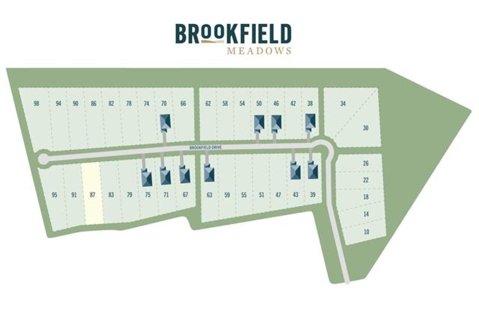 Brookfield Meadows. This .85 acre lot, with South back yard, has room and width for a triple garage, backyard oasis and workshop/studio. This development checks all the boxes with municipal water, natural gas, low-flow sewer and a wide paved no-through street with underground drainage and school bus service. Build your custom home in a safe, quiet and private community just 10 minutes from the perimeter. No time restrictions and you can bring your own builder or consult with one of our premier builders in the area. City close, country perfect.