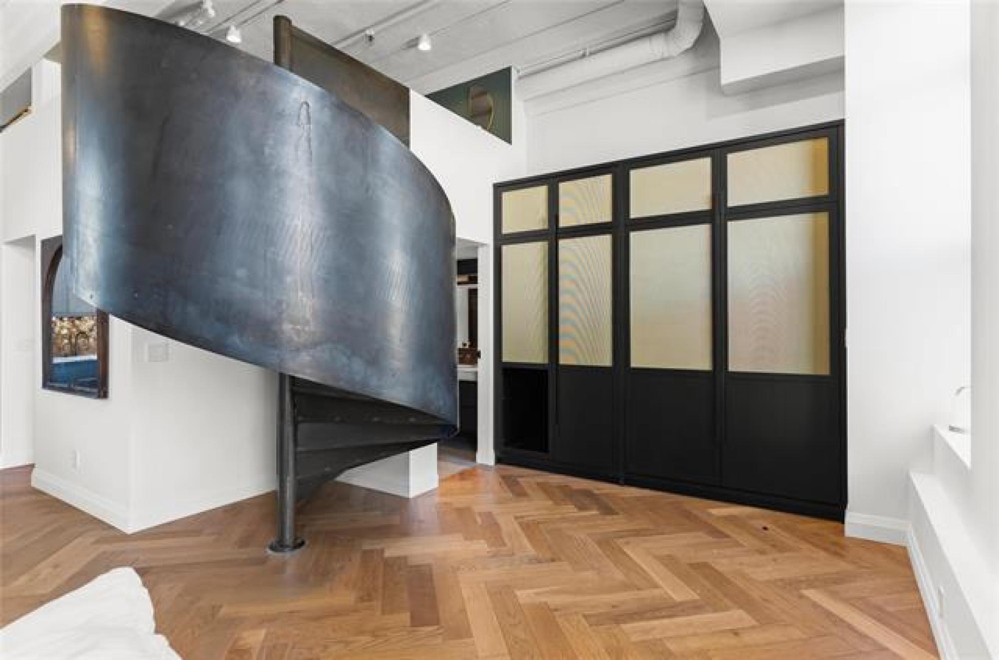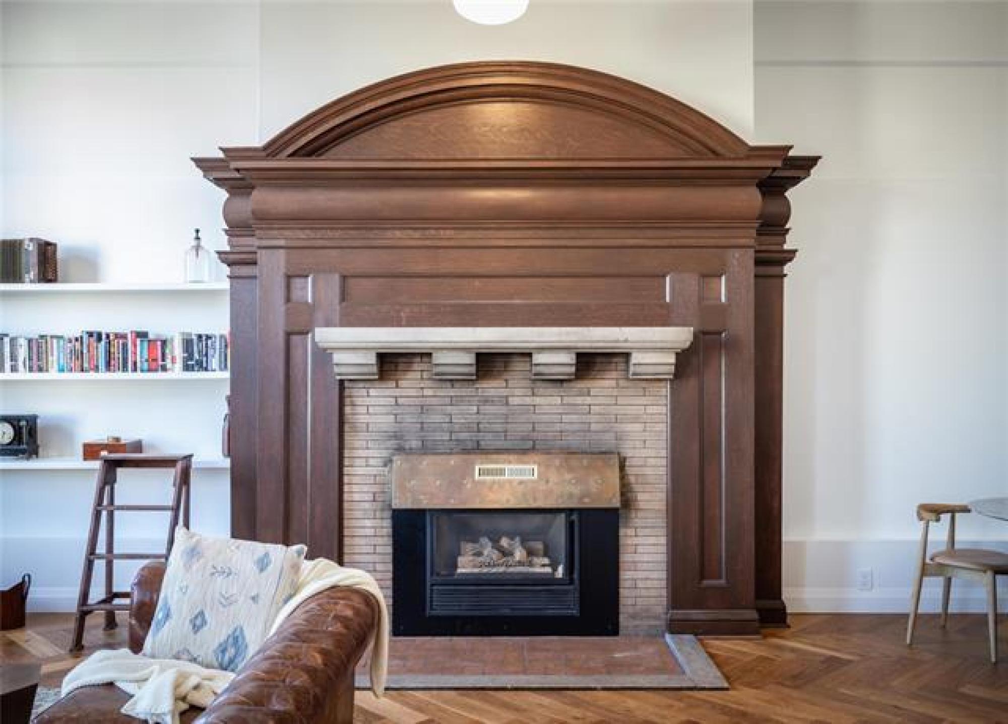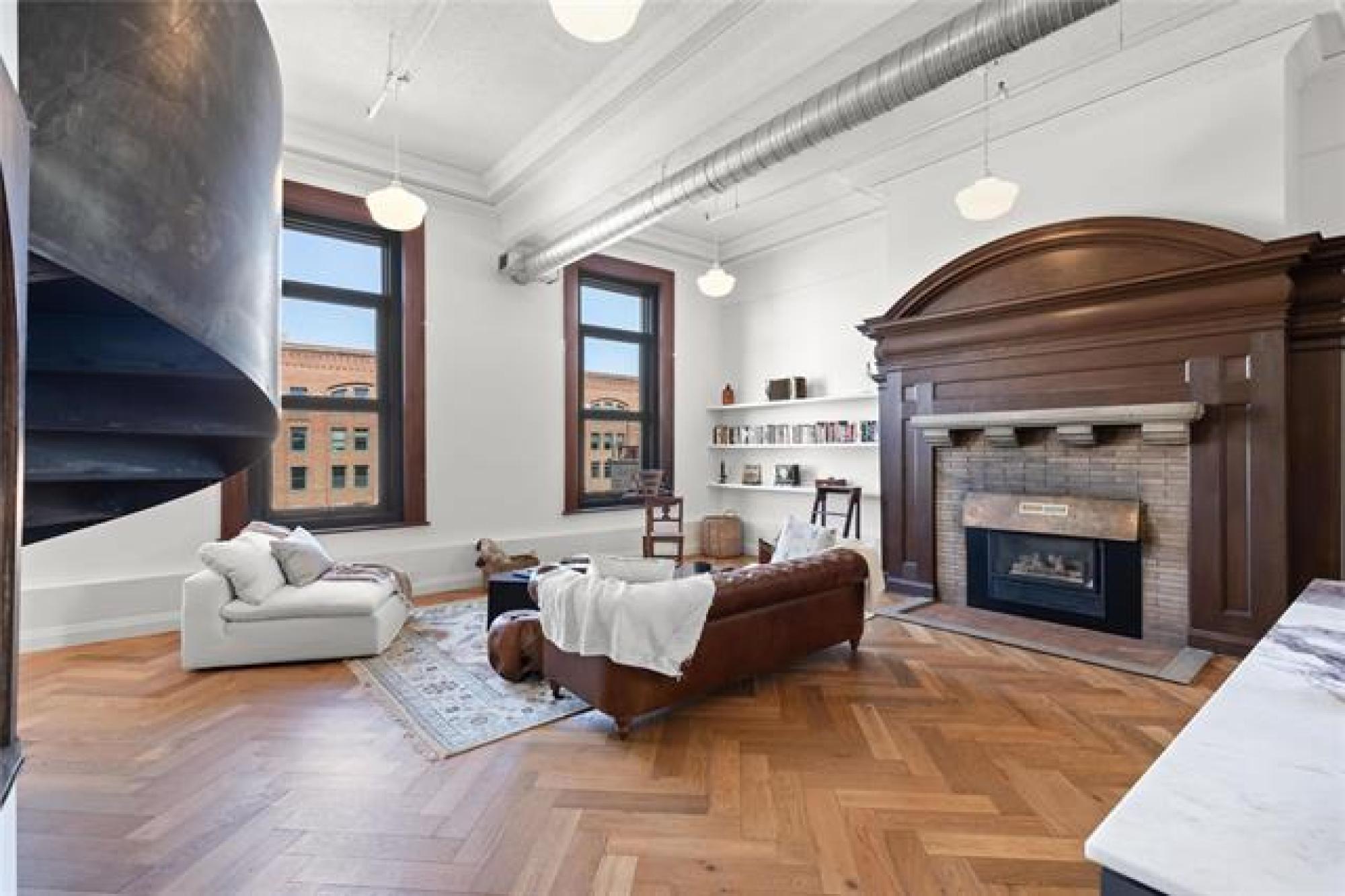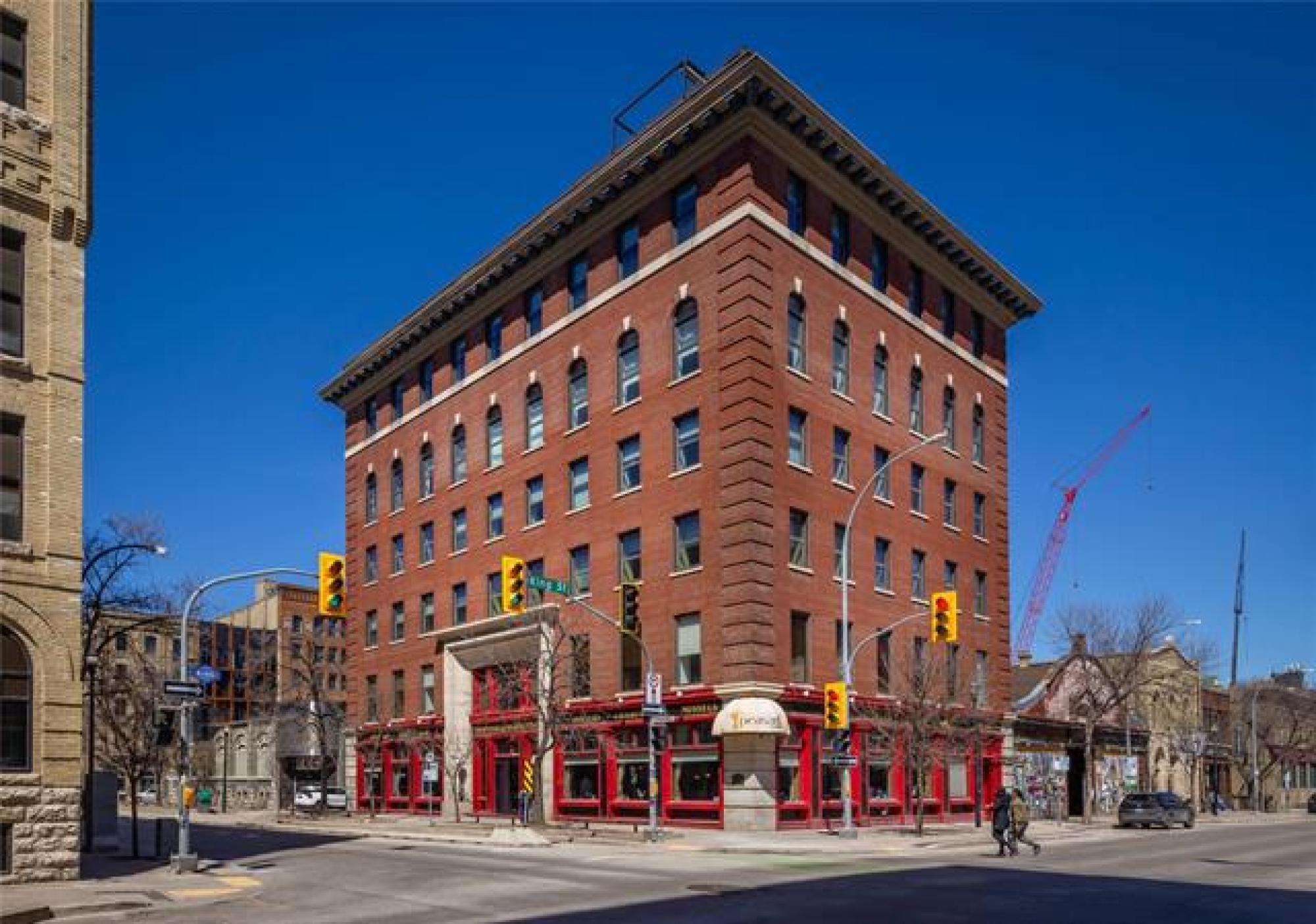 A one-of-a-kind loft condo in the historic Travellers Building in Winnipeg’s Downtown Exchange District. This high-end renovation spared no expense and left left no detail untouched—14' ceilings, chef’s kitchen with Monogram stainless steel appliances including a gas range, marble countertops, and a custom steel spiral staircase that’s pure architectural art. Warm herringbone wood floors run throughout, and the gas fireplace with wood and brick surround adds timeless character. The spa-like bathroom features custom concrete sink and heated tile floors that extend into the shower and bench. A den off the living area includes a built-in Murphy bed—ideal for guests, a home office, or gym. The loft-style bedroom overlooks the open-concept living space. Surrounded by restaurants, including Peasant Cookery on the main floor of the building, galleries and steps from The Cube and summer festivals—this is front-row living in one of the city’s most vibrant neighbourhoods. There’s nothing else like it. Unit can be sold fully furnished. Pet friendly building. Utilities are included in the condo fees. Various parking options available from rooftop to underground from $195-$245/Mo. Short Term Rentals permitted!