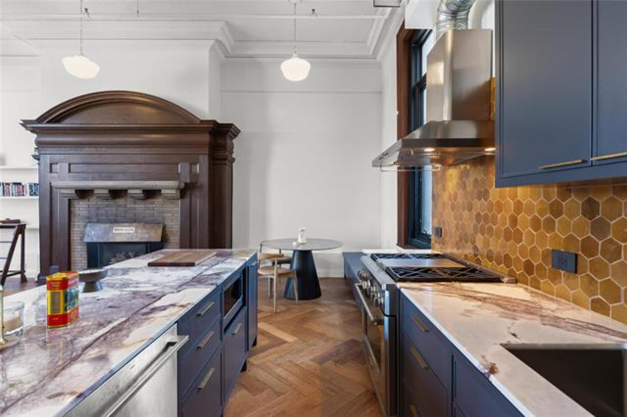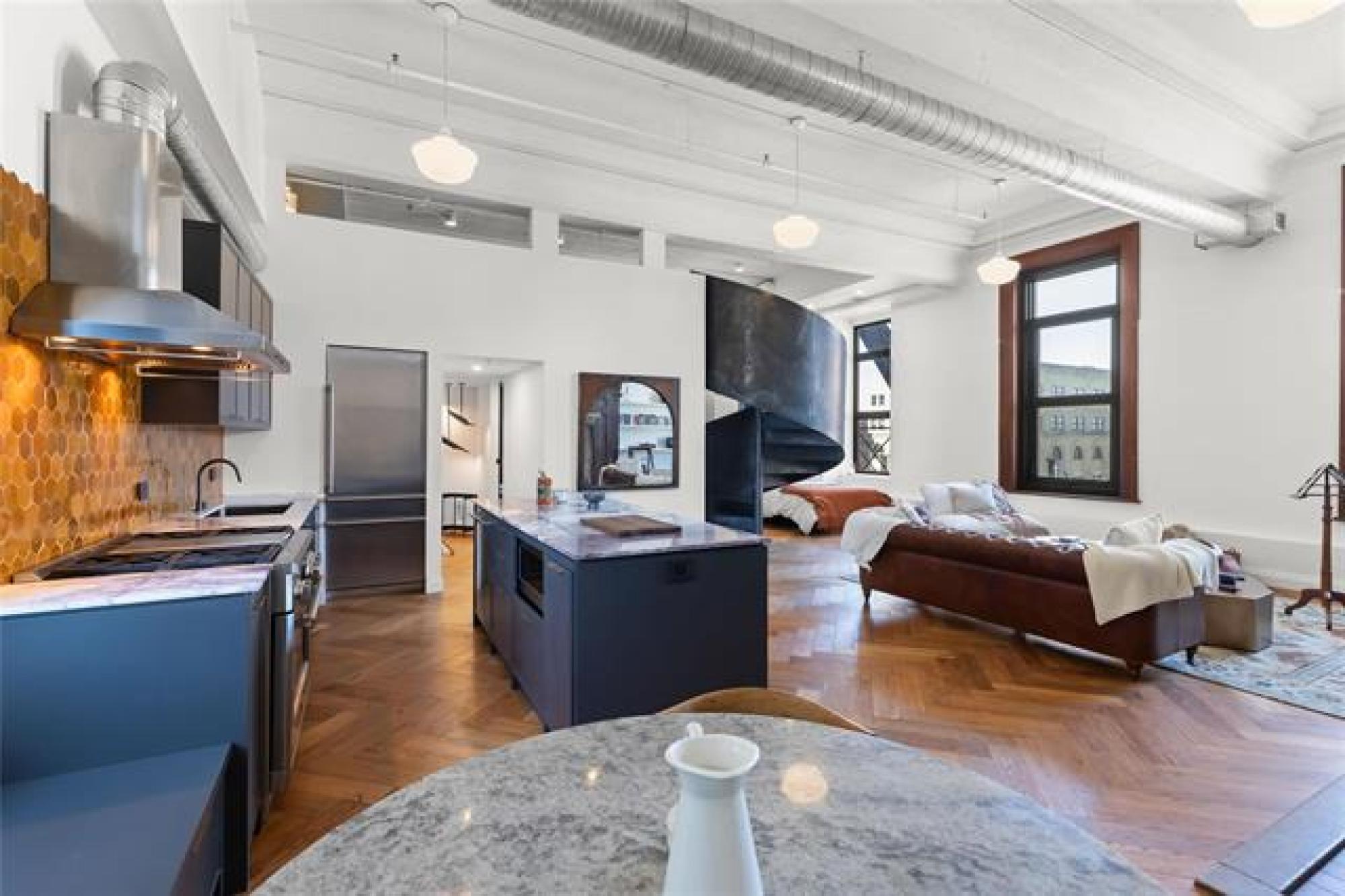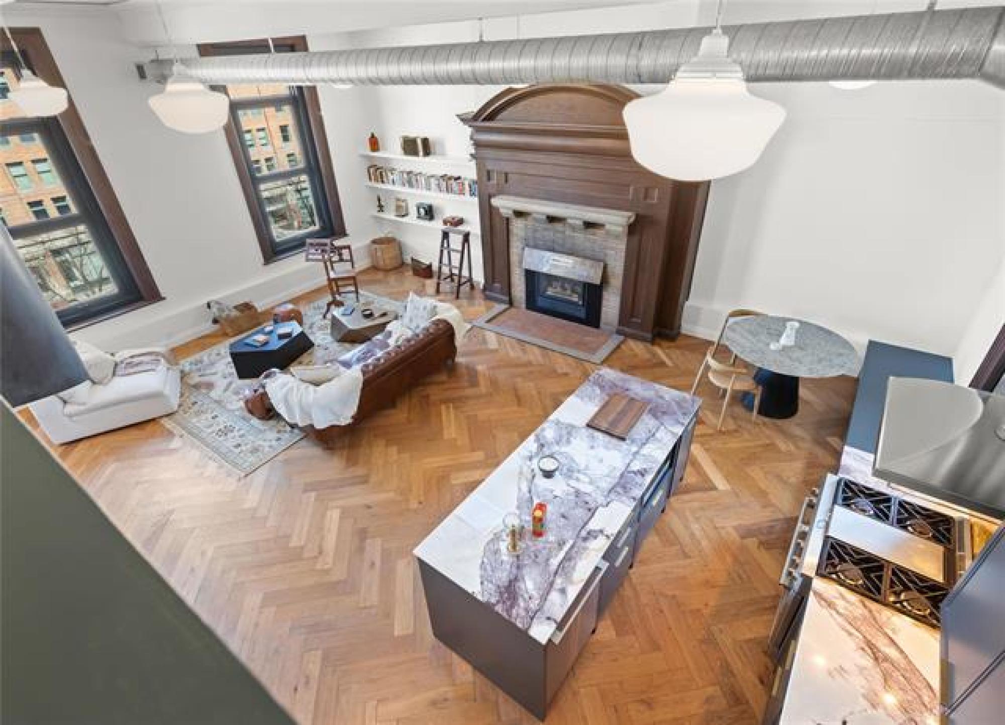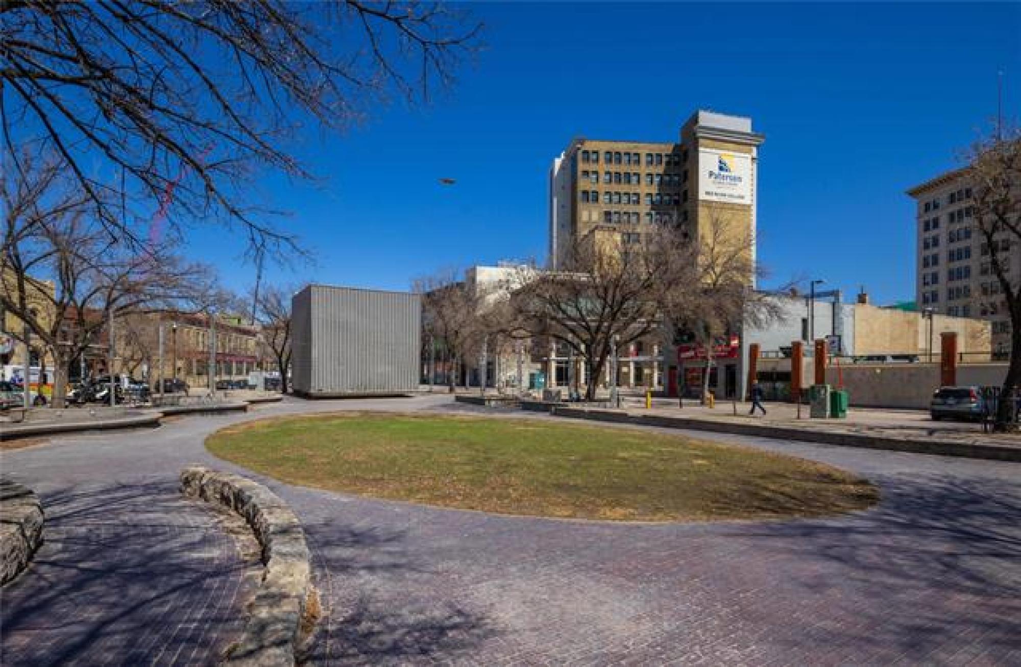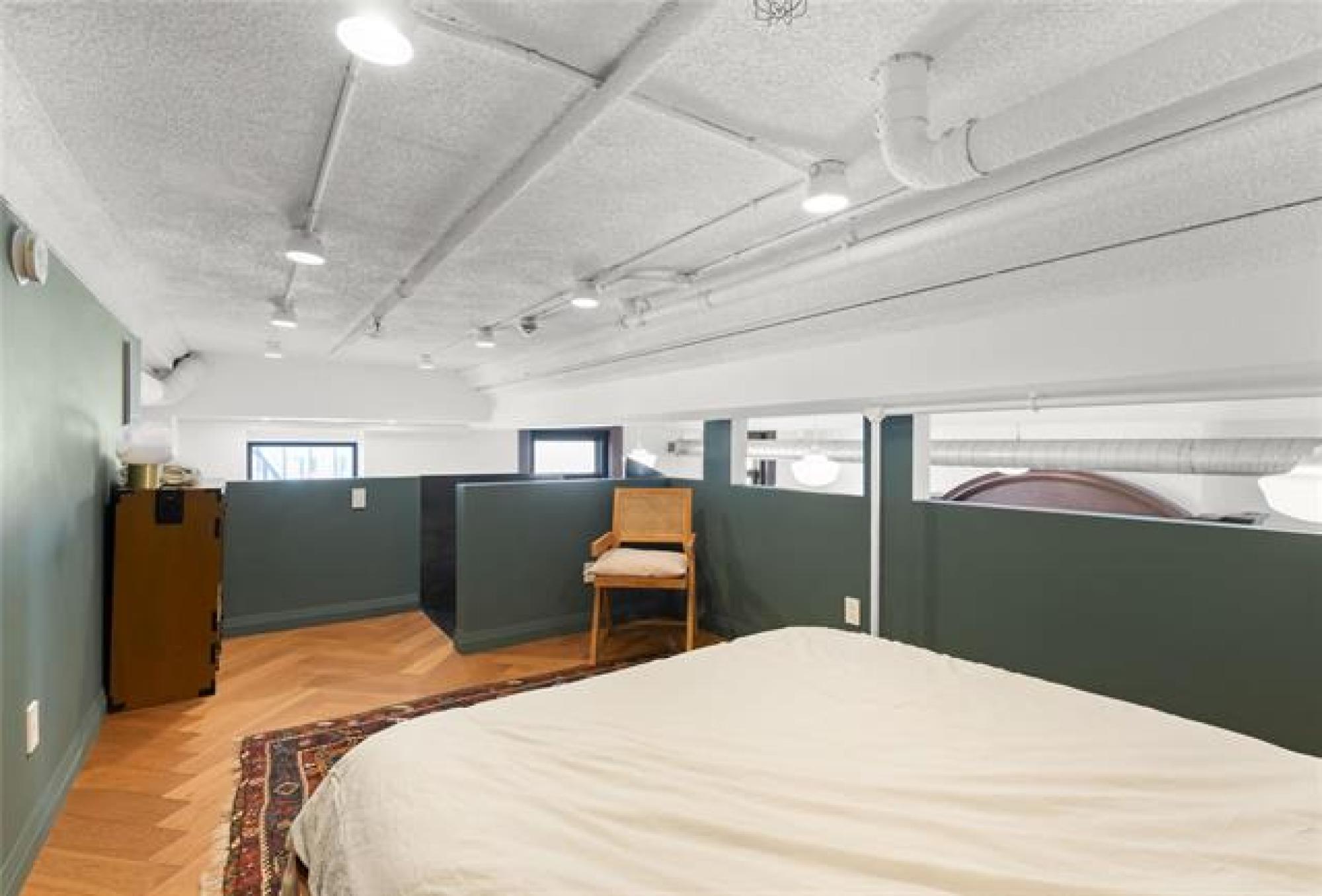 A one-of-a-kind loft condo in the historic Travellers Building in Winnipeg’s Downtown Exchange District. This high-end renovation spared no expense and left left no detail untouched—14' ceilings, chef’s kitchen with Monogram stainless steel appliances including a gas range, marble countertops, and a custom steel spiral staircase that’s pure architectural art. Warm herringbone wood floors run throughout, and the gas fireplace with wood and brick surround adds timeless character. The spa-like bathroom features custom concrete sink and heated tile floors that extend into the shower and bench. A den off the living area includes a built-in Murphy bed—ideal for guests, a home office, or gym. The loft-style bedroom overlooks the open-concept living space. Surrounded by restaurants, including Peasant Cookery on the main floor of the building, galleries and steps from The Cube and summer festivals—this is front-row living in one of the city’s most vibrant neighbourhoods. There’s nothing else like it. Unit can be sold fully furnished. Pet friendly building. Utilities are included in the condo fees. Various parking options available from rooftop to underground from $195-$245/Mo. Short Term Rentals permitted!