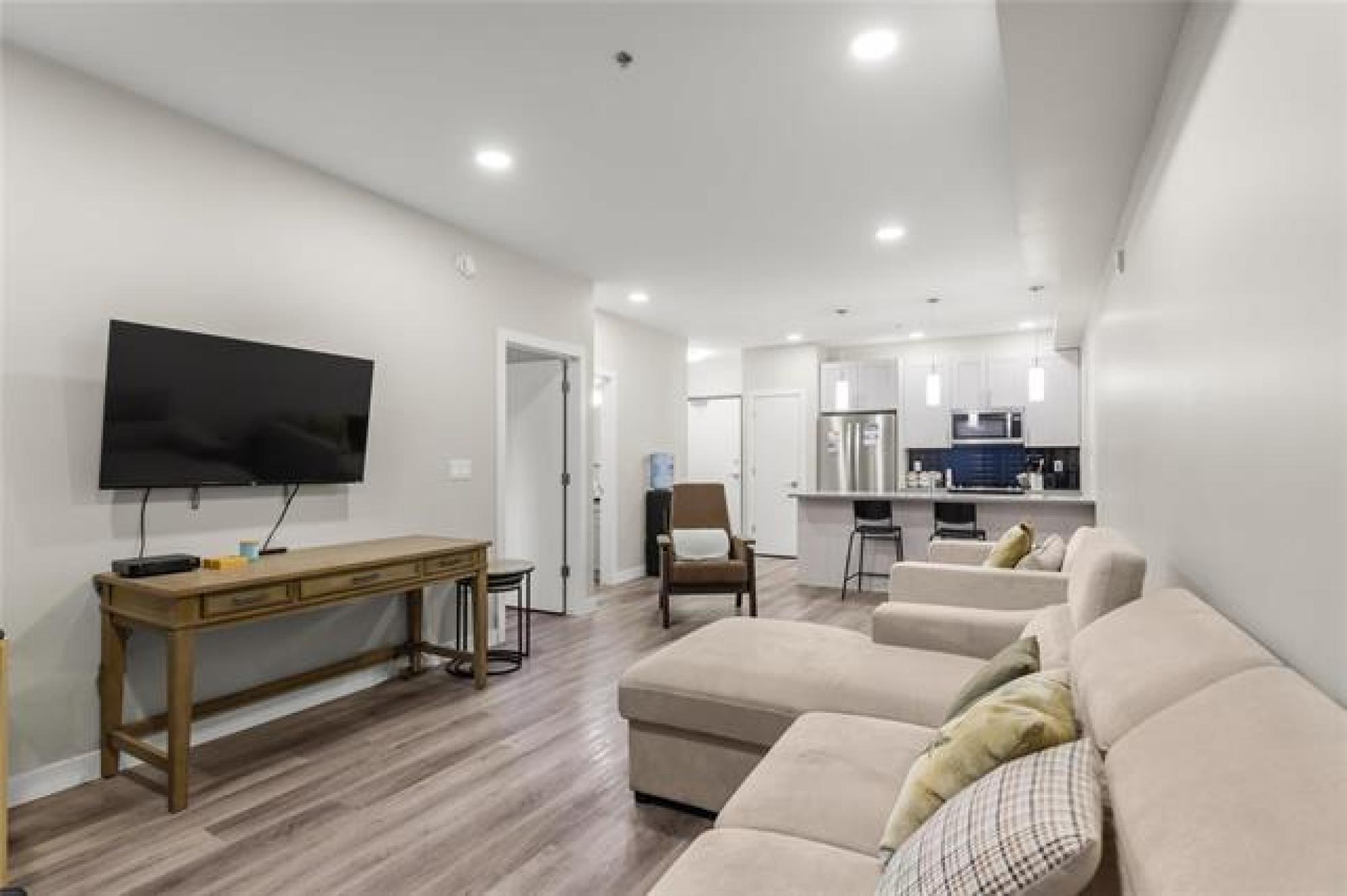 Discover modern condo living at 1505 Molson St, Unit 137! This bright 1-bedroom, 1 bath home spans 767 sqft with a thoughtful layout designed for comfort and convenience. Enjoy a main floor location with an east facing balcony that fills the space with natural light. The kitchen shines with quartz counters, tiled backsplash, peninsula seating, and stainless steel appliances, while durable vinyl plank flooring flows throughout. In-suite laundry makes daily living easy, and low condo fees include 1 outdoor parking stall and a storage locker. Residents have access to a fitness centre, owner’s lounge, guest suites, and flexible common spaces. Ideally situated near shopping and healthcare, this unit offers a low-maintenance, low-cost lifestyle without compromise. Perfect for first time buyers or anyone seeking modern, effortless living.