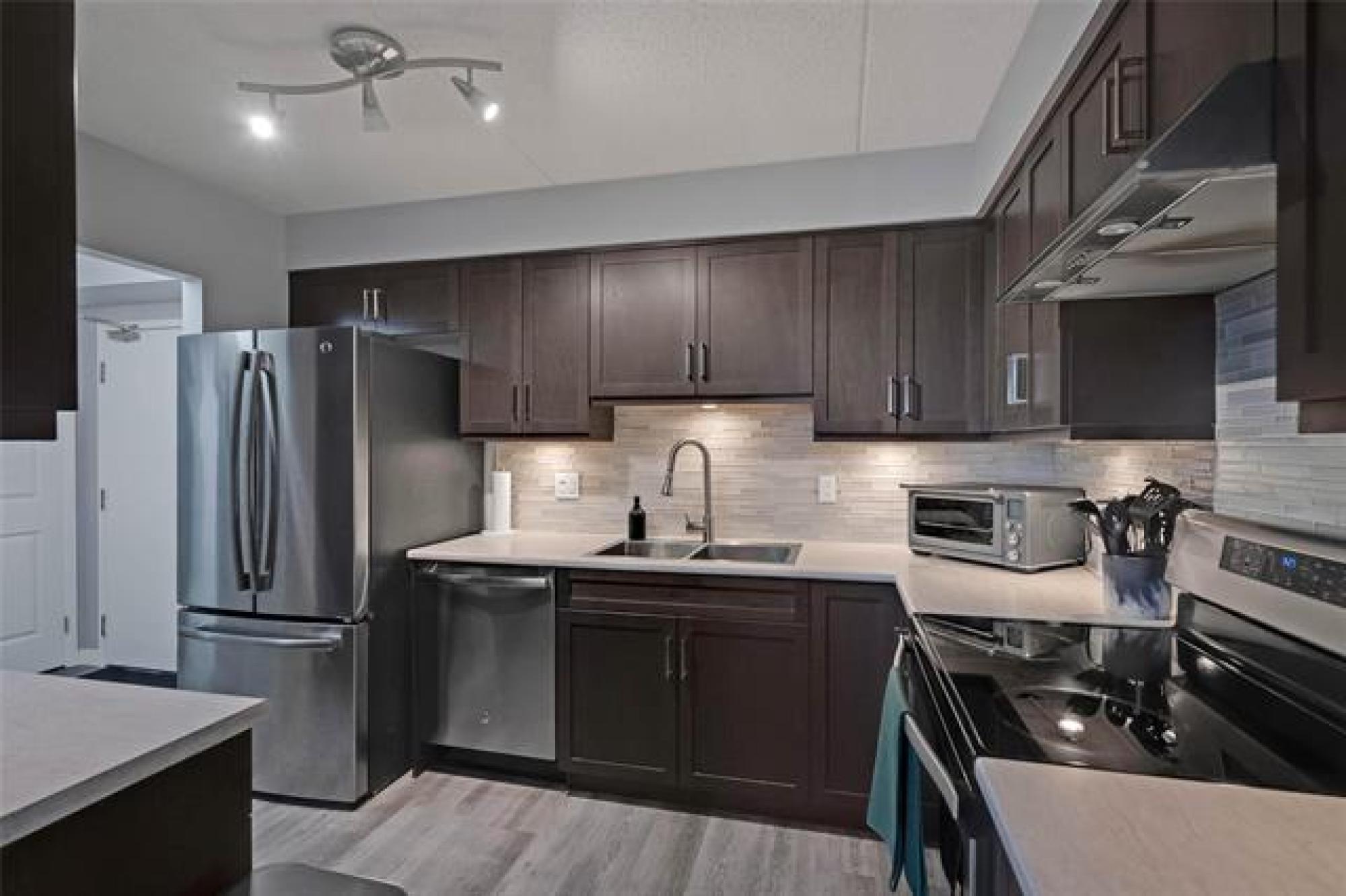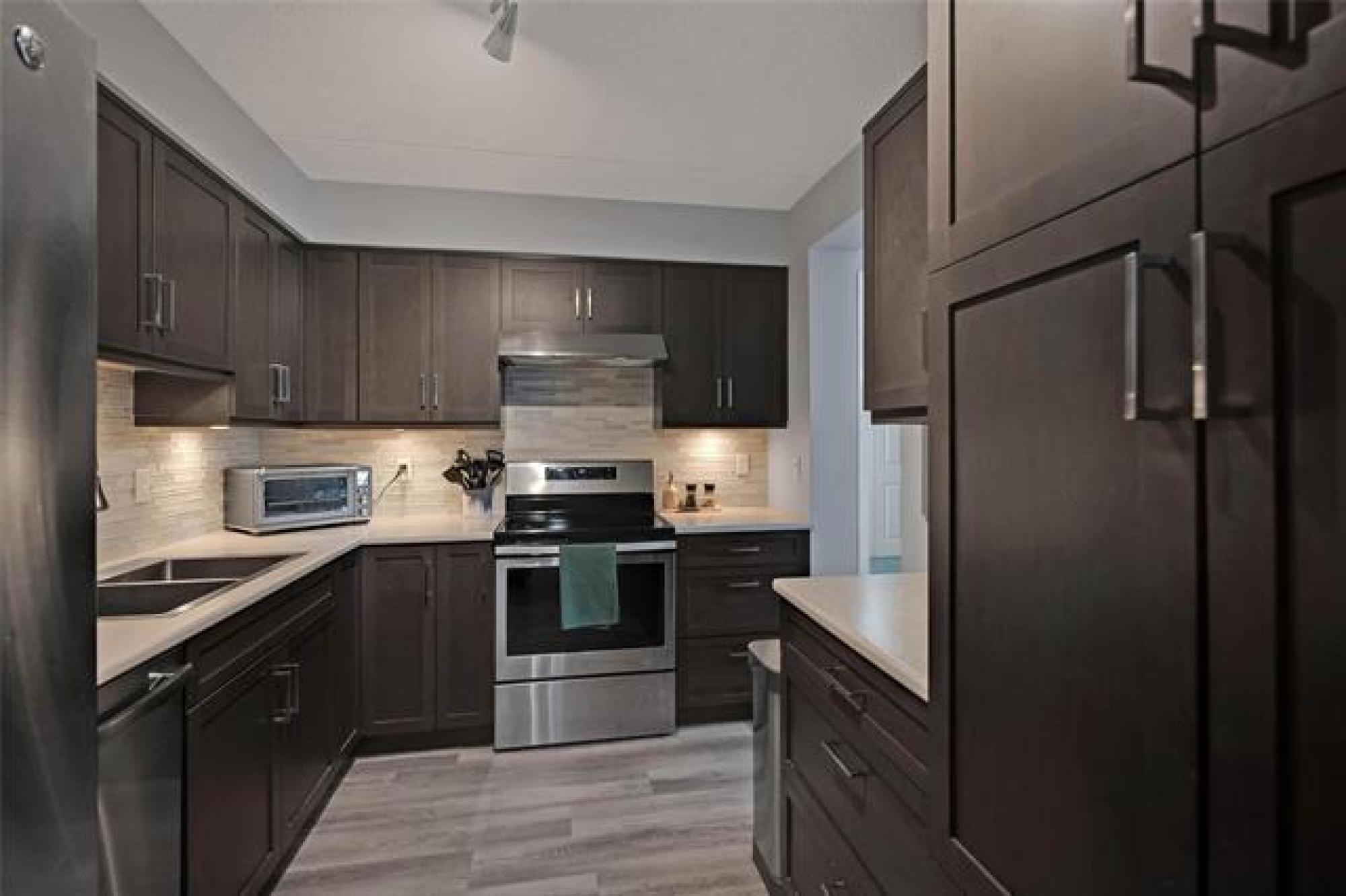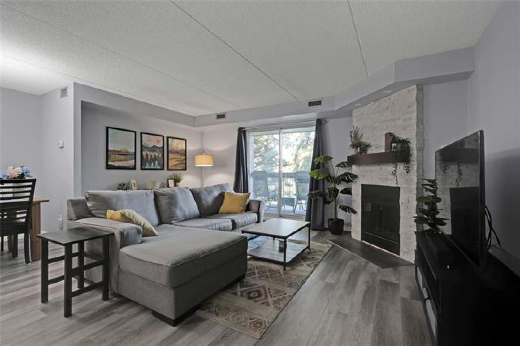 SS Oct 1, OTP Oct 7.Desirable Tuxedo, Park Terrace Complex. This Beautifully Maintained Condo offers a Spacious, Open Floor Plan and is Solid & Stylish! Concrete Building. Modern & Updated 1 bed, 2bath suite w/ Laminate flooring, Renovated Kitchen w/A+ Appliances & Glass Tile Back Splash. Wood-burning Fireplace in large Living-Room/ Dining Room w/ Patio doors to West-facing Balcony with extra Storage. King-Sized PB w/ Ample Closets & Dreamy 4pc ensuite. Designer Décor & Color Pallet too! In suite laundry. Large Storage room. Underground Heated Parking spot included & additional outdoor stalls available. Also, this complex has an Elevator, plenty of Visitor Parking & easy access to transit & all amenities. Lovely landscaping & location and an on-site caretaker too. Condo fees included Cable TV and Internet! This Space does not disappoint! Lucky you!