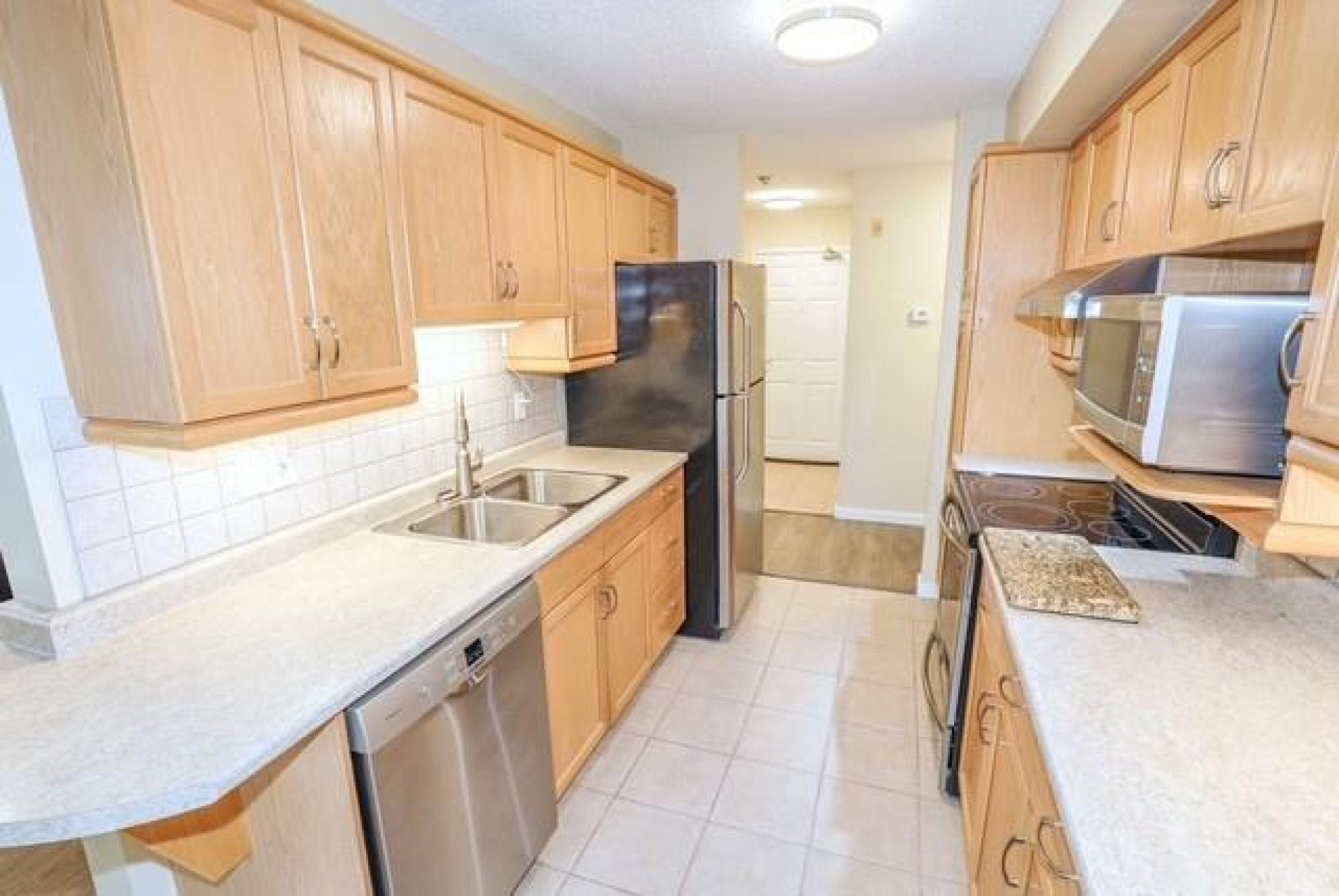 welcome to Windermere Court. Top floor, 830 sq. ft., 1 bdrm, open LR+formal DR newer designer Laminate flooring throughout, under cabinet lighting, kit craft cupboards soft close, newer counter tops, ceramic tile floors+tile backsplash. SS appliances, primary bedroom with closet organizer and pax storage updated bathroom and fixtures . in- suite laundry with lots of storage space garage parking stall has additional storage complex has ample and accessible visitor parking, smoke free unit no pet complex offers handicap access, elevator and security entrance.common room and lounge with fireplace with kitchen and dining area steps away from sobeys dollarama.etc close to trails and bus DARE TO COMPARE INPORTANT INFORMATION THE CONDO FEES 0f $515.84 INCLUDES $103.72 ROGERS XFINITY TOTAL TV AND ROGERS FIBER PLUS 300 wireless internet if the buyer is not interested condo fees $412.00