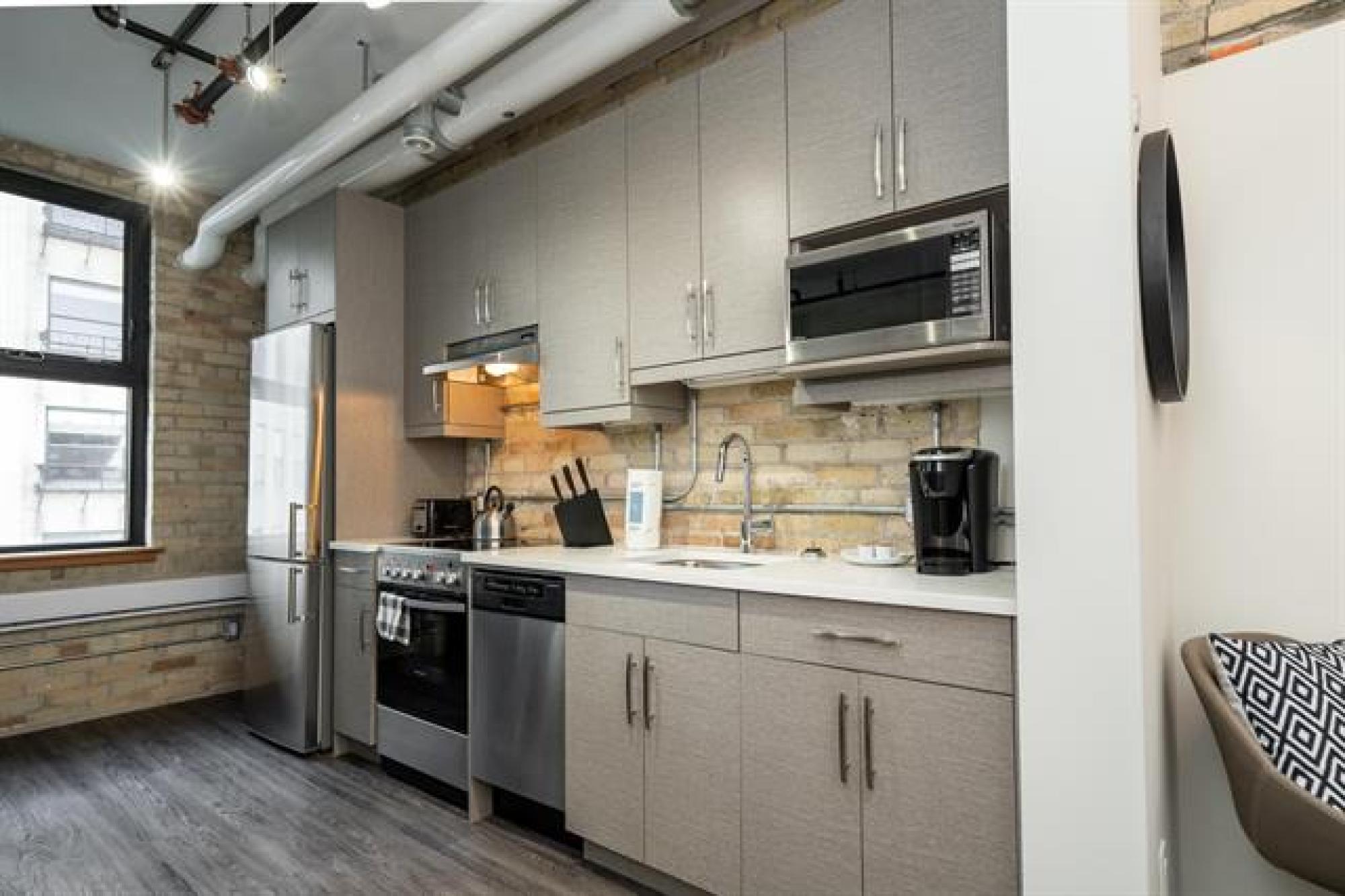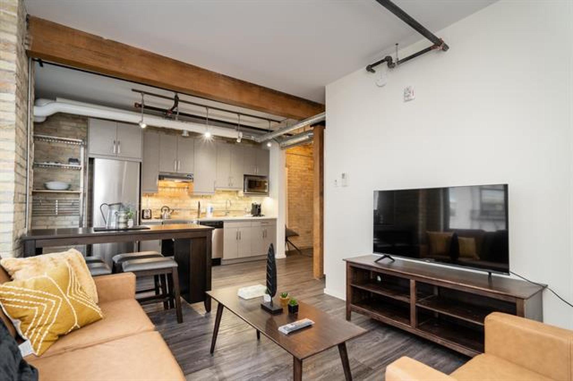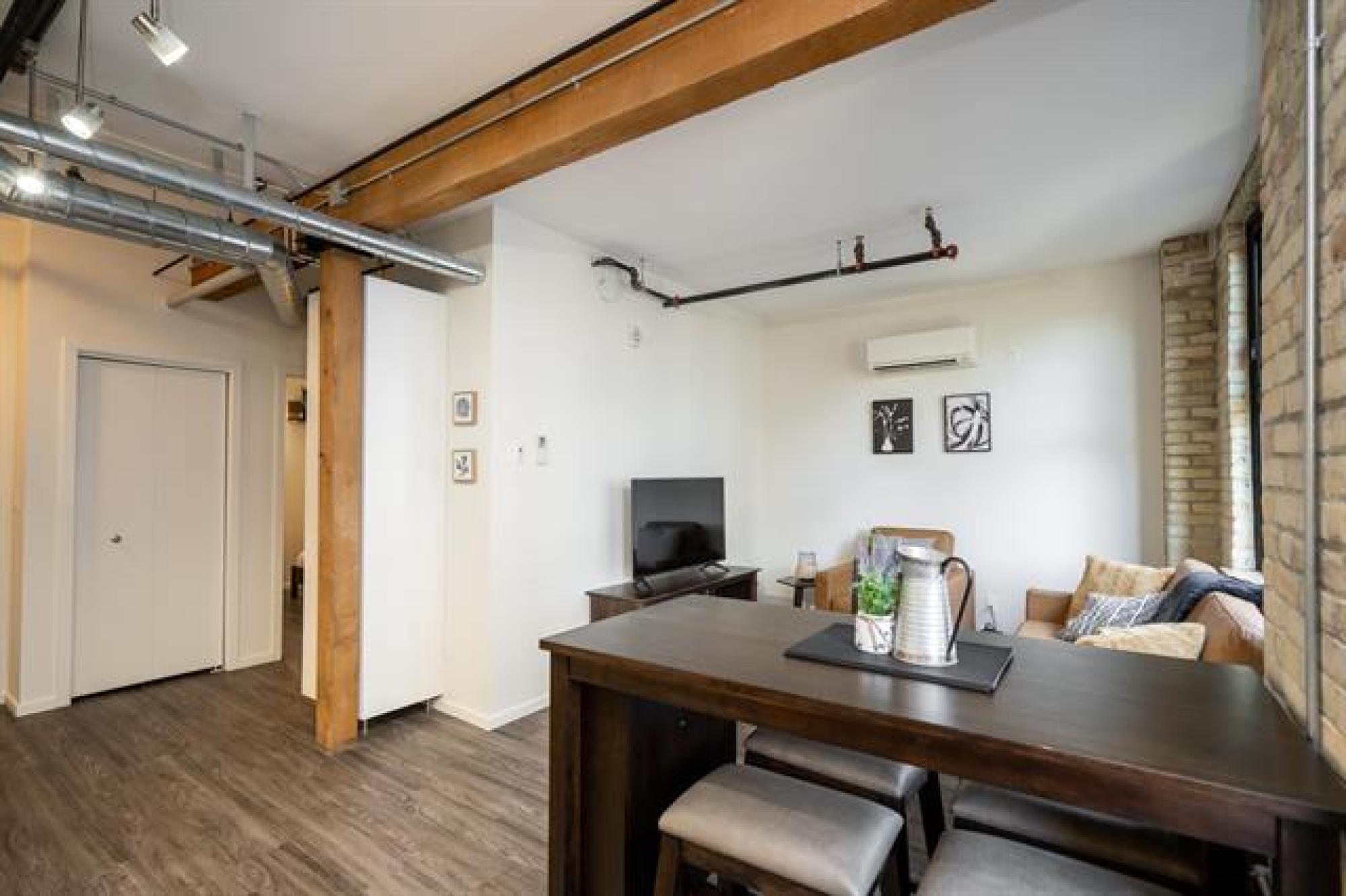 Impressive warehouse loft condo filled with style and history, situated in the East exchange district near waterfront drive. Conveniently located and surrounded by modern amenities, this quiet top floor unit features southwest exposure allowing an abundance of natural light, which enhances the old world charm of exposed beams and brick. Couple this with all of the modern finishes throughout and you have a unit that shines from top to bottom. The amenities of this building are exceptional... elevator service, handicap access, roof top patio, storage locker, common room and gym. Don't miss out on this excellent opportunity!