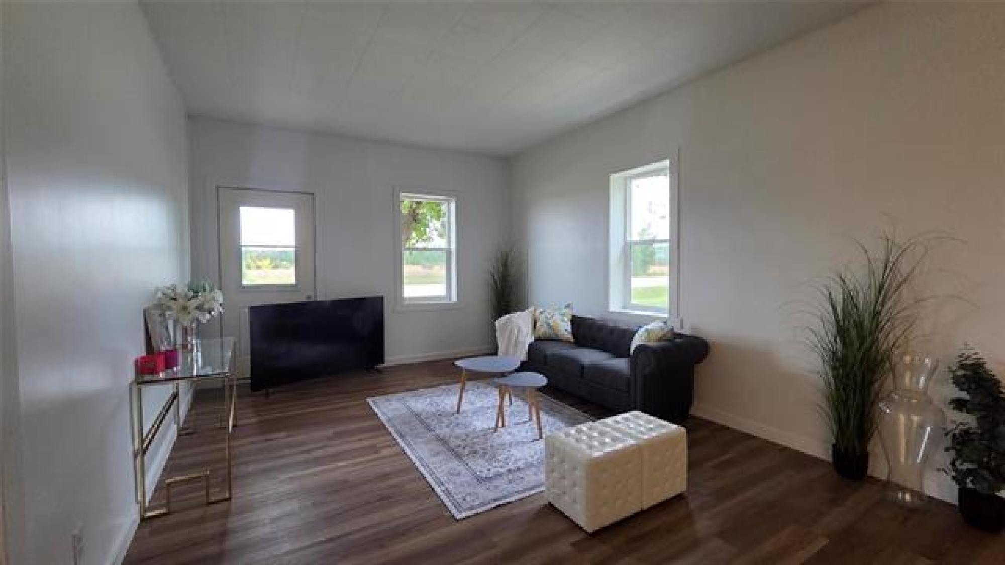 Country living -- INCLUDING THE BARN. Fraserwood a quiet friendly town - great location less than 10 minutes to Gimli 40 Minute commute to Winnipeg. This lovely 2 bedroom home has had renovations done over the past few years including laminate flooring throughout.. Entering the home is a large open floorplan - 9' ceilings - spacious livingroom area. 2 bedrooms. - bathroom with laundry area. Bonus room off the back of the home Older double garage on the property. 870 sq.ft plus 162 sqft of guest room for summer guests not included in square footage, but was used as year round sleeping space. Updated 200 amp electrical, metal roof and wood siding for little mainteance. Wifi thermostat. Three driveways to the property. Great frontage - possibilities are endless to run a business from the home or garage. Call for detais and to book your personal walkthrough. Measurements +/- jogs