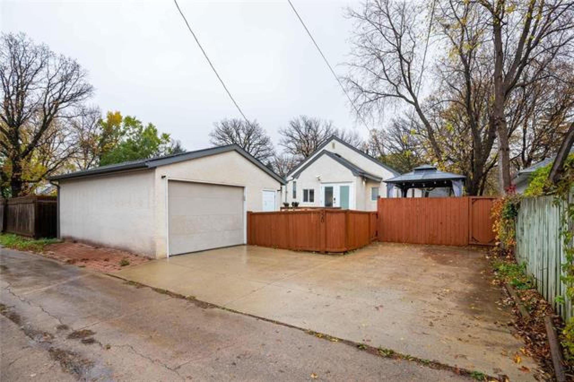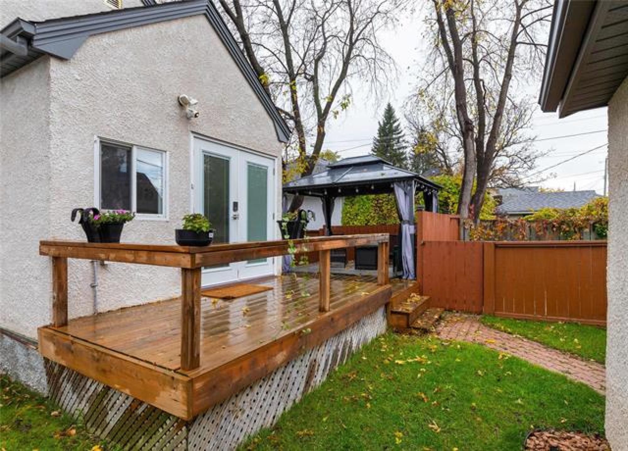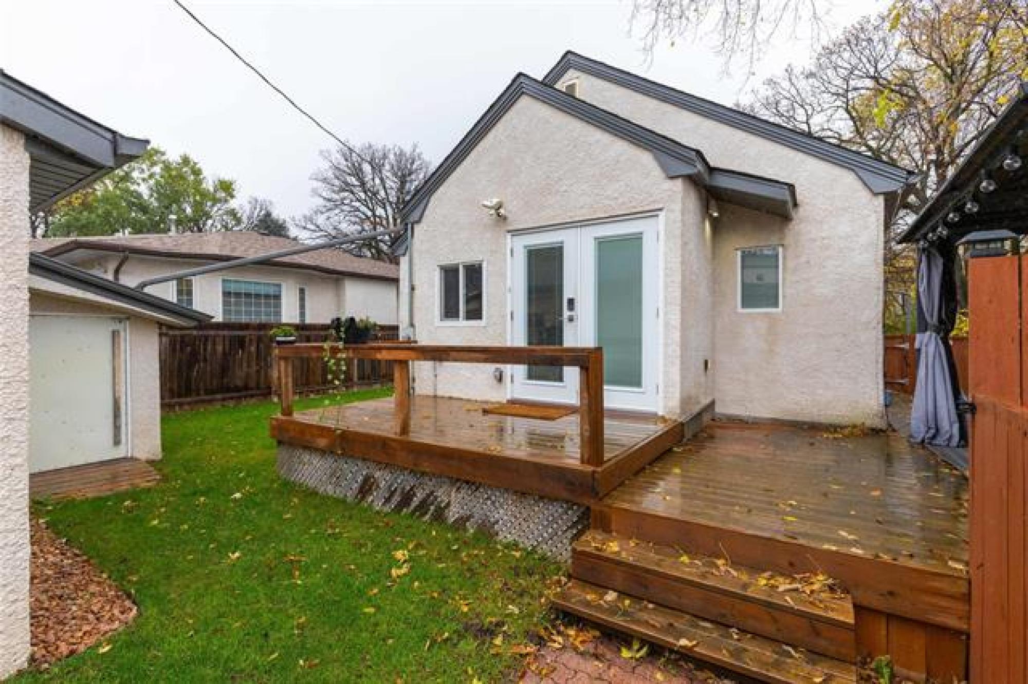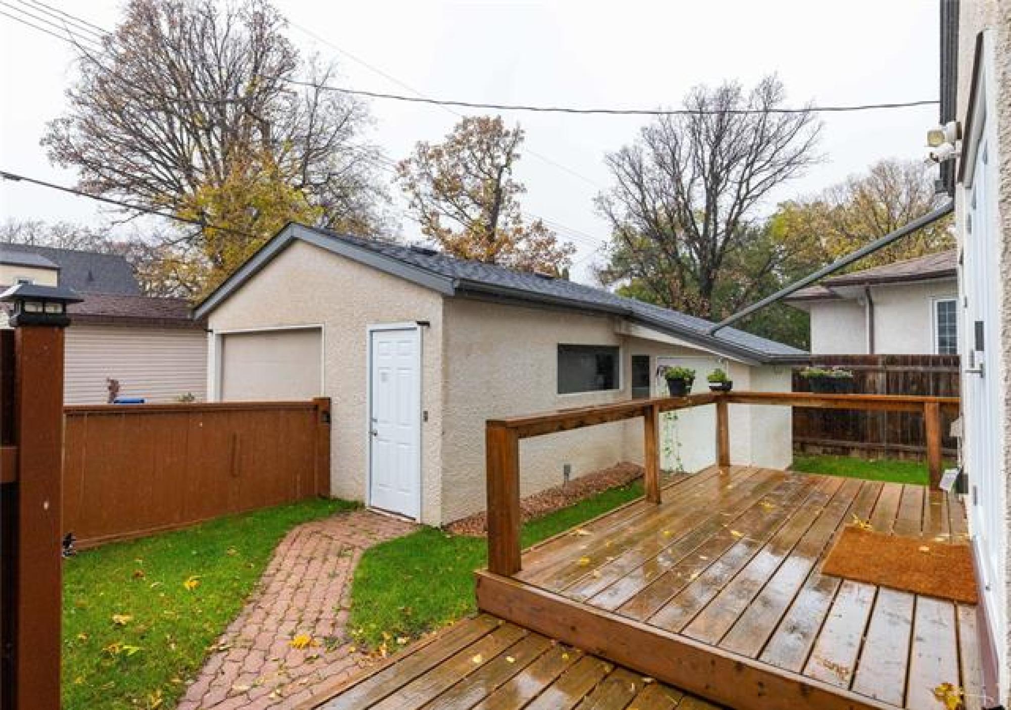 Offers as received. Welcome to this charming and beautifully updated 884 sqft bungalow nestled in the highly sought-after Deer Lodge neighbourhood. Step inside to a spacious living room with a bright, open concept layout, enhanced by new laminate flooring & modern pot lights. The updated kitchen features a stylish tile backsplash & newer appliances offering both functionality & appeal. 2 well appointed bedrooms provide comfortable living space for your family. The dry insulated basement offers excellent storage options. Outside enjoy a fully fenced yard with a two tier deck and covered pergola perfect for relaxing or entertaining. The oversized insulated garage includes roughed in in floor heat, a 240V sub panel & workshop area, plus extra parking pad for added convenience. Ideally located just a short walk to Assiniboine Park, Assiniboine Golf Course, local coffee shops & restaurants, this home perfectly blends comfort, style & location. Recent updates include: kitchen & appliances, pot lights, R60 insulation, soffits, fascia, roof (2021), instant on demand hot water heater & high efficiency furnace.