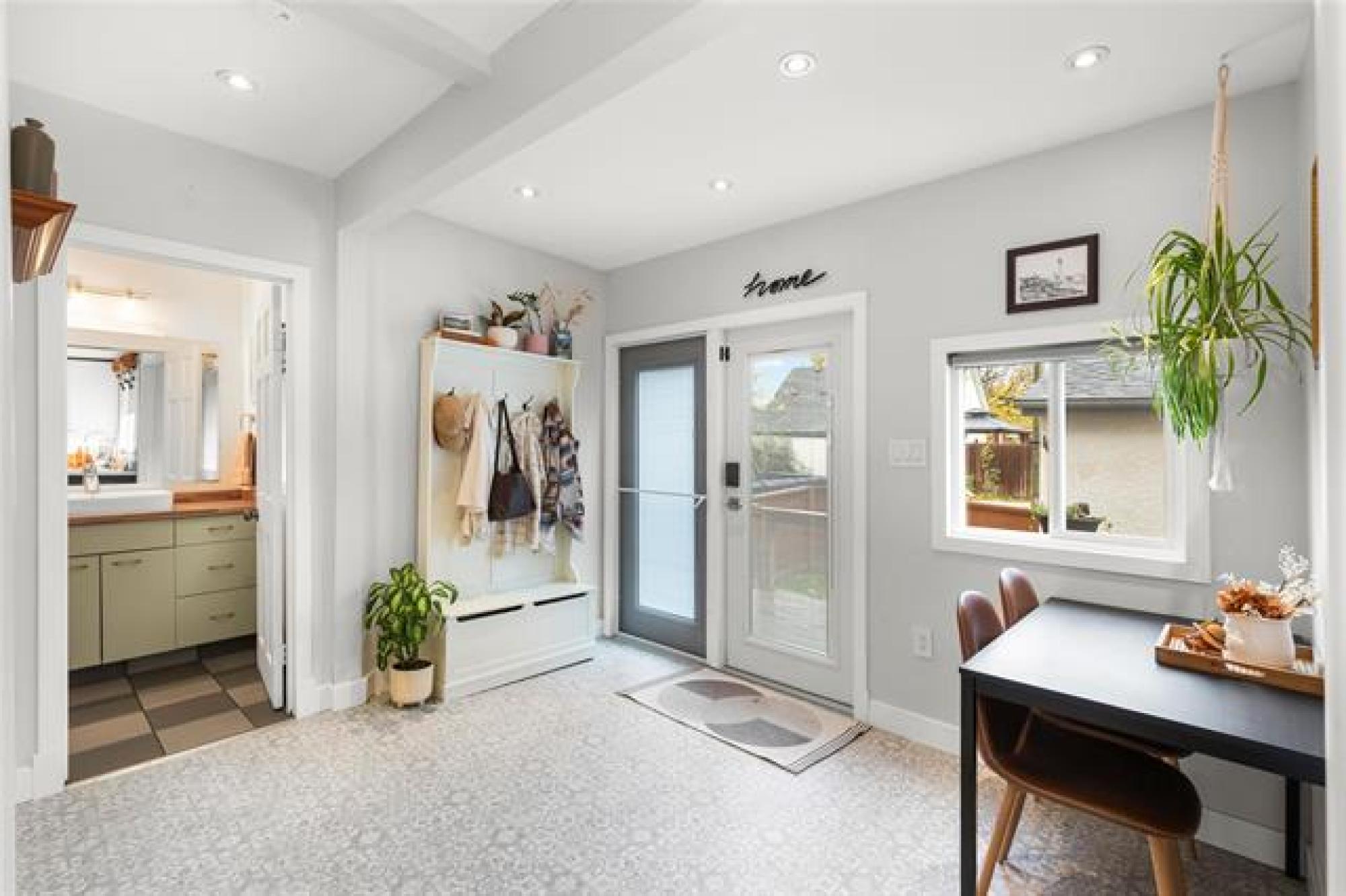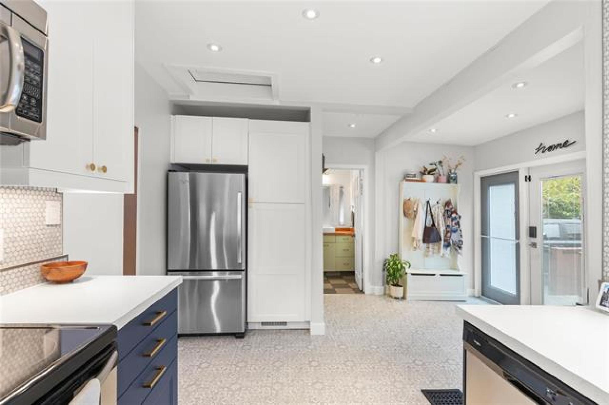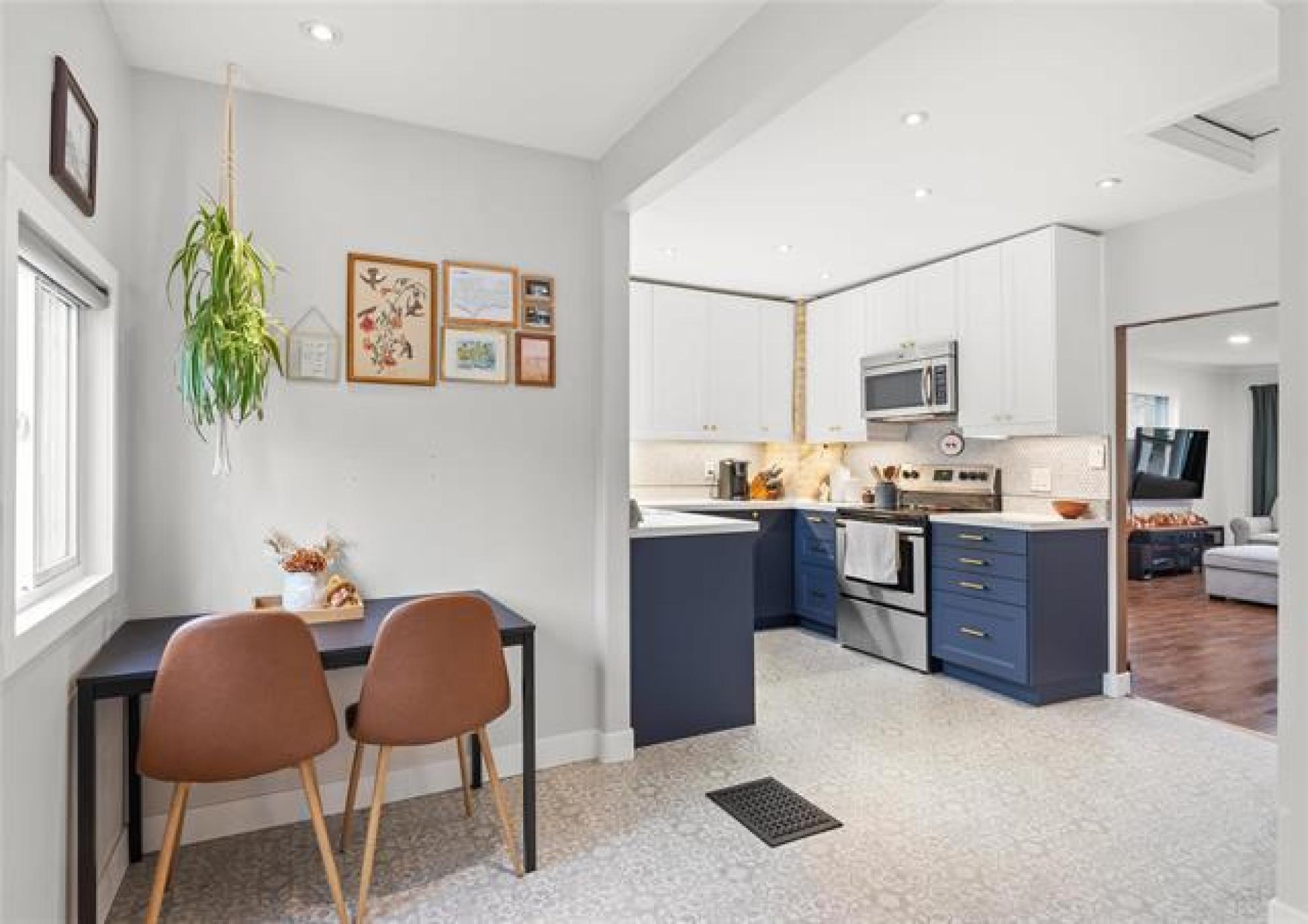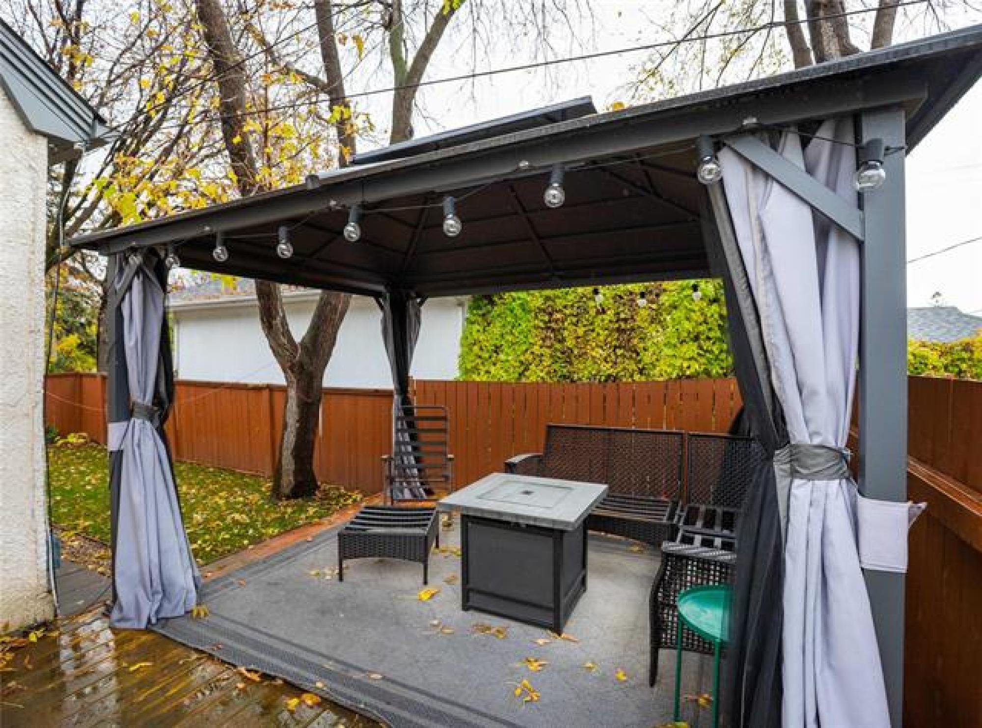 Offers as received. Welcome to this charming and beautifully updated 884 sqft bungalow nestled in the highly sought-after Deer Lodge neighbourhood. Step inside to a spacious living room with a bright, open concept layout, enhanced by new laminate flooring & modern pot lights. The updated kitchen features a stylish tile backsplash & newer appliances offering both functionality & appeal. 2 well appointed bedrooms provide comfortable living space for your family. The dry insulated basement offers excellent storage options. Outside enjoy a fully fenced yard with a two tier deck and covered pergola perfect for relaxing or entertaining. The oversized insulated garage includes roughed in in floor heat, a 240V sub panel & workshop area, plus extra parking pad for added convenience. Ideally located just a short walk to Assiniboine Park, Assiniboine Golf Course, local coffee shops & restaurants, this home perfectly blends comfort, style & location. Recent updates include: kitchen & appliances, pot lights, R60 insulation, soffits, fascia, roof (2021), instant on demand hot water heater & high efficiency furnace.