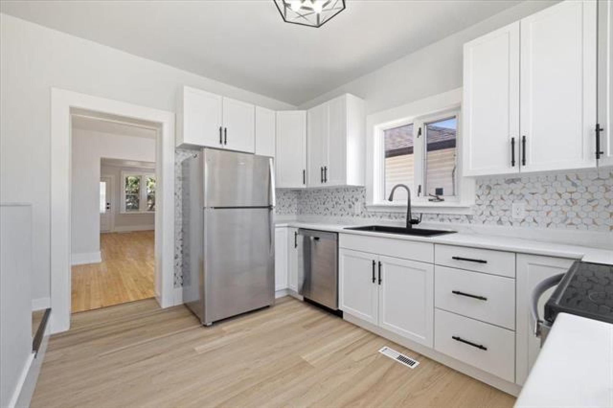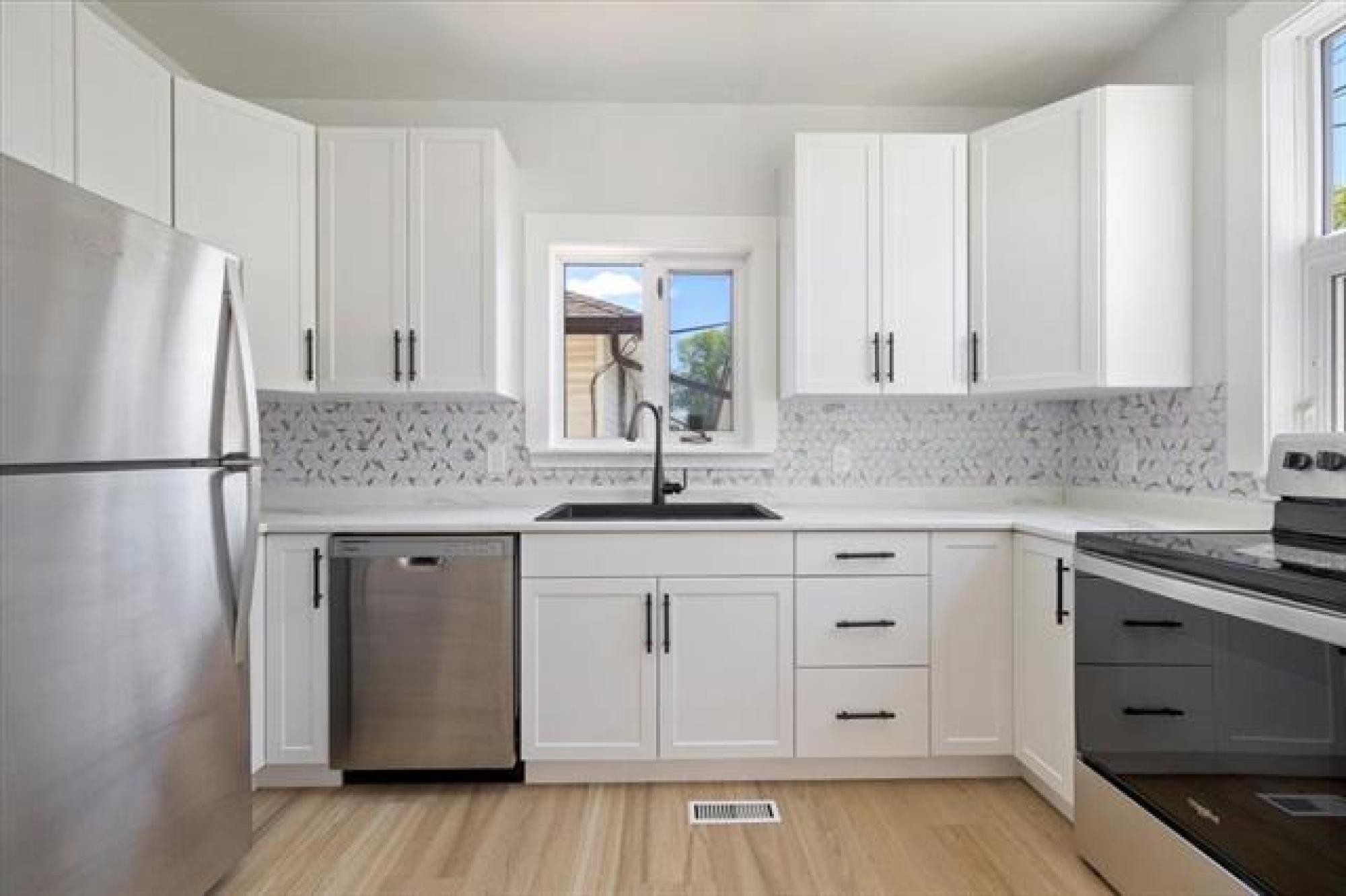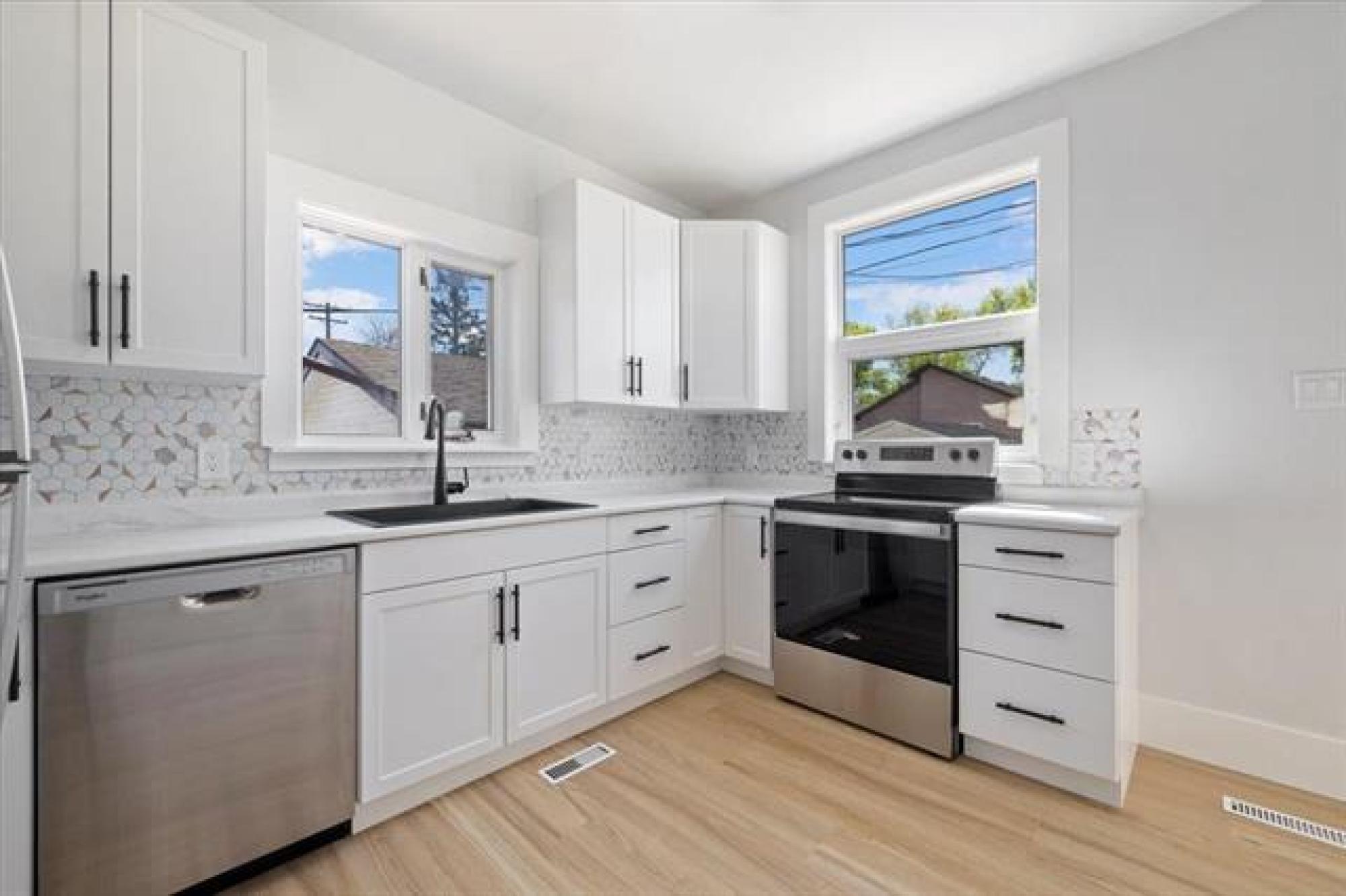 S/S now. OTP as rec. Welcome to your new home! This charming & cozy 2-bed house is nestled on a treed & quiet street, offering you the perfect balance of tranquility & convenience. As you step inside, you'll be greeted by the warmth/elegance of updated hardwood floors, which add a touch of sophistication & comfort to every room. The stunningly updated kitchen boasts beautiful cabinets, stylish backsplash,& ample counter space; making cooking & meal prep an absolute breeze. The renovated bathroom features brand new tub & surround, dual sinks & modern fixtures/finishes. The main floor is complete with 2 spacious bedrooms,& a large porch space, perfect for morning coffee or relaxing evenings. The full basement is a blank canvas with space for a large rec-room, space for a den, home office, or gym & plenty of extra storage space. Outside, the fenced yard provides a safe & private oasis for you & your family, with plenty of space for gardening, relaxing, or just enjoying the fresh air. The huge oversized double garage provides secure parking & extra storage space. The neighbourhood features friendly neighbours, & is close to schools, parks, shops, public transportation,& all the amenities you'll ever need!