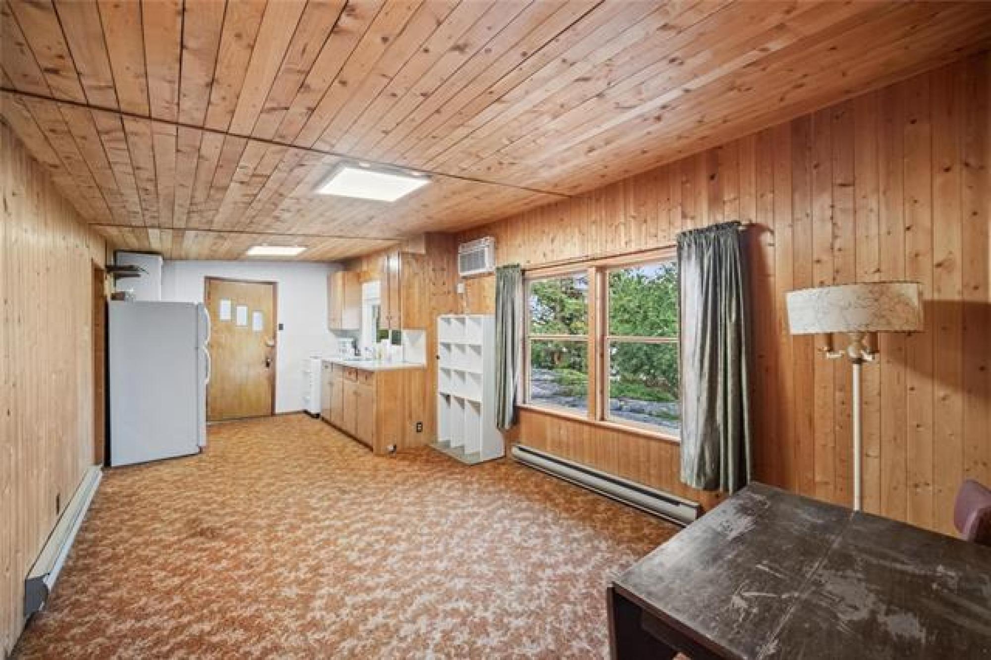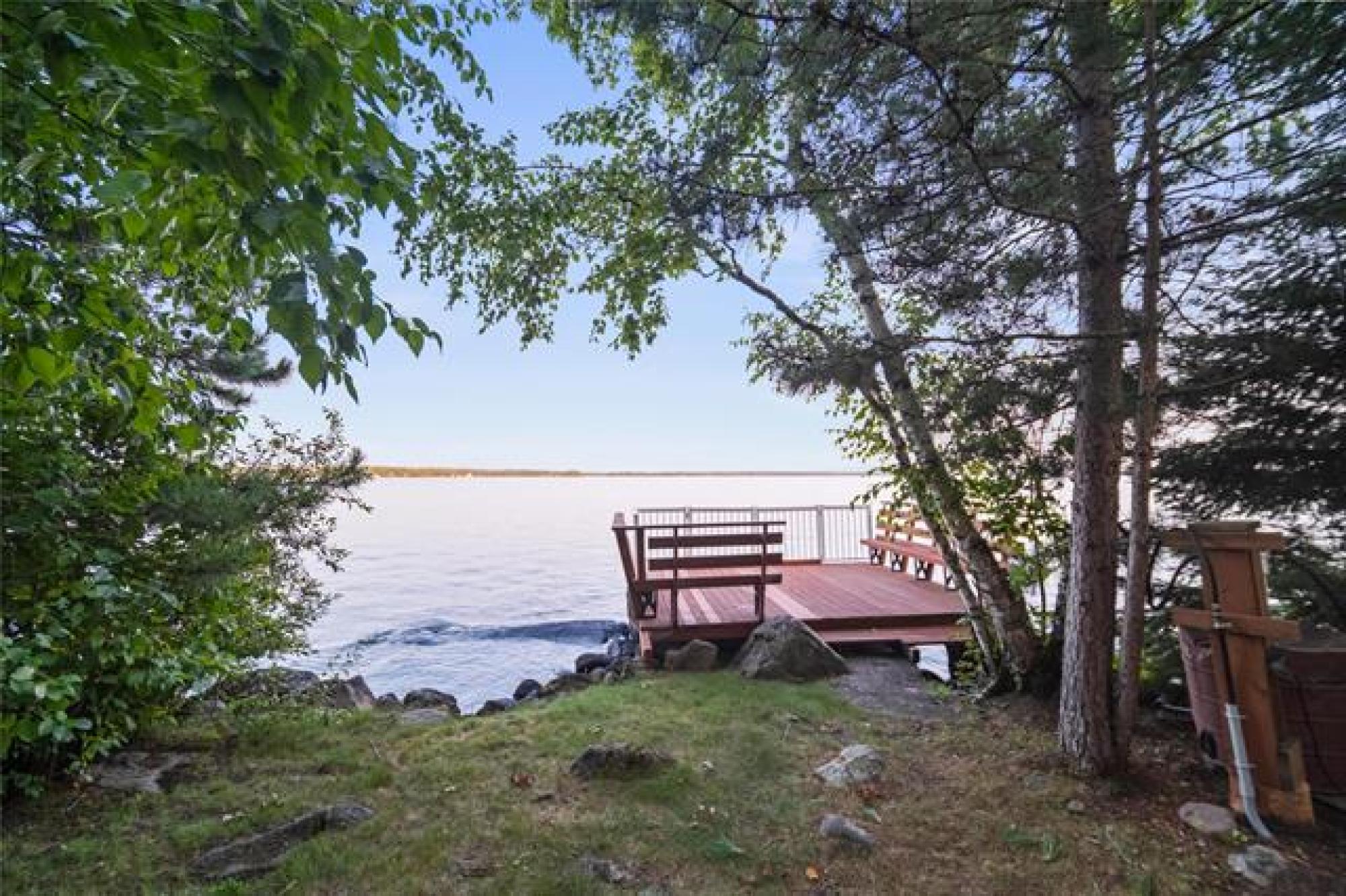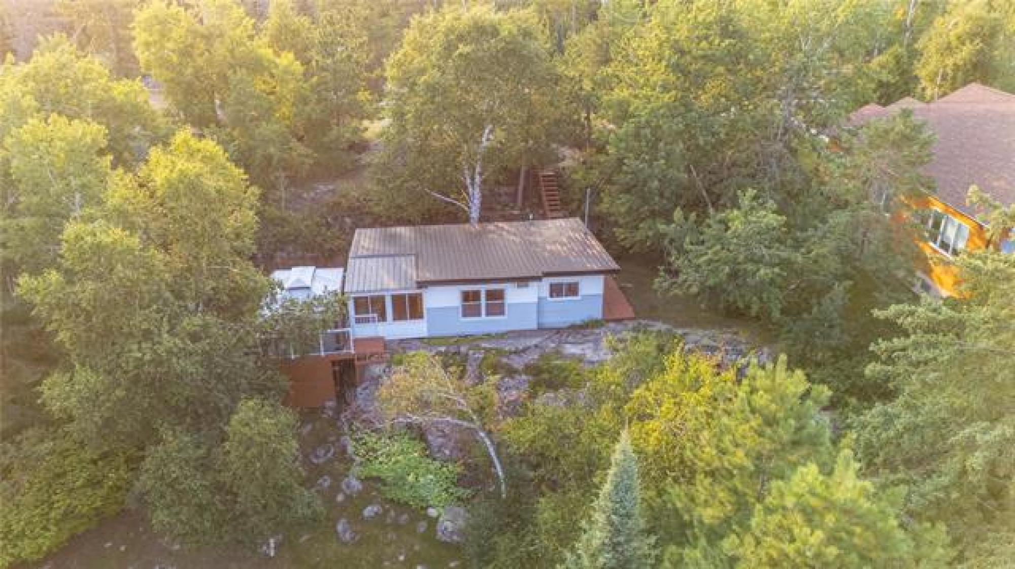 The property is located down a quiet road, and there is plenty of parking available. Older, seasonal 730 square foot cottage. The current owners have been here for 14 years and it’s been a special place for their family. The metal roof was just put on in 2024, siding is vinyl meaning this is a no maintenance exterior structure. There are two true bedrooms, but current owners have utilized their oversized sunroom to provide sleeping accommodations. One 3-piece bathroom. Mechanical: 100 AMP service, jet pump, seasonal water line from the lake, electric baseboard heat, 4 A/C units all in working order, 50 gallon HWT, mostly new plumbing, and 4 exterior taps in working order. Two fridges and a stove, all in working order. All furnishings & goods on the entire property stay! There is also a 17 x 10 screen gazebo with lake view on the attached decking. 10’ X 11’ storage shed (wired with lights and plugs) located near the lake, 9’ X 6’ storage shed at rear of the property (currently stocked with wood), Lakeside deck/sitting area for shoreline leisure (patio railings w/ gate for safety), Additional lakeside decking for potential gazebo/sitting area, Large electric boat rail system in good working order.