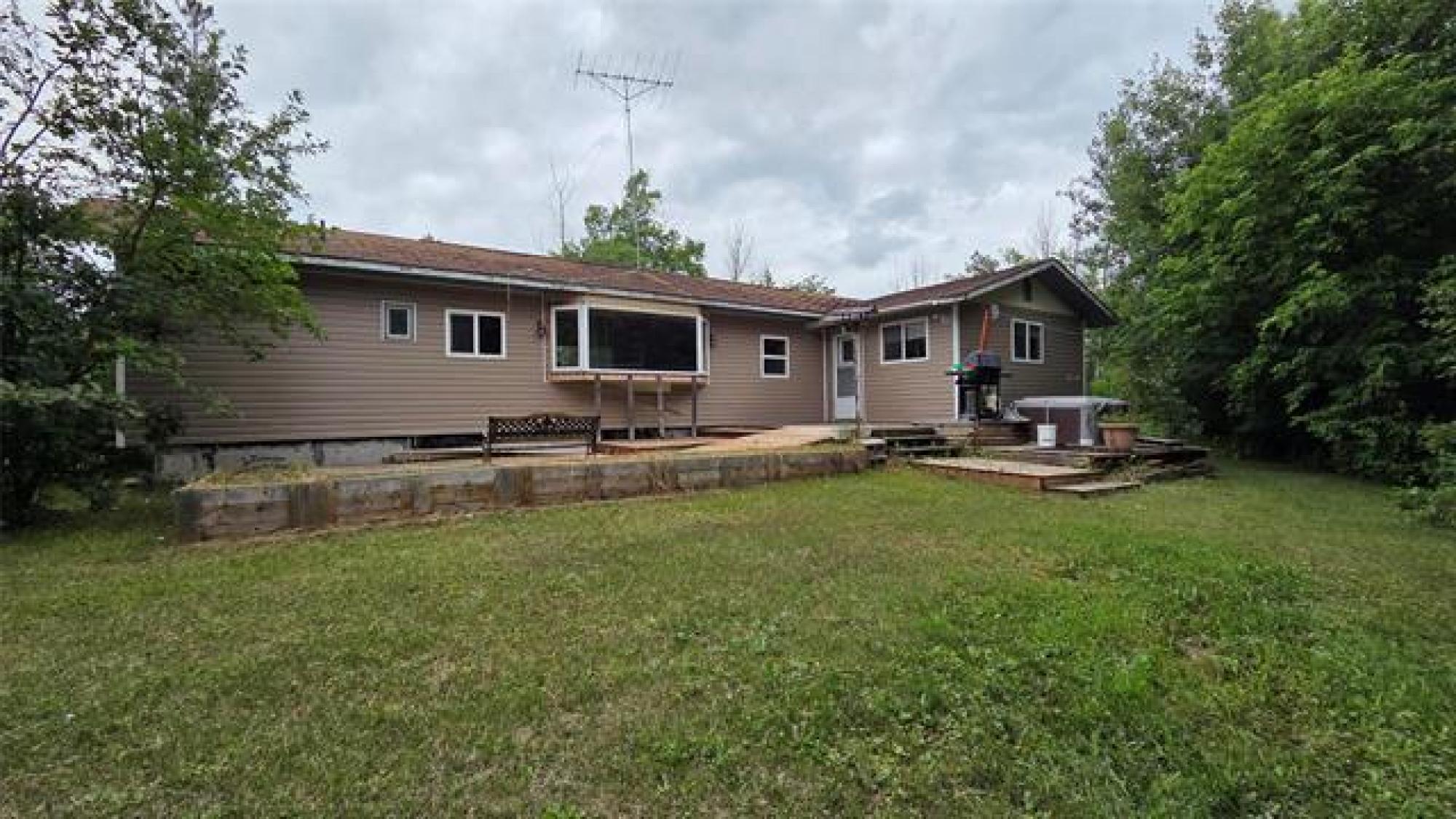 1186 sqft. 2 bed 1.5 bath home nestled just off of #9 Highway - the best of it all - great location...Highway location with no gravel to travel - tucked behind mature trees for privacy. Greenspace is prime on this acerage that feels larger than it is. The home - lovely home finished with T&G through, large living room with an abundance of windows letting light in 180 degrees of view... A large kitchen/dining area with large bay window - any plant lovers dream. heading down the hall - A 3 piece bath as well as a bedroom with dual closets and garden door out to the back deck (where the sauna house is). Spacious primary bedroom has 4 piece bath. TRIPLE DETACHED 26 x 40 garage has endless possibilites! Through the yard many surprises.. a lovely sitting deck under the spruces, fire pit area... guest bunkie house 9x14 with deck in front of.. 12x8 sauna in the back yard. gardens, raised gardens and clearing behind the garage that would make a great location for the market vegetable garden. Call to book your viewing today. Measurements +/- jogs. Information deemed reliable however should be independently verified.