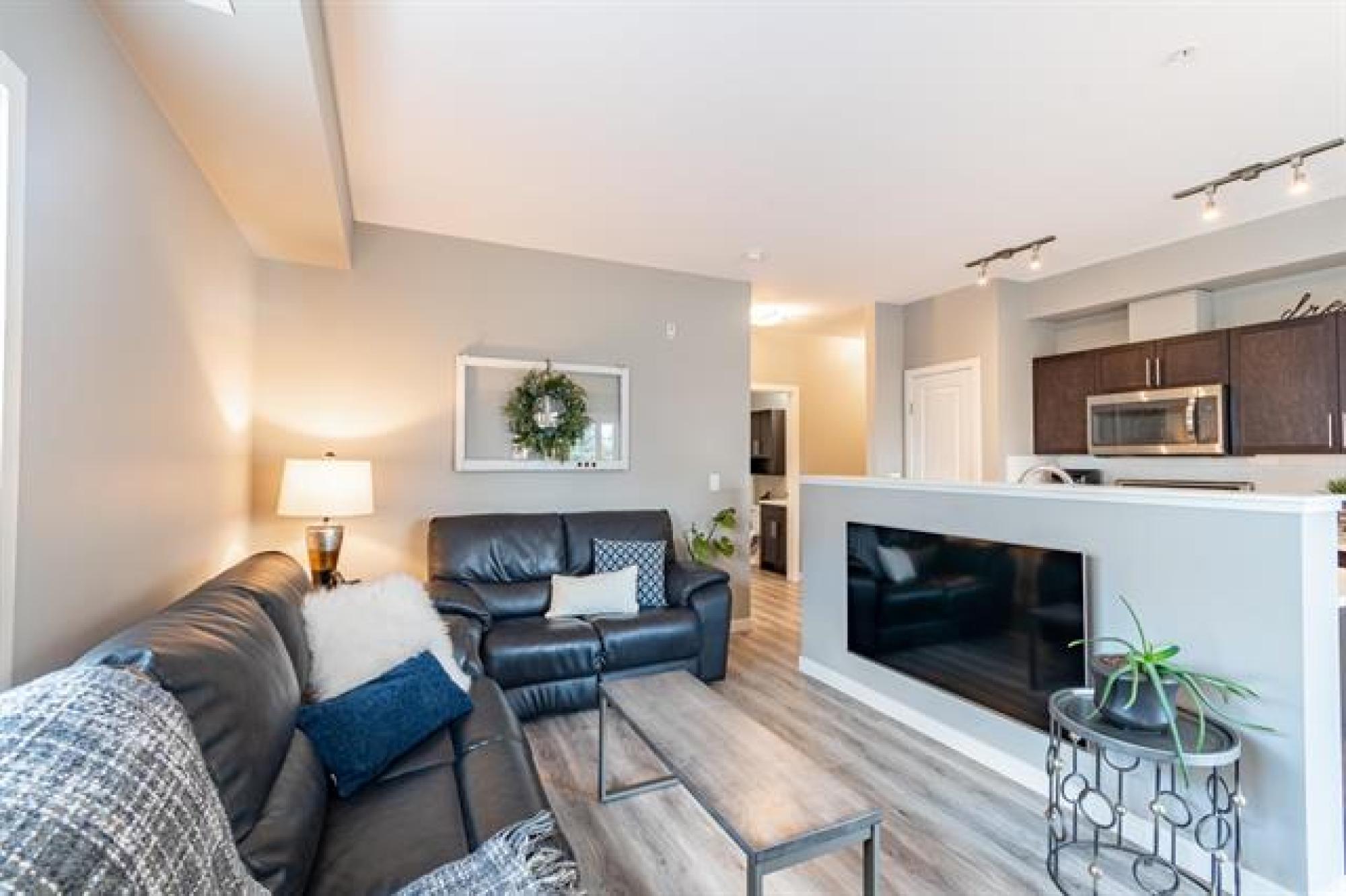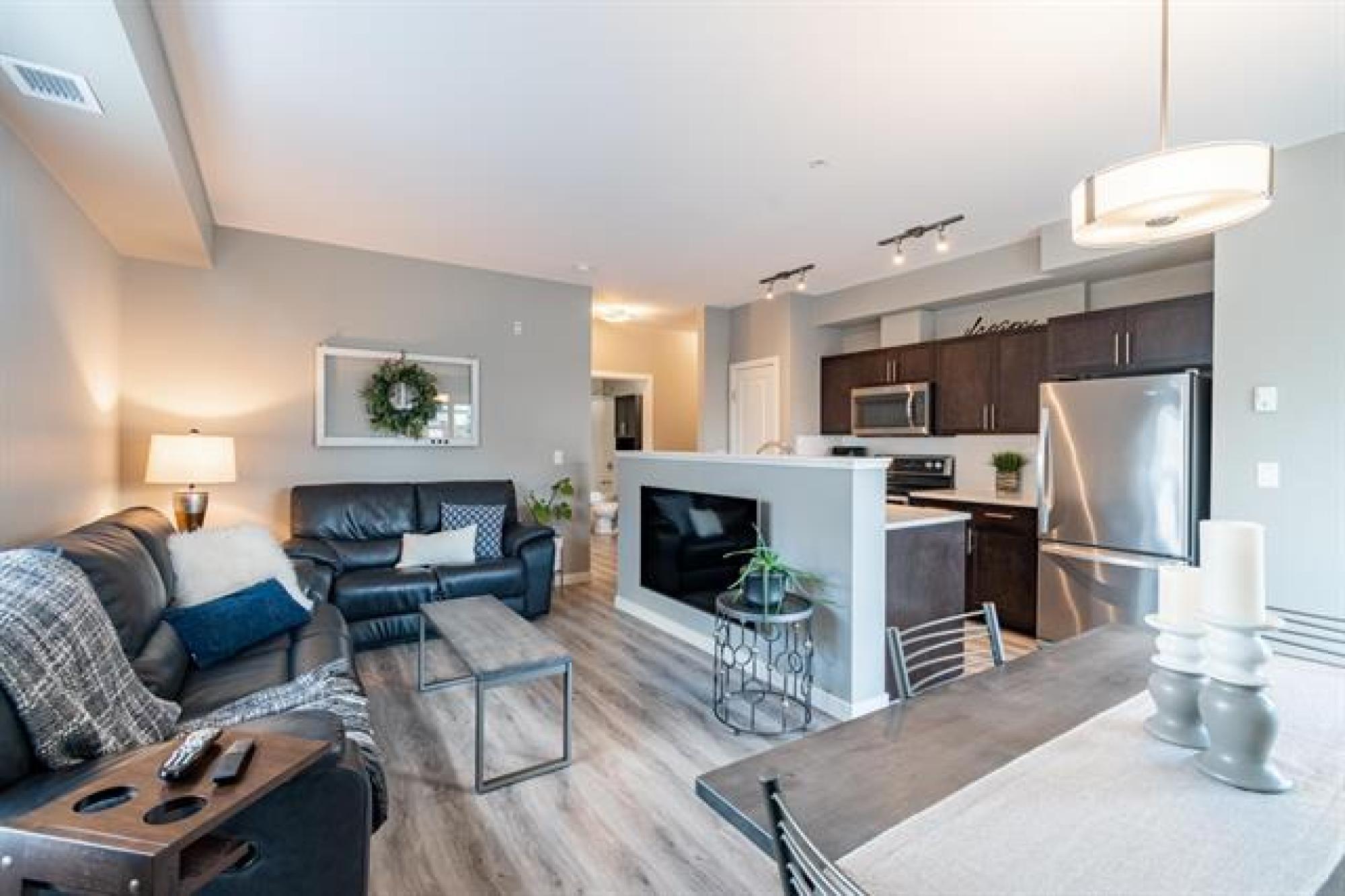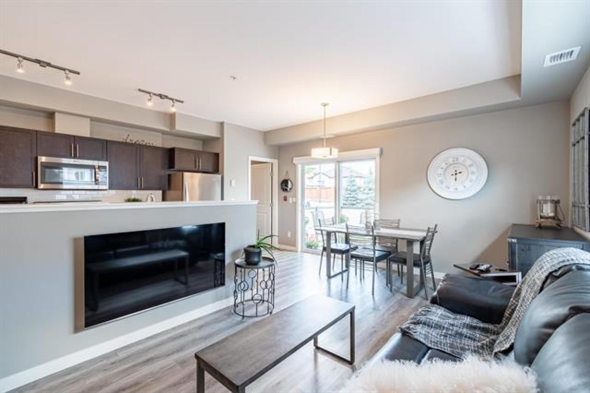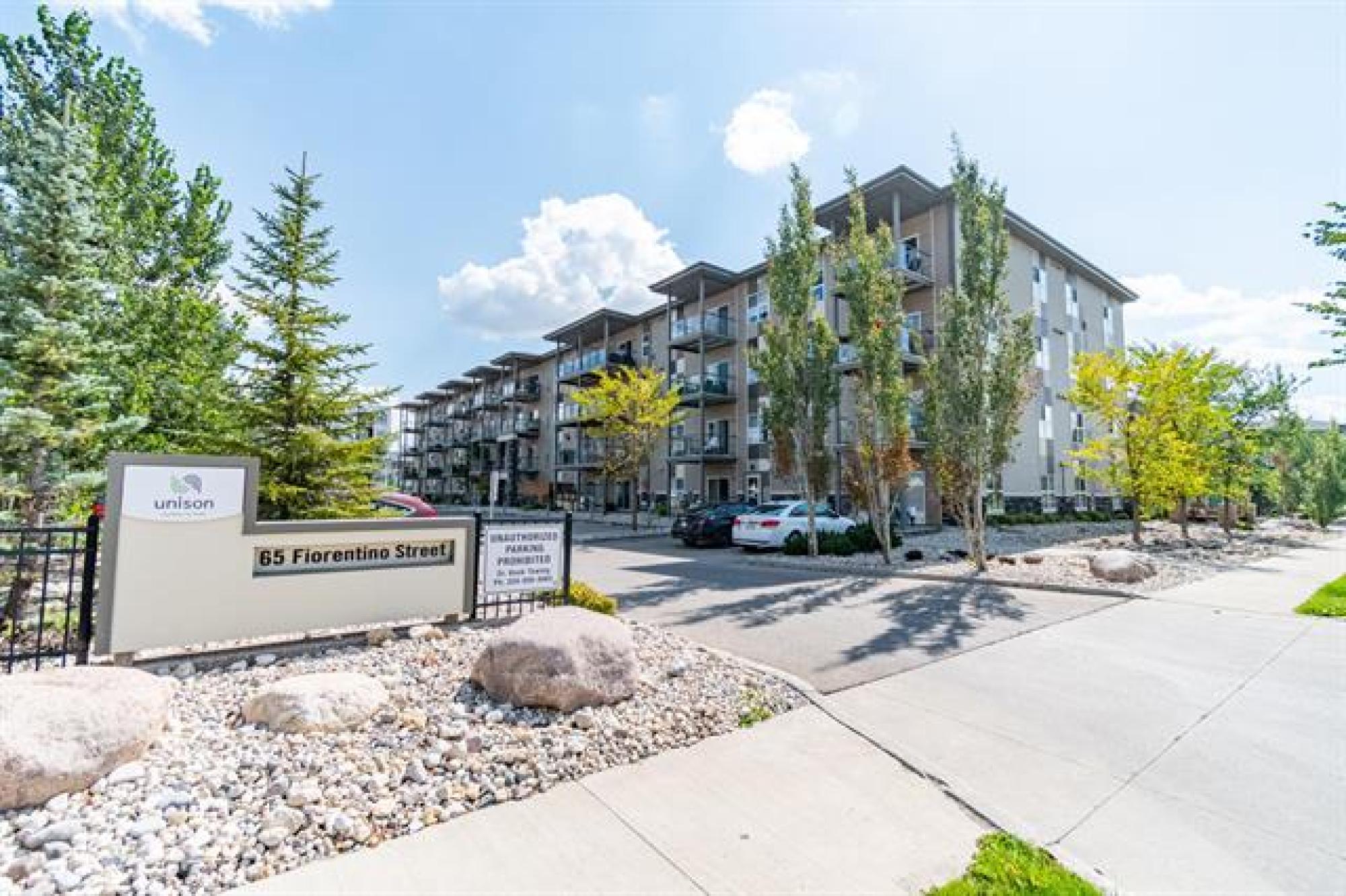 NEW PRICE!! | Casa Fiorentino | Welcome to this bright and beautiful main floor corner unit at 65 Fiorentino Street in a well-managed, pet-friendly building. Offering 912 sqft of stylish living space, this 2 bed, 2 bath condo is perfect for first time buyers, downsizers, or people seeking a low-maintenance lifestyle in a convenient location. The open concept layout features upgraded vinyl plank flooring, large windows for plenty of natural light, a modern kitchen with upgraded quartz countertops & stainless steel appliances. The spacious primary suite includes a walk-in closet and ensuite while the 2nd bed and full bath provide flexible space for guests, a home office or hobbies. Enjoy the ease of in-suite laundry, a patio, and 2 dedicated parking stalls. Condo fees are under $400/month, making it an affordable option with great value. Located close to KP Mall, Costco, Kilcona Dog Park, schools, restaurants & transit routes. You’ll appreciate the accessibility and quiet community feel. This pet-friendly condo offers the perfect balance of comfort and convenience with professional management and minimal upkeep. Book your private showing today!