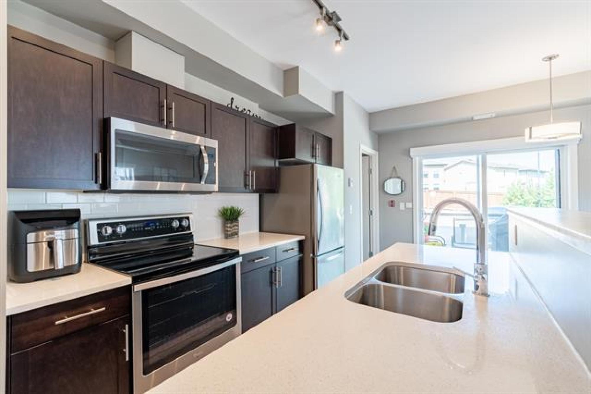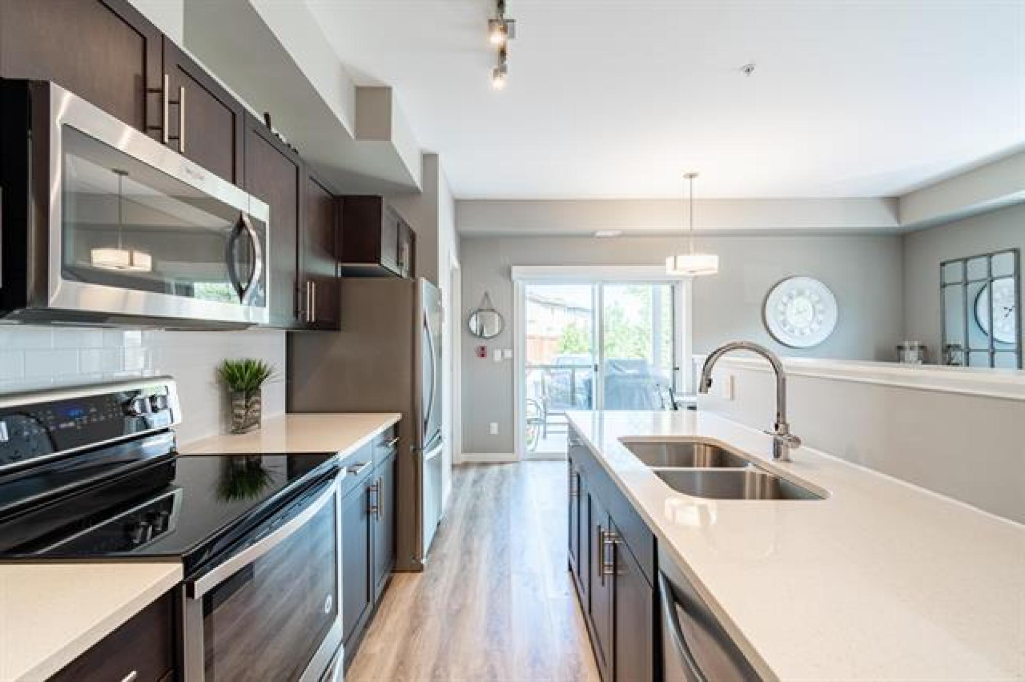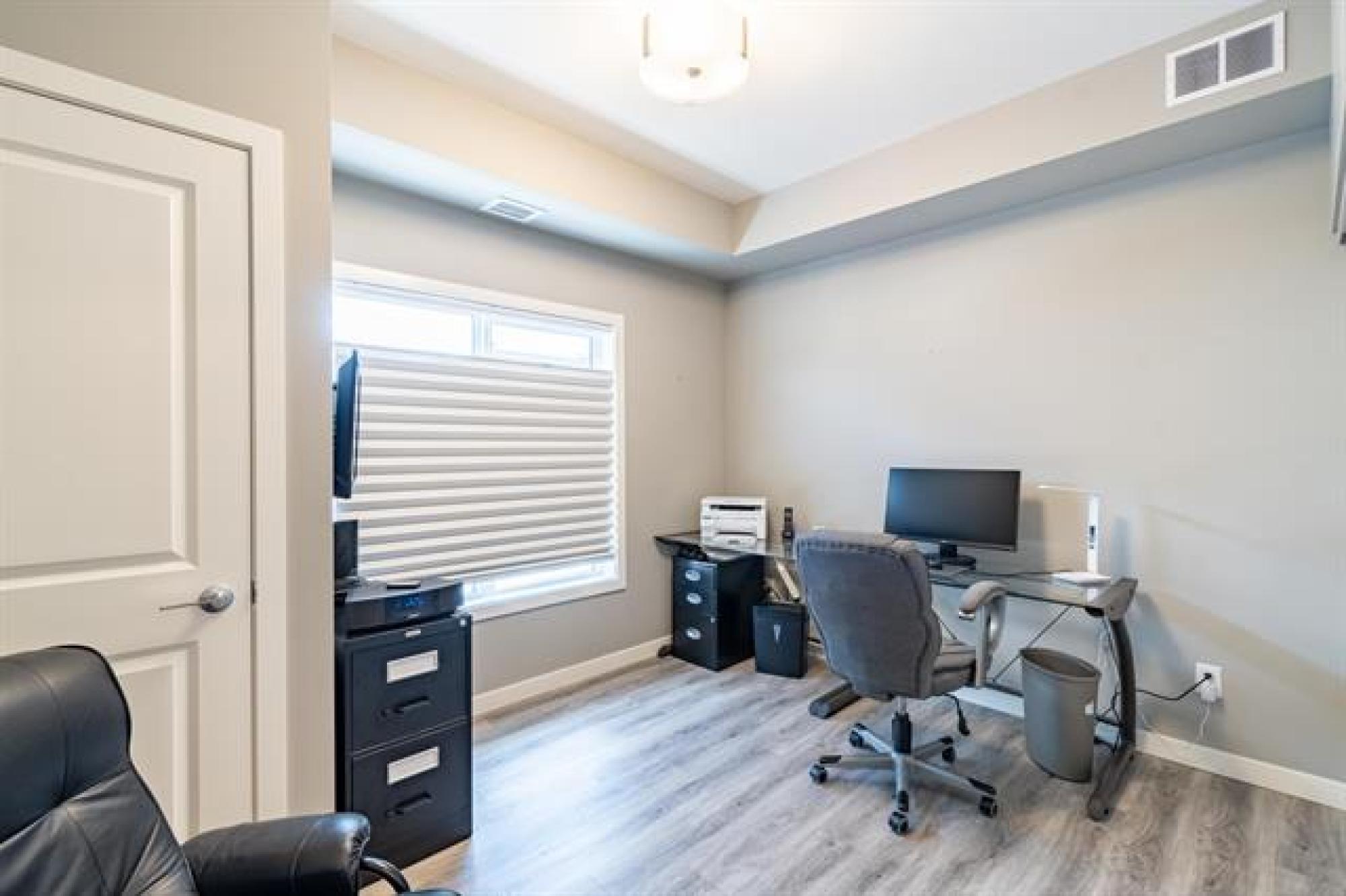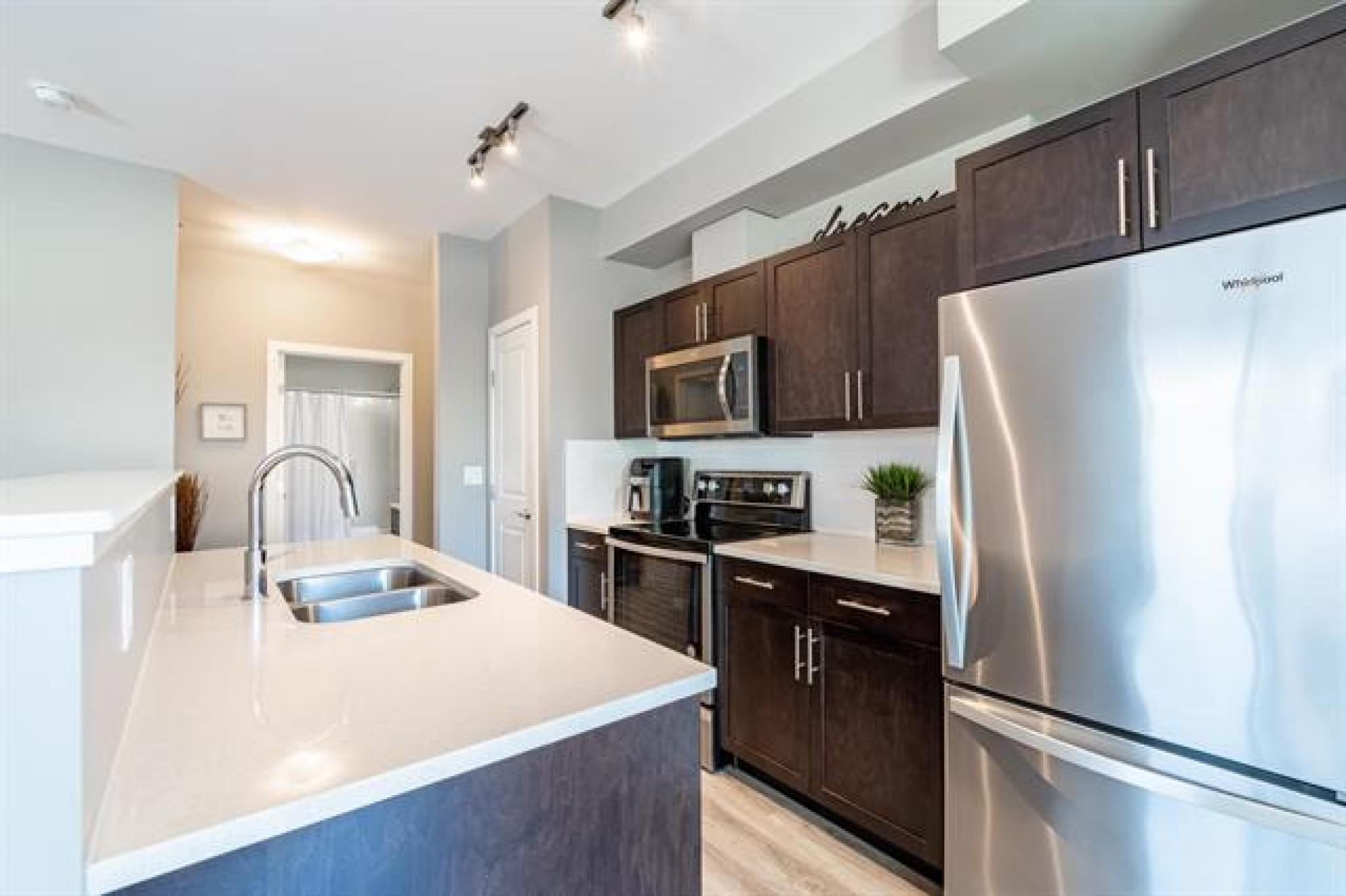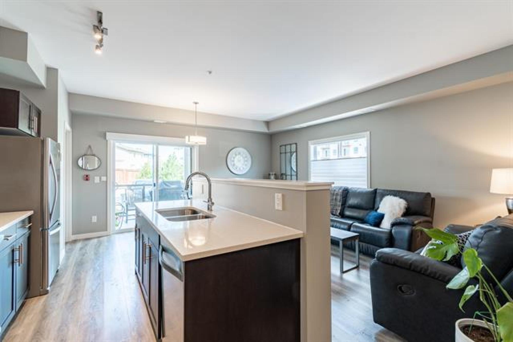 NEW PRICE!! | Casa Fiorentino | Welcome to this bright and beautiful main floor corner unit at 65 Fiorentino Street in a well-managed, pet-friendly building. Offering 912 sqft of stylish living space, this 2 bed, 2 bath condo is perfect for first time buyers, downsizers, or people seeking a low-maintenance lifestyle in a convenient location. The open concept layout features upgraded vinyl plank flooring, large windows for plenty of natural light, a modern kitchen with upgraded quartz countertops & stainless steel appliances. The spacious primary suite includes a walk-in closet and ensuite while the 2nd bed and full bath provide flexible space for guests, a home office or hobbies. Enjoy the ease of in-suite laundry, a patio, and 2 dedicated parking stalls. Condo fees are under $400/month, making it an affordable option with great value. Located close to KP Mall, Costco, Kilcona Dog Park, schools, restaurants & transit routes. You’ll appreciate the accessibility and quiet community feel. This pet-friendly condo offers the perfect balance of comfort and convenience with professional management and minimal upkeep. Book your private showing today!
