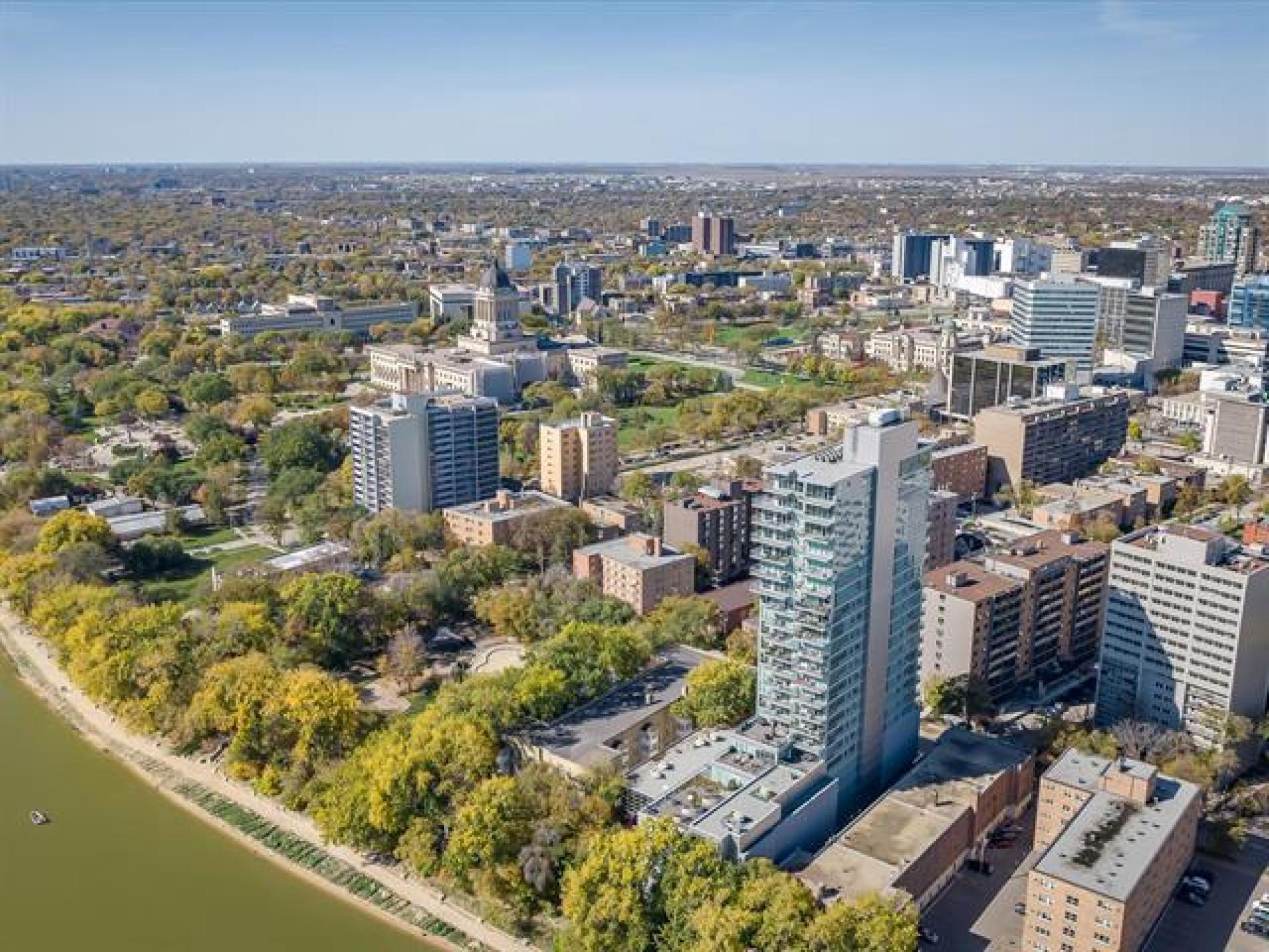 Just Listed! SS now w/ offers as rec'd...Experience breathtaking river views from this prestigious 17th floor condominium featuring 2 bedrooms, 2 baths and floor-to-ceiling windows throughout. The bright open-concept layout showcases a gourmet kitchen with quartz countertops, oversized island with breakfast bar, and premium Jenn-Air/Fisher Paykel appliances. Wake to stunning vistas in your spacious primary bedroom with walk-in closet and 3pc spa ensuite. Generous second bedroom, additional 4pc bath, in-suite laundry, and heated hardwood/tile floors complete this exceptional home. Enjoy spectacular sunsets from your oversized private balcony or entertain on the shared 2,364sqft terrace with panoramic river views. This solid concrete building offers an elegant lounge with kitchenette, fireplace and pool table, guest suite, fitness studio, secure heated above-ground parking and storage unit! Private access to the river walk, steps from The Forks and downtown amenities. Pet-friendly! Elevated living awaits - don't miss this view!