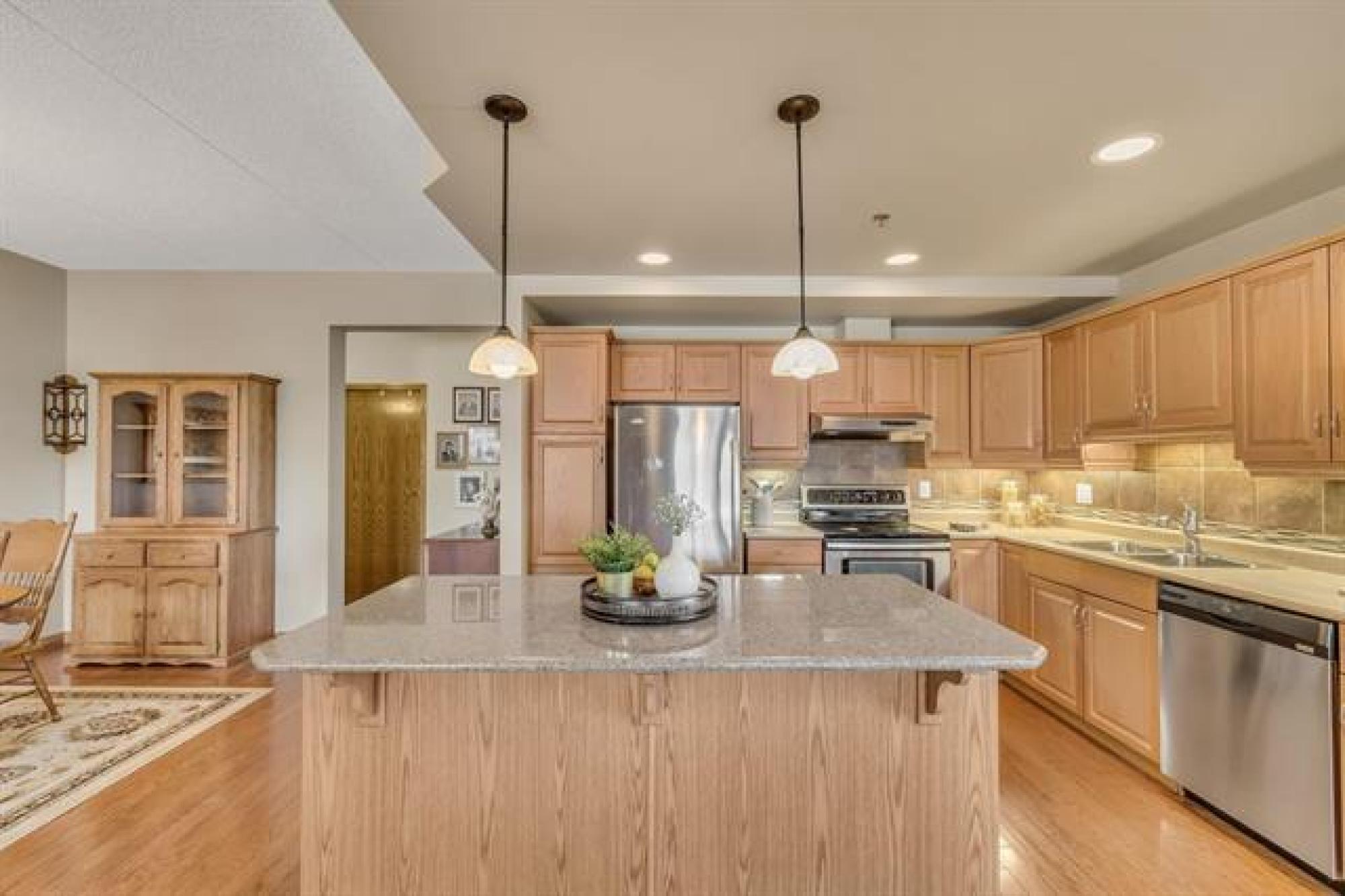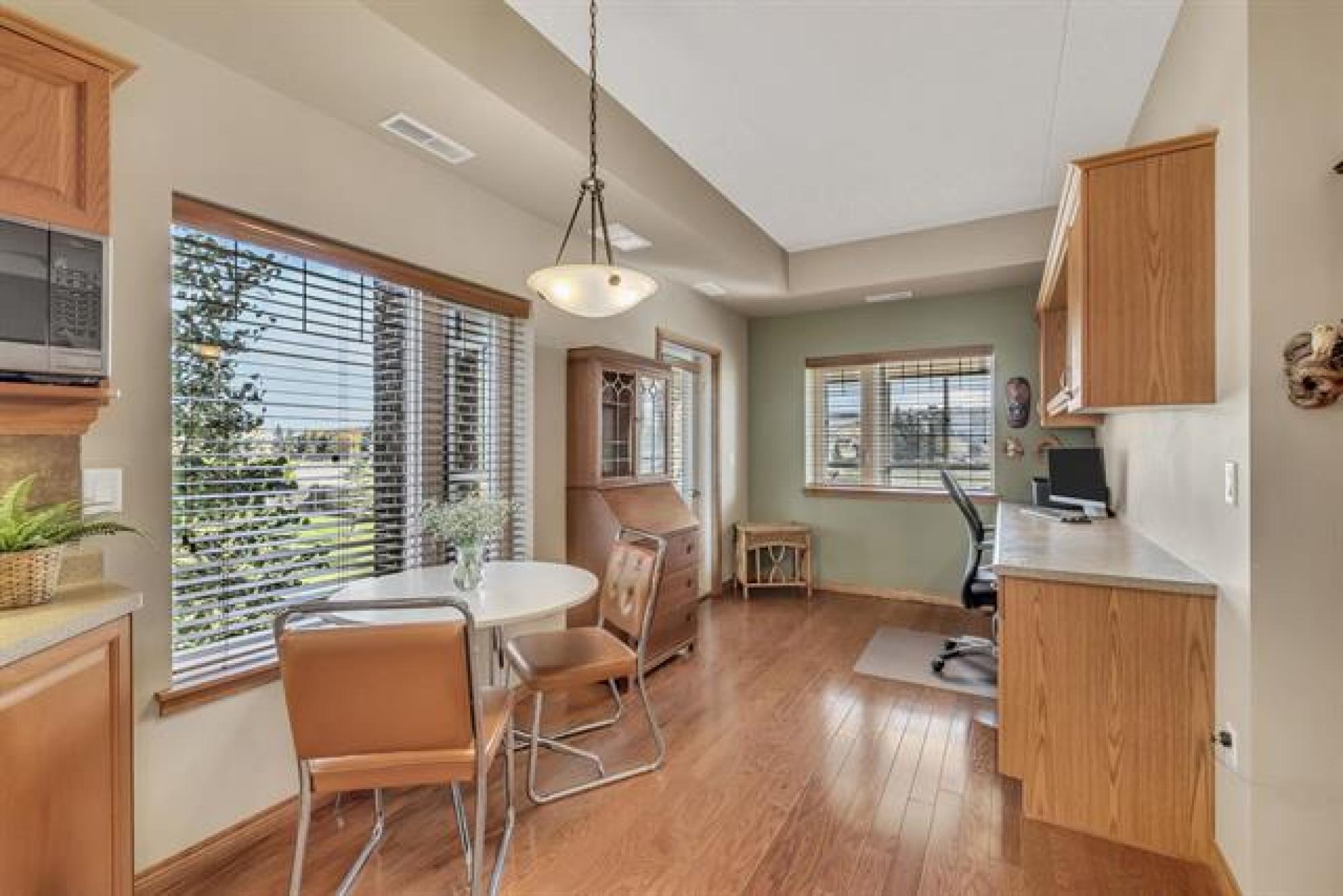 S/S Thurs. Oct. 9, offers Wed. Oct. 15 after 6 pm. This spacious 2-bedroom corner unit offers comfort, style & convenience in a well-located concrete and steel building. Featuring beautiful hardwood floors & an open concept design, the home boasts an eat-in kitchen w/ample cabinetry, ss appliances & a granite-topped island w/breakfast bar. An office nook w/built-in desk & cabinetry flows into the wraparound enclosed balcony, showcasing panoramic views—perfect for relaxing or working from home. The dining area opens to a welcoming living room with a large window, custom built-in display shelving & electric fireplace w/stone surround. The bright primary bedroom includes a WICC & a 4-piece ensuite w/double vanity & walk-in shower. A well-sized guest bedroom, additional 4-piece bath, and laundry/storage room complete the layout. This pet-friendly building (small pets only) features fantastic amenities including a gym, games/party room, library & guest suite (located in building 270), underground parking stall #84 with car wash. Storage locker (#87) on the same floor. Just steps from shopping, restaurants & movie theatre. Minutes to Fort Whyte & off-leash dog park...this is condo living at its best!