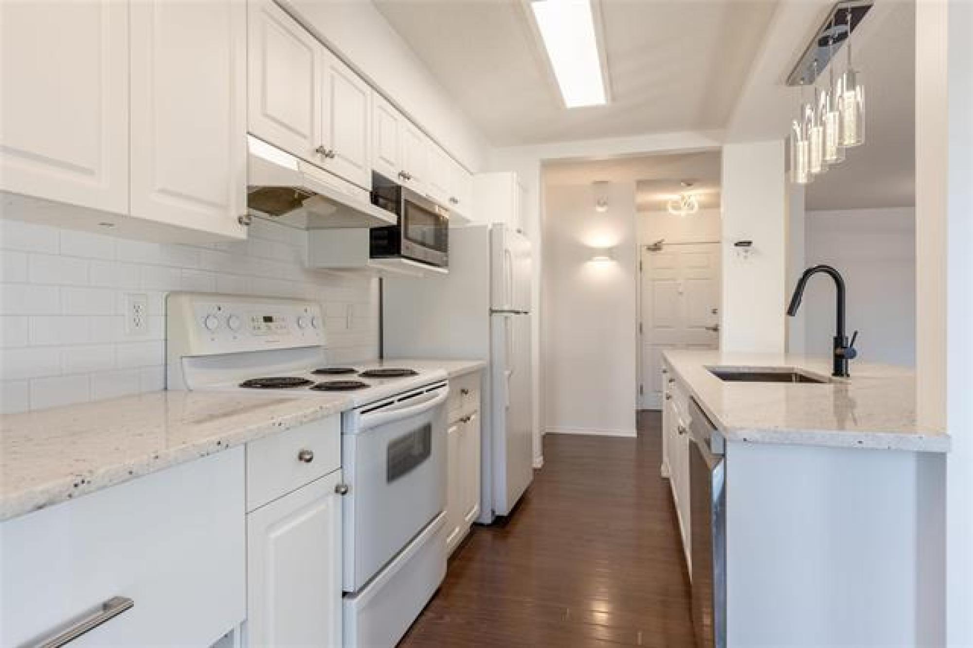 Offers as received. 1130 SF, 2 bed 2 bath condo in Linden Woods! Bright & functional floor plan. This suite has been updated with modern finishes & designer lighting. The white galley kitchen features an island with seating, stone countertops, subway tile & glossy white cabinets for added storage. Spacious living & dining rooms with flexible spaces are perfect for entertaining. Patio doors to the covered balcony allow for added light. The primary bedroom is the perfect retreat- a large walk in closet with organizers & 3pc ensuite. 2nd bedroom with closet & 4 pc bath. The in-suite laundry room is a bonus! One indoor parking spot included, and outdoor spots are available to rent. All utilities are included in the condo fee! Castle Gates is a great place to live! A quiet, well managed building that offers a party room, storage lockers on each floor, indoor parking & visitor parking. An ideal location, close to all amenities- shopping, dining and transportation routes. A must see!