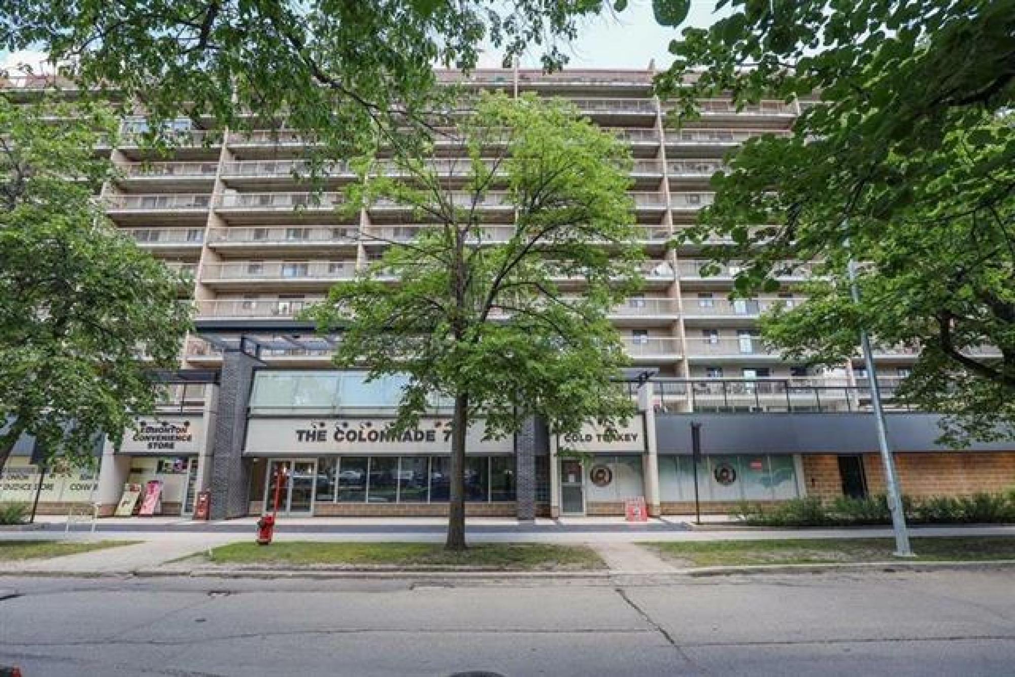 S/S immediately, offers presented as received. Fabulous starter or investment property located at The Colonade including amazing building amenities! This lovely 2 bedroom unit boasts an open concept living area with fantastic views from the large east facing balcony, perfect for morning coffee or evening cocktails. The kitchen features stainless appliances & peninsula with breakfast bar for dining. Both bedrooms have laminate flooring & excellent closet space...primary bedroom features a convenient 4-piece ensuite. Additional 4-piece bath for guests. In-suite laundry. Wall air conditioning unit in living room. Building amenities located on the 2nd floor & include a spacious gym, hot tub, sauna, party room, storage lockers & large outdoor pool. Indoor access to convenience store. Underground parking available for rental. Walkable neighbourhood among beautifully tree lined streets. Take a stroll to The Forks or cross the Osborne Bridge to trendy Osborne Villages many shops & restaurants.