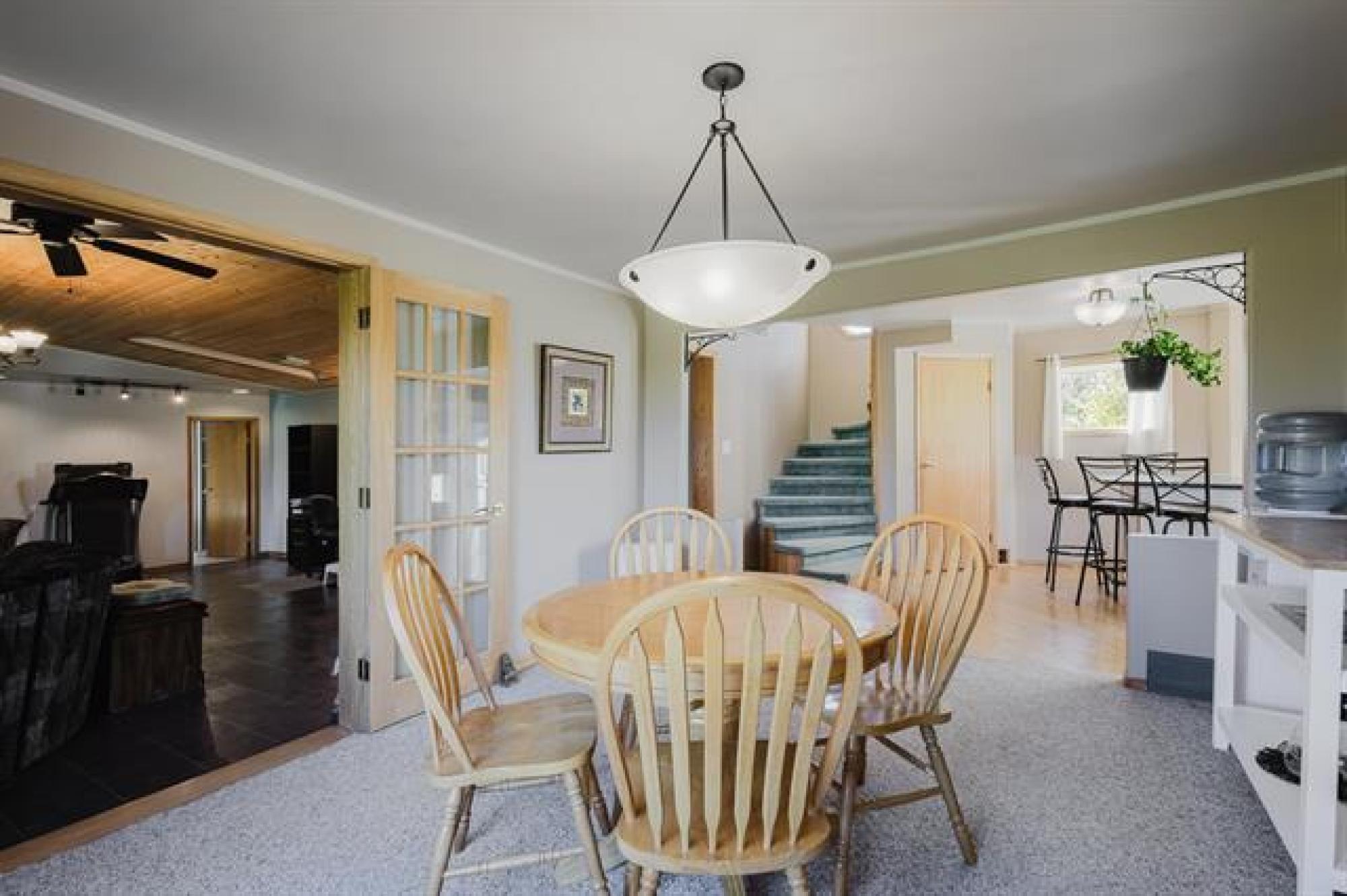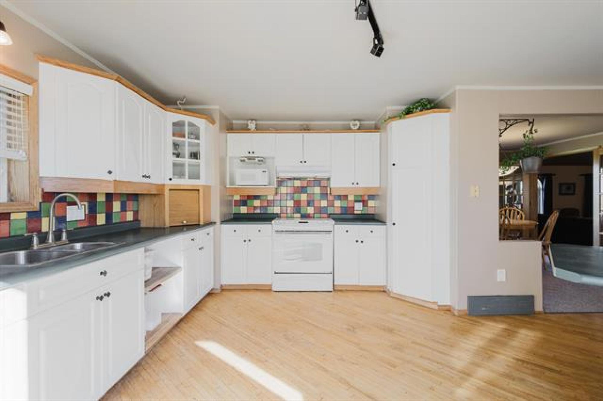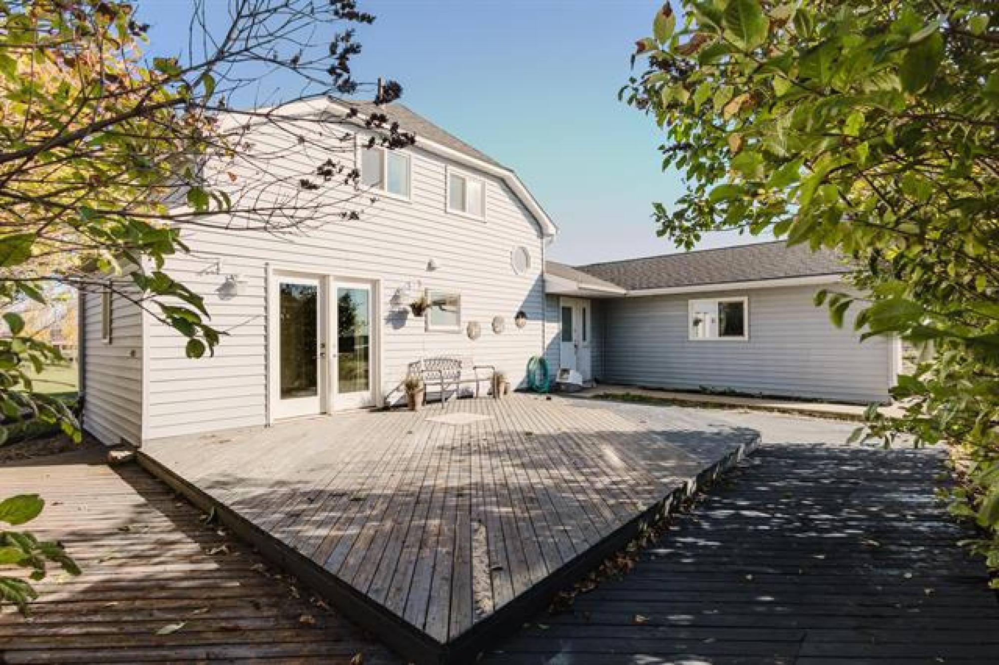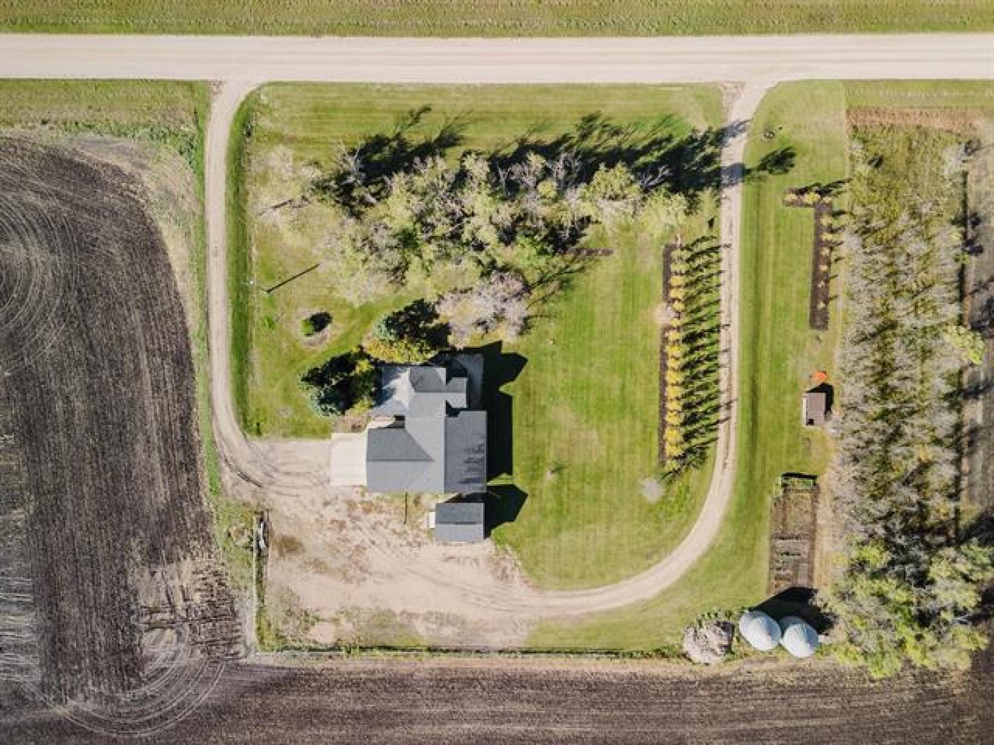 Tranquility & Privacy is here! This spacious family home offers over 2000 sq ft of finished living space w/large bright rooms including a large eat in kitchen w/patio doors. Main floor consists of massive living area, 3 piece w/laundry, formal dining area and a grand primary bedroom suite w/ensuite bath updated in 2022 including jacuzzi tub. Upper level features 2 bedrooms each w/ separate sitting area perfect for kids library or gaming space. The oversized insulated attached 28' x 26 double garage w/floor heating ready to be connected, a newer 18' x 20' detached workshop, 2 grain bins, chicken coop, all on a gorgeous 1.69 acres with lots of garden space & fruit trees. Updates include well with potable water (2018), shingles (2022), forced air furnace (2022) & more. Flexible possession date w/appliances included just minutes East of the Town of Morris. Bus service for school aged children, septic tank & field. 2 access points can accommodate large vehicles/trailers. A quaint & peaceful retreat minutes from conveniences is sure to impress! Step away from the concrete jungle. These opportunities don't come along too often just 40 minutes south of Winnipeg. Rural living, town conveniences close by!