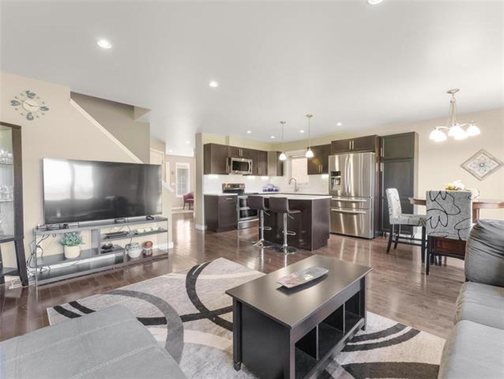 S.S. Oct 10th after 12 PM. Offers Oct 14th at 7 PM. Fabulous end unit townhouse condo featuring extra windows for more natural light, 3 bedrooms & 3.5 bathrooms, backing onto greenspace w/ views of the walking path along the Seine River. The main floor welcomes you w/ a spacious foyer, a convenient powder room, & direct access to the insulated garage. Bonus: EV charger & 2 add'l outdoor parking spots! Enjoy an open-concept layout w/ a bright kitchen, dining & living area featuring maple hardwood floors, quartz countertops, ample cabinet and counter space, a pantry w/ pull-out drawers, and a central island. Garden doors off the dining area lead to a north-facing deck overlooking greenspace—no backyard neighbors! Upstairs, you’ll find three bedrooms, incl a spacious primary suite w/ walk-in closet, a 5-piece ensuite w/ a soaker tub & separate shower, and a cozy electric fireplace. A 4-piece bathroom serves the other two bedrms, and a wonderful laundry room. The finished lower level incls a 3 pc bathroom, rec room & a storage area w/ included shelving. Newer HWT '24. Low condo fees—only $229.83/mth! Visitor parking available at end of development. Conveniently located close to public transit & shopping.