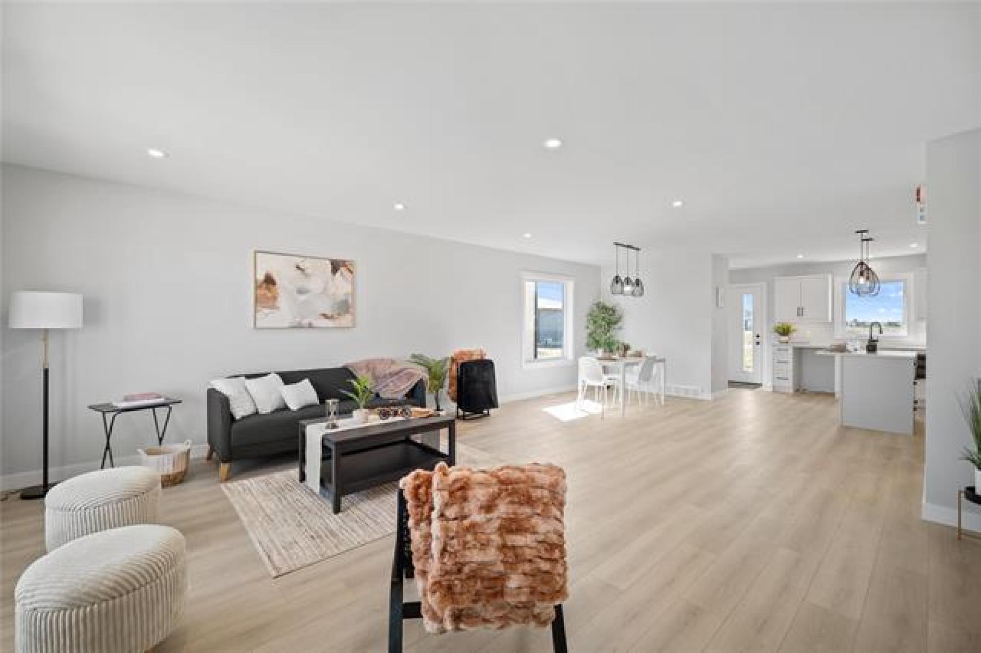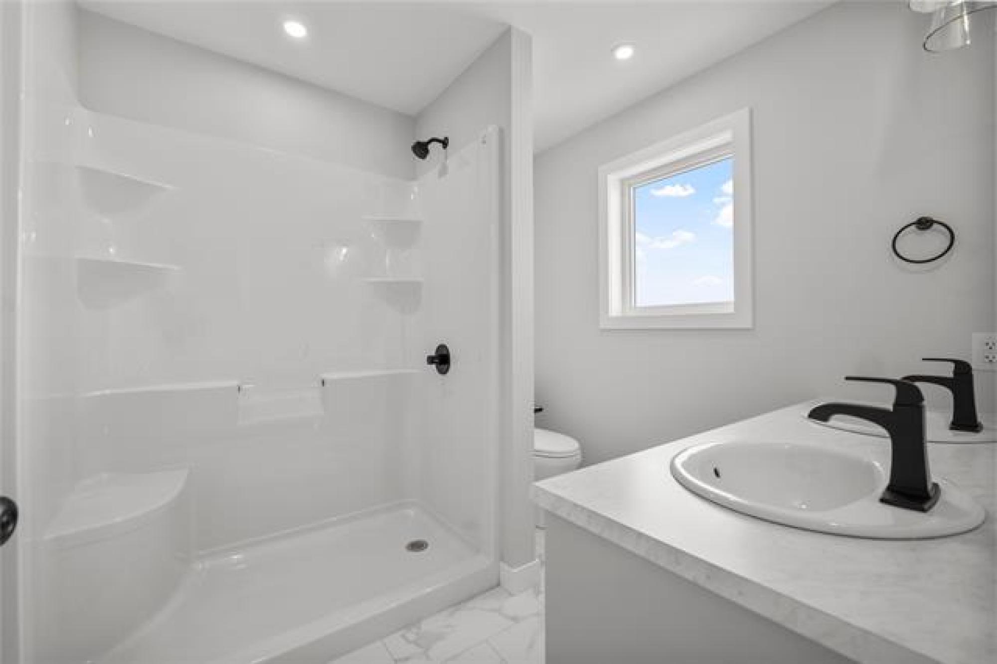 Fully complete and has grass in Front and Back yard! Ready for possession! Another fantastic build by Gerald Stoesz Contracting! This beautiful brand new 1,588 SqFt 2 Story has a Great floorplan with a front porch and railing! Featuring 3 bedrooms, 2.5 bathrooms! Enter into the large foyer area! The Living room has abundance of natural light with high ceilings and vinyl flooring leading you into the kitchen. Custom cabinets, with walkin pantry, island with quartz countertops, soft close drawers and under lighting. 2 piece bathroom off the kitchen. Upstairs The primary bedroom is huge has an ensuite bathroom with double vanity sinks and large walk in closet! Features 2 more bedrooms and 2nd floor laundry! The basement has an ICF (Insulated Concrete Form) foundation and will be fully drywalled. High quality Floor Truss System. Attached is a 24'x24' garage located on a large 59' lot! Big backyard! Concrete driveway! Located Near the new Highschool and Recreation Center! National Home Warranty Included. Appliances and landscaping available! Call now for more information.