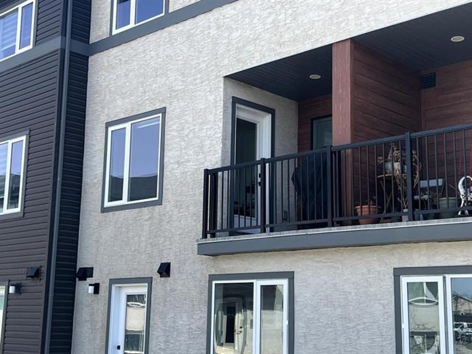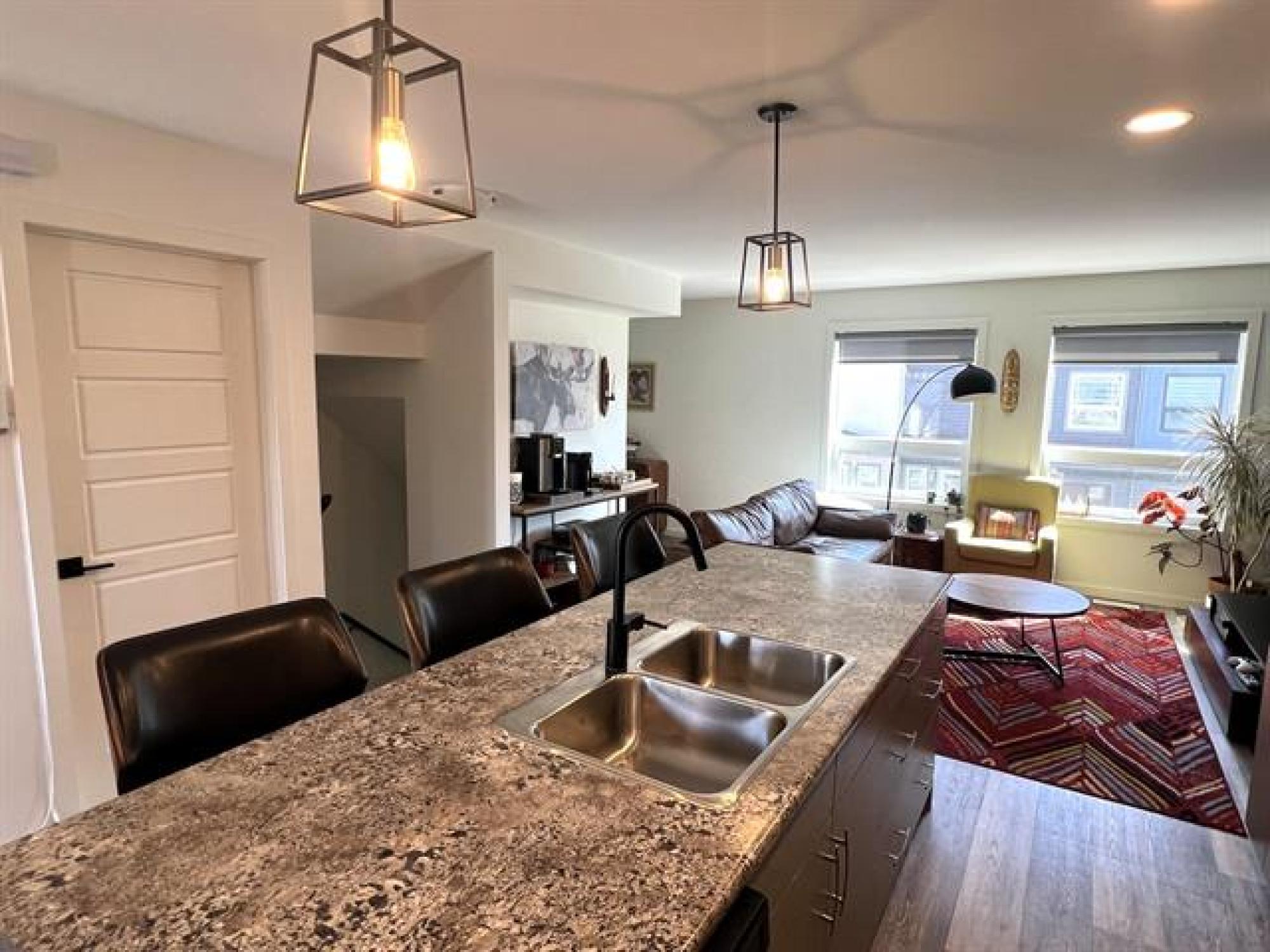 S/S NOW OFFERS AS RECEIVED. Open For Admiration! This original owner contemporary styled 3 bedroom, 3 bathroom townhouse style condo is sure to impress! Meticulously maintained with designer decor throughout, this one has it all! Enter the ground level foyer with access to attached garage, exit to yard, storage and mechanical. Open living area with feature wall, laminate floors, island kitchen, stainless steel appliances, dining area, 2pc bath, garden door to balcony. 3 bedrooms and full bath on upper level, primary bedroom suite with walk-in closet and 4pc en-suite bath. Attached and insulated oversized 12x30 garage with opener. C/air, HRV, 6 appliances included, custom window coverings. Close to all conveniences, shopping and more!