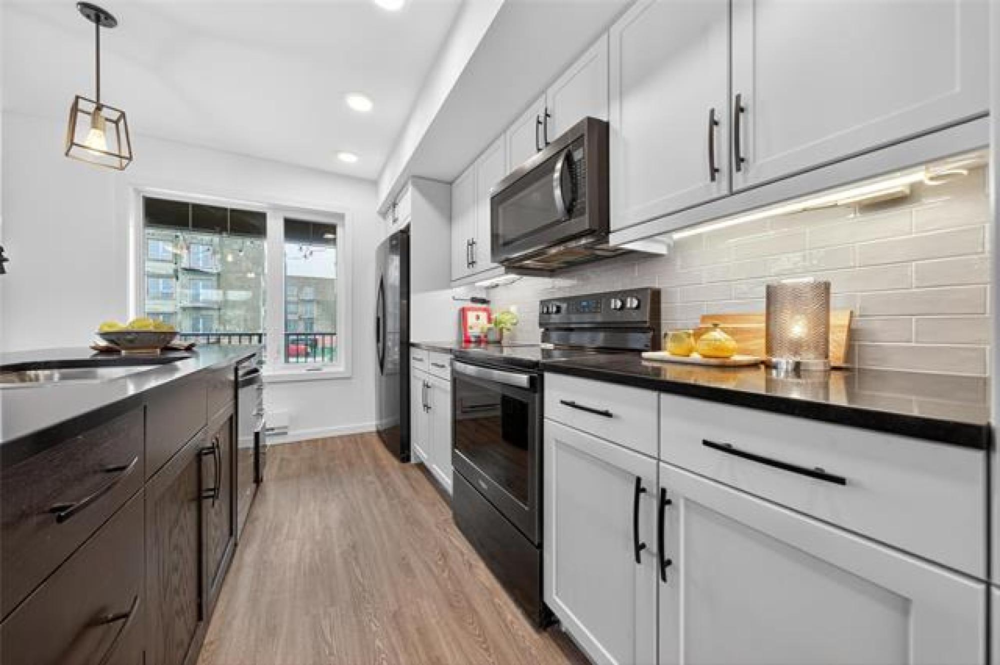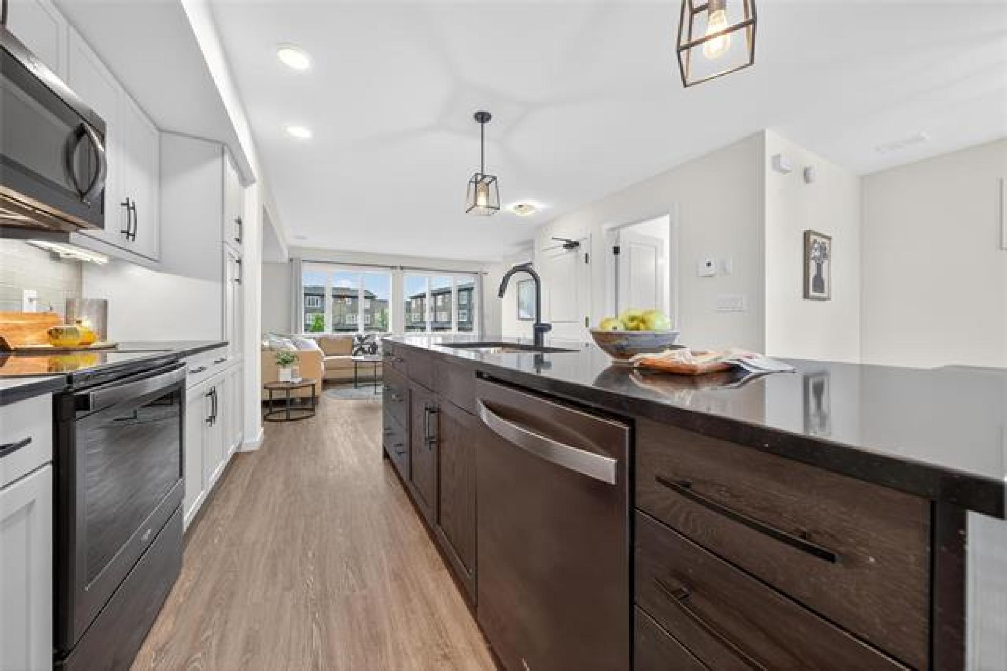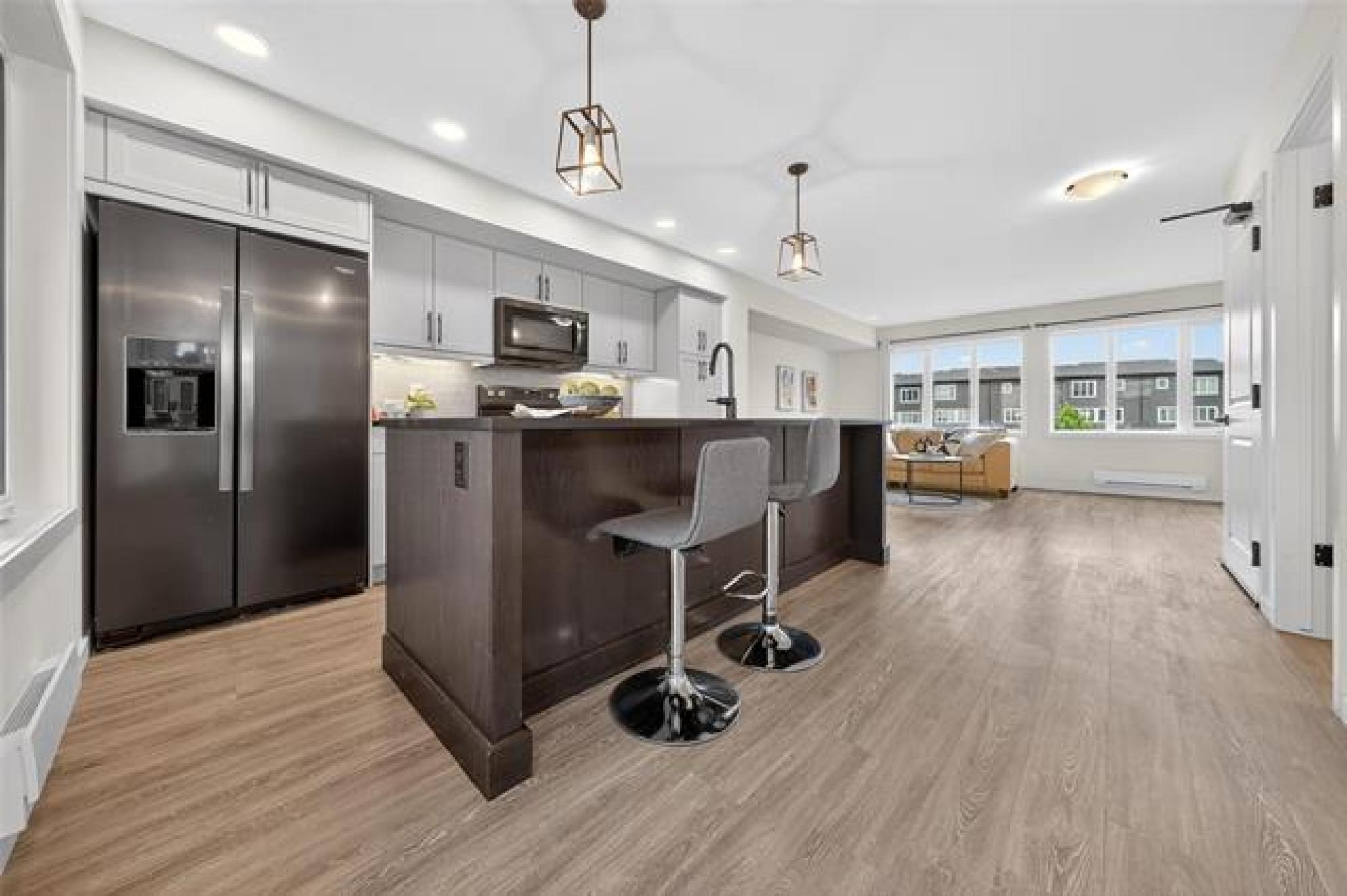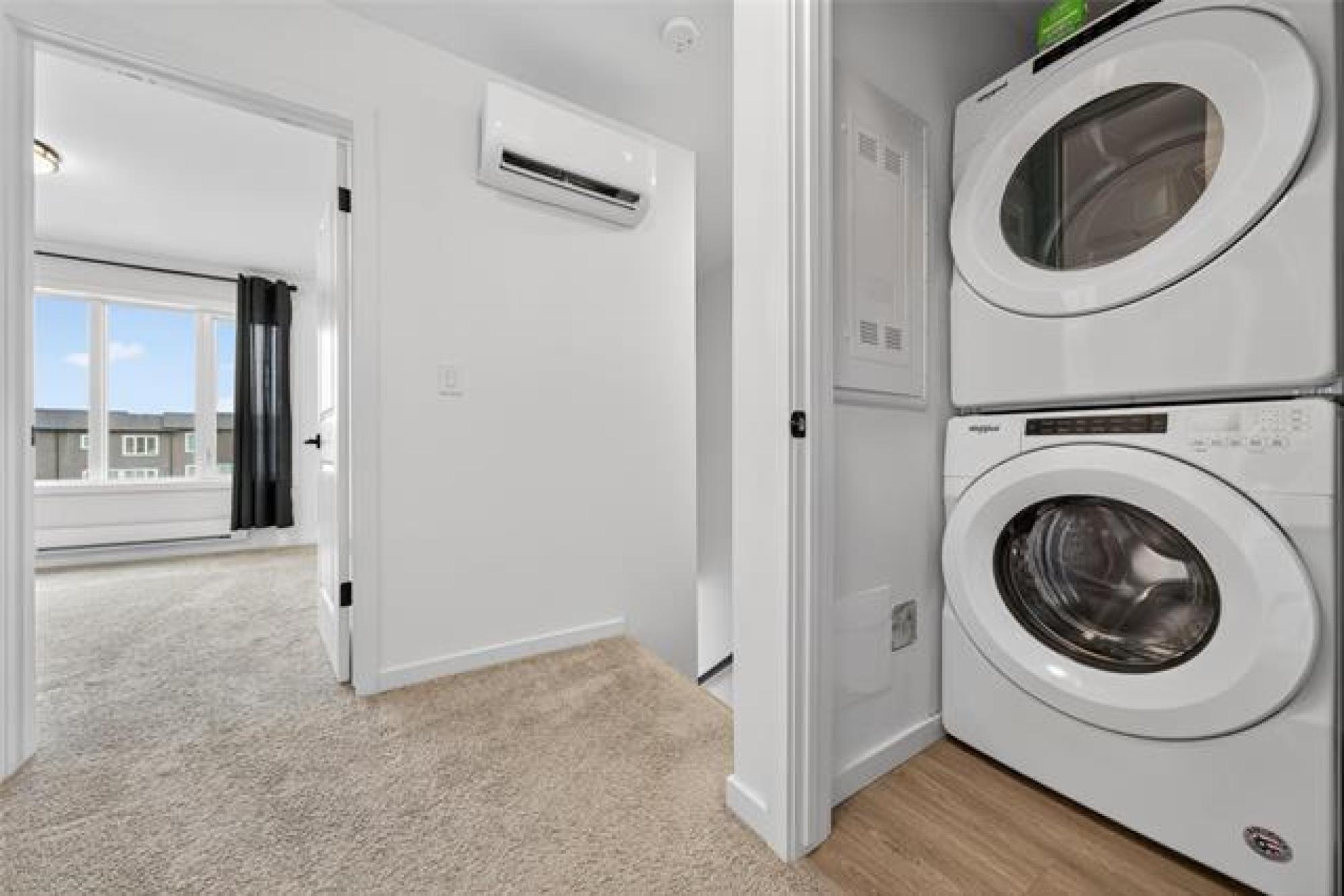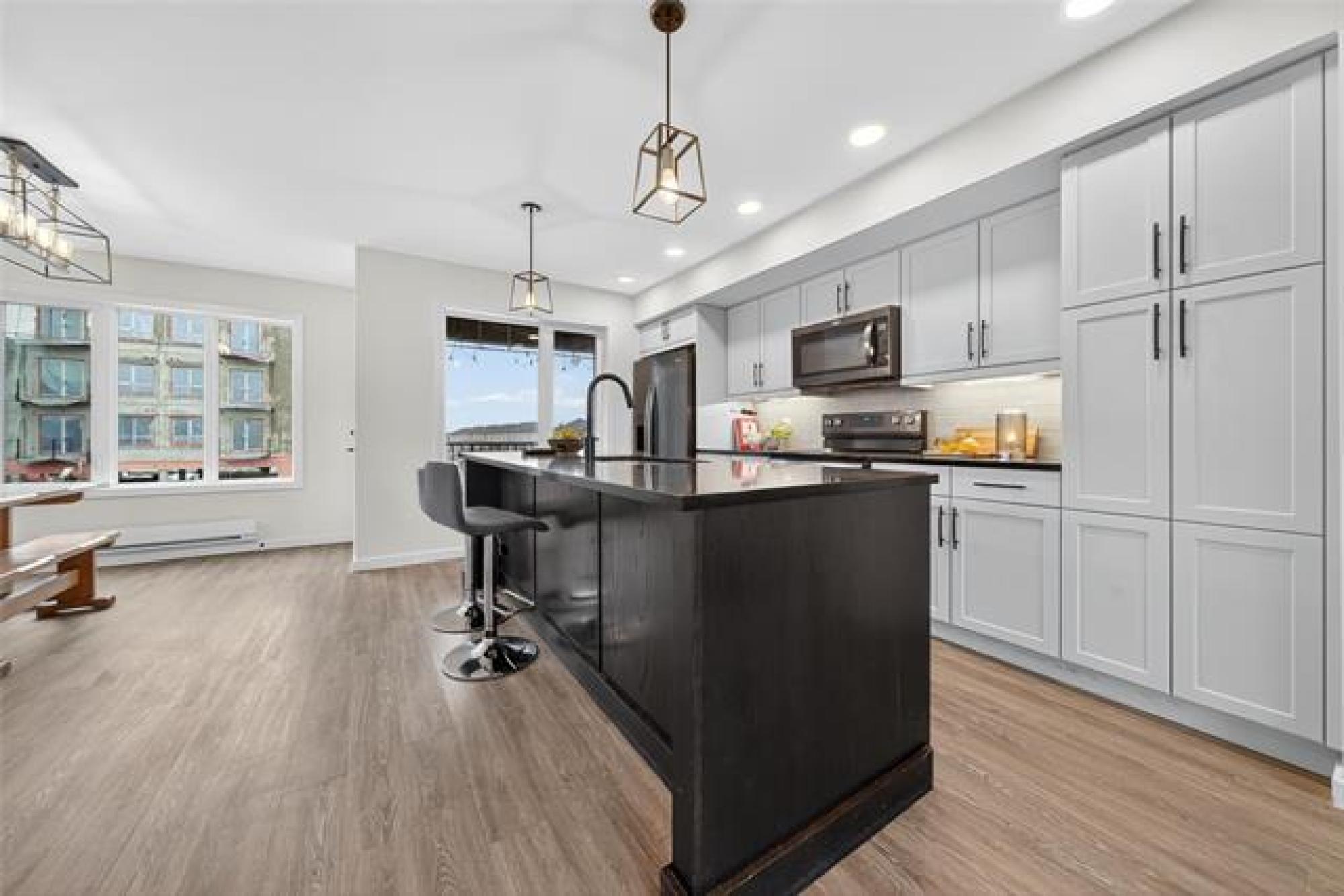SS now. Offers as received. Located in the vibrant Bridgewater Centre, this bright and freshly painted 3-bedroom, 3-bath end-unit townhouse condo offers 1,262 sq ft of well-designed living space. Included is one covered parking stall valued at $20,000. Being an end unit, this home benefits from extra windows that bring in plenty of natural light. The main floor features an open living room, dining area, and a convenient powder room. The kitchen is equipped with quartz countertops, a modern tile backsplash, loads of cabinetry, a large island, and stainless steel appliances. Upstairs, the primary bedroom includes a walk-in closet and private ensuite bath. Two additional bedrooms, a full bathroom with ample storage, and an in-suite laundry area with washer and dryer complete the upper level. End unit balcony provides outdoor space to unwind. The pet-friendly community includes a playground & visitor parking for added convenience. 2 minute walk to shopping, restaurants, walking trails, lakes, Altea & more. Low condo fees include water, adding so much value! Well-maintained, move-in ready, and full of natural light - this home checks all the boxes.