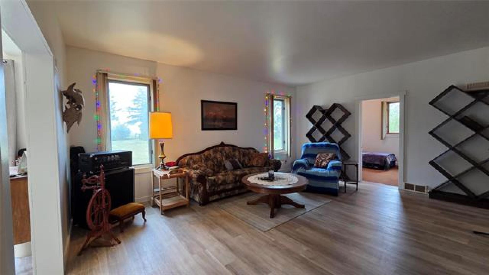 1435 sq.ft. large spacious 3 bed 1 bath bungalow - Making your way into the home you have a large open kitchen / dining area (10' x 26' to paint a picture of the size) you can have family gatherings or dinner with a large table and not feel congested - garden doors lead you out to the outdoor patio. The home has been refreshed with laminate flooring in the main living areas. There is a spacious 4 piece bath as well as large laundry room with an abundance of storage. On your 156.35 acres of land there is a 47x31 shop - 220v wiring with a back mezzanine level (wood stove in lower area). A large barn area as well as chicken coop and other storage buildings on the property. THE GARDEN - 3 large raised planters which will produce amazing vegetables and easy to maintain. The remaining land - there is bush as well as approximately 35 acres of hayland that is currently being cut. There is some existing fencing (condition unknown), 2 dugouts, as well as treed land. Measurements +/- jogs. Information deemed accurate but should be independently verified.