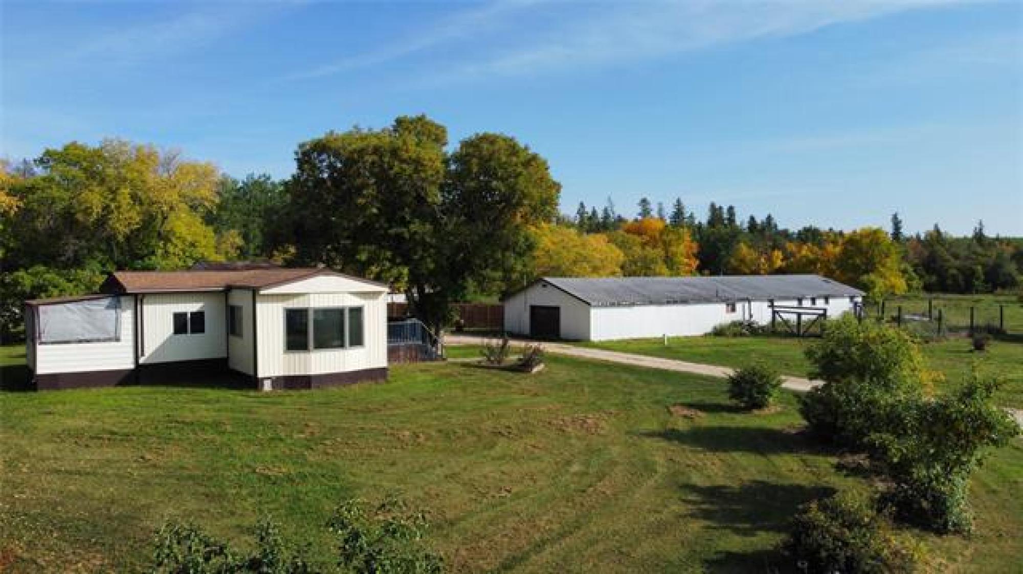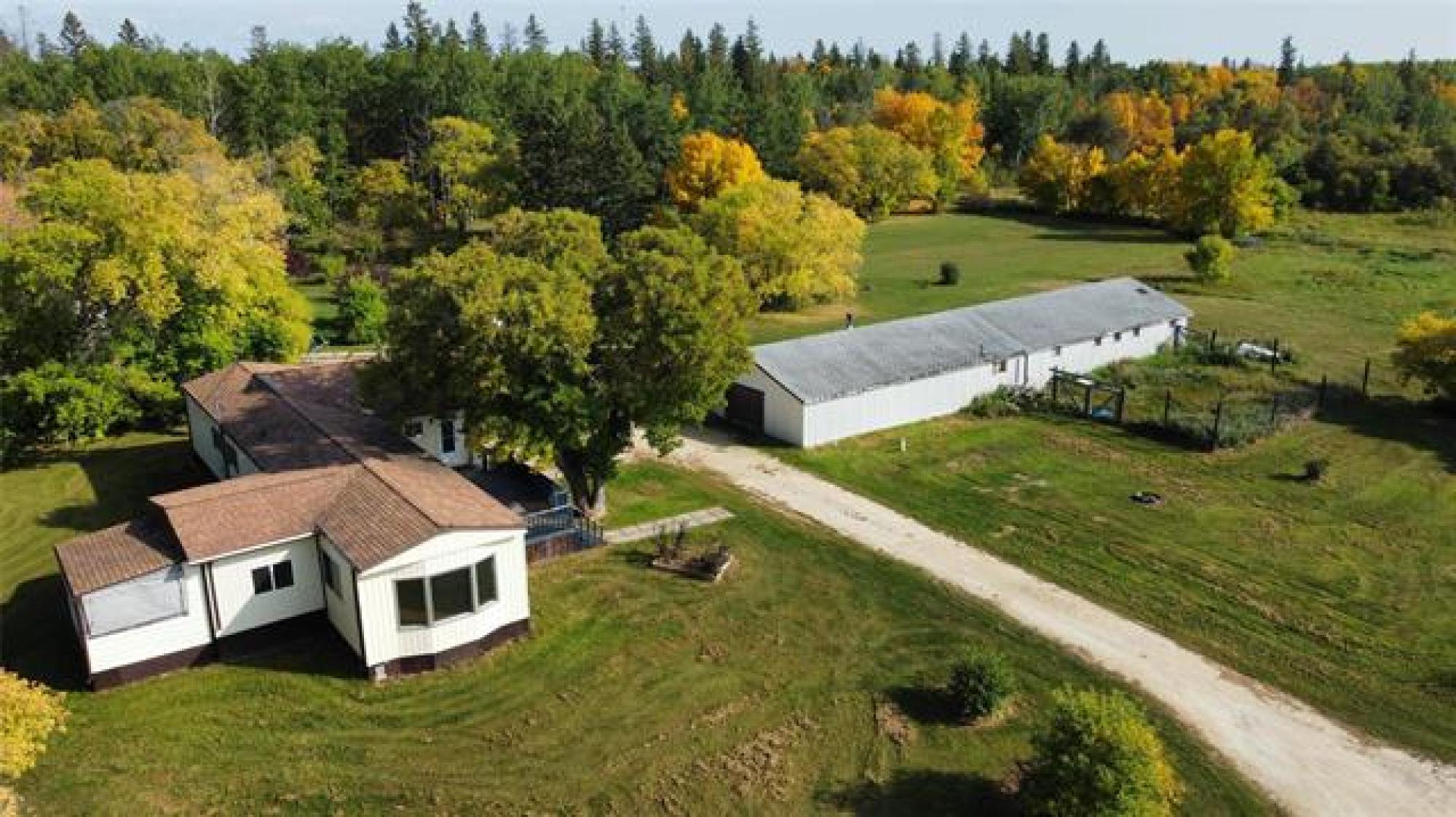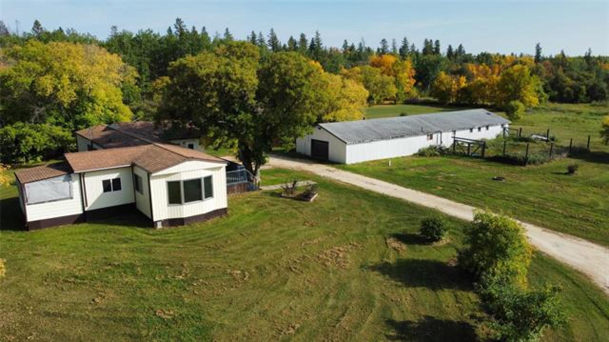 Enjoy peaceful country living in this bright 3 bedroom, 2 bathroom home with additions for home office, studio, or play rooms. Primary bedroom has blonde, luxury vinyl plank flooring. Large entryway mudroom boasts lots of closet space. Open kitchen, dining and living area is great for family life and entertaining guests. Modern appliances throughout. The 2 acres hosts a large horse barn with an attached garage, and is connected to a fenced-in garden space with fertile soil. It's ready for homesteading projects or just enjoying the beautiful land. Only 2 km to Lake Winnipeg, 10 minutes into Gimli, 10 minutes into Winnipeg Beach, or 1 hr to central Winnipeg. Come view this idyllic Interlake location!