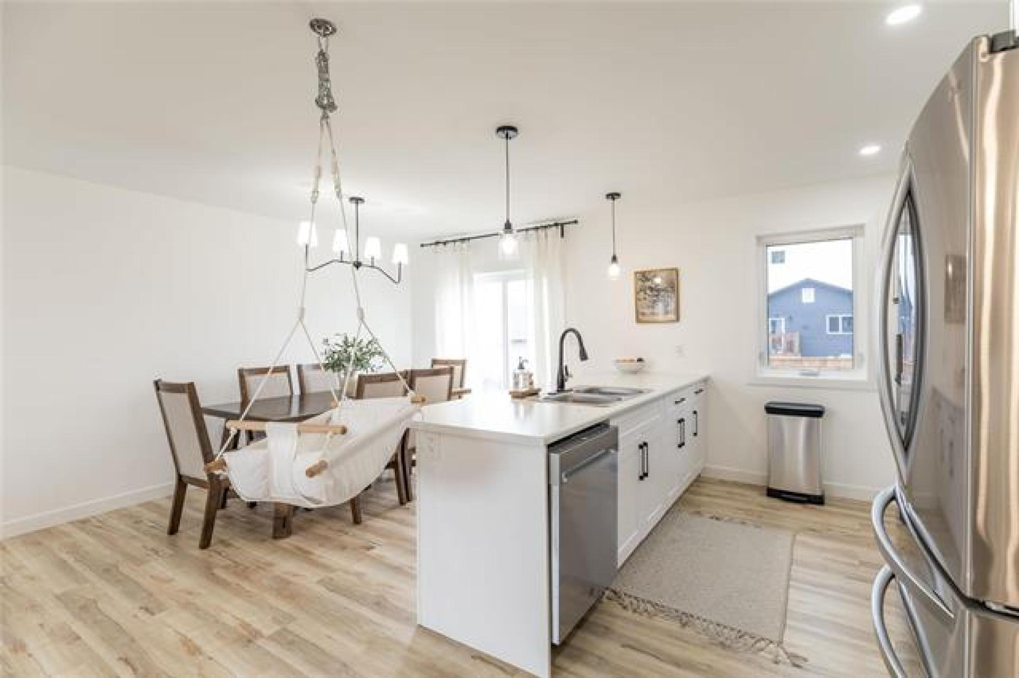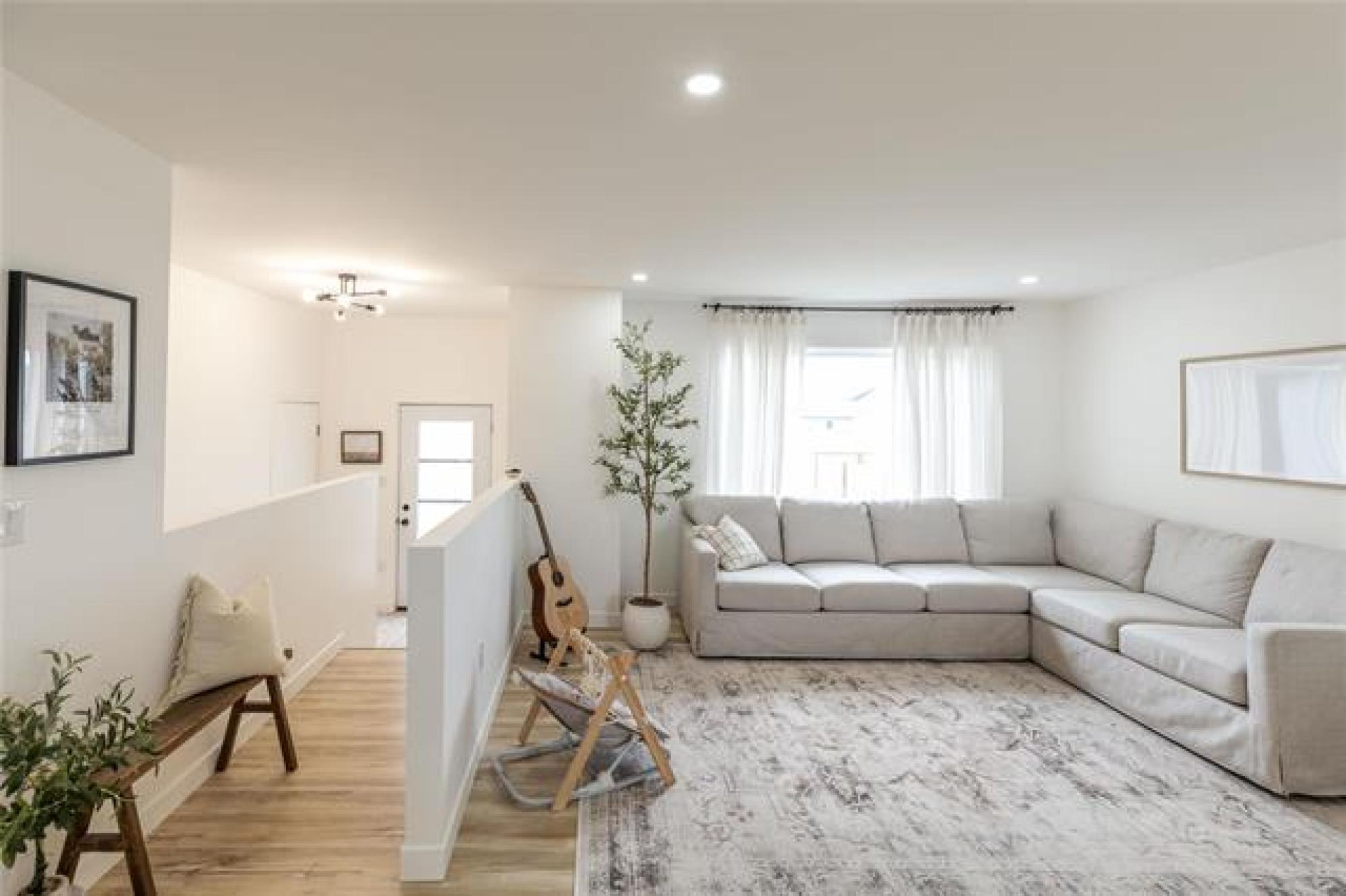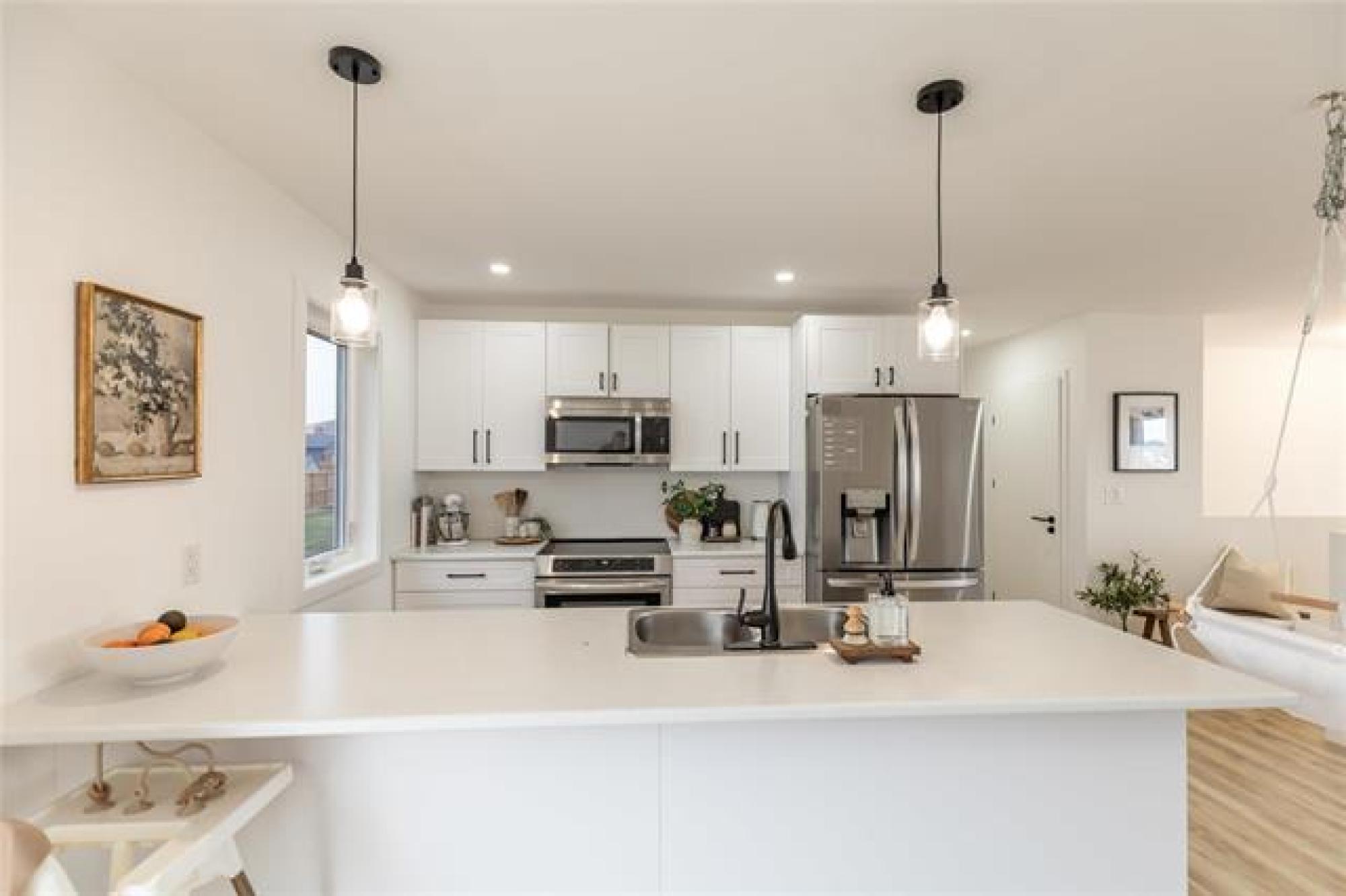 Charming & bright 2025-built home in the welcoming community of Ste Anne, offering 1,120 SF of thoughtfully designed living space. From the moment you arrive, you’ll be greeted by a beautifully landscaped front yard that adds to the home’s curb appeal. Step inside to be greeted by a light-filled living room that radiates warmth and comfort, making it the perfect spot to gather with family or entertain guests. The dining area features a garden door leading to your backyard, inviting you to enjoy summer BBQs or watch the kids play. The modern white shaker-style kitchen is both stylish and functional, boasting a convenient peninsula with seating. You’ll love the pristine stainless steel appliances that perfectly complement the crisp, clean cabinetry. The spacious primary bedroom offers a peaceful retreat, complete with a walk-in closet and a walk-through 5 pc bathroom. Two additional bedrooms on the main level provide space for family, guests or a home office. Downstairs, the full basement is ready for your personal finishing touch—create a rec room, home gym, or whatever suits your lifestyle. This home combines modern comfort with small-town charm, making it the perfect place to start your next chapter.