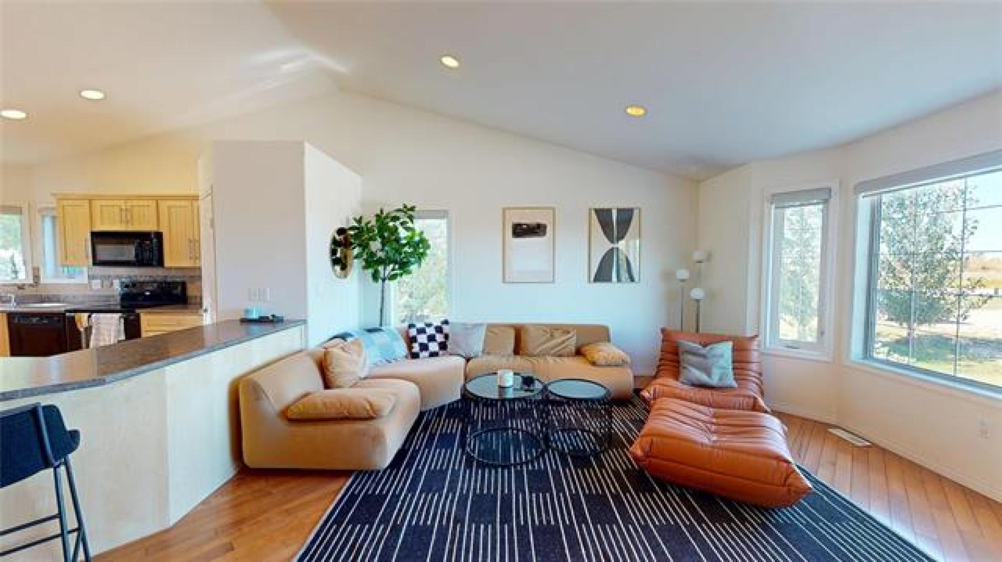 Lakefront at Sugar Point! Immaculate four season home surrounded by nature and peace and quiet. Check out the virtual tour and aerial video for a closer look. Foyer with tile floor and closet leads you to an open concept living area with gleaming hardwood floors, vaulted ceiling, inset lighting and lots of large windows that let the natural light and beautiful scenery in. Spacious dining area with garden doors to deck. Oak island kitchen with built-in dishwasher, pantry and three windows above sink. Fabulous primary bedroom offers garden doors to deck, three piece ensuite bath and walk-in closet. Two spacious additional bedrooms with closets and hardwood floors. Forced air electric heat, central air conditioning, central vacuum, includes all appliances. Low maintenance exterior, circular driveway and tons of parking. Fantastic treed lot with breathtaking views and amazing sunsets. This home and property are in pristine condition. Move in and be settled by Christmas! Just 10 paved miles to the town of Lundar which offers golf course, shopping, restaurants, recreational facilities and more. 110 kms to Winnipeg.