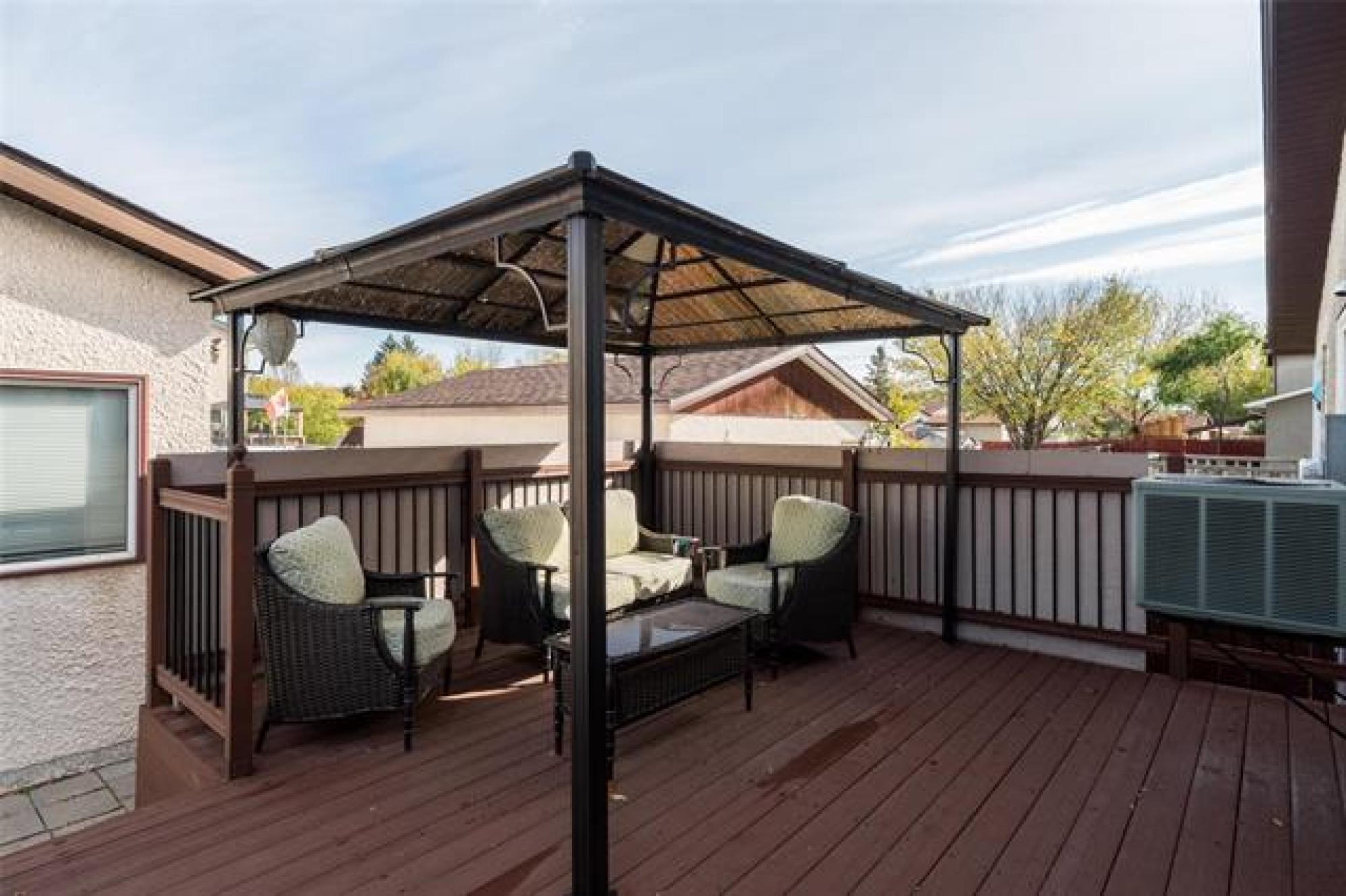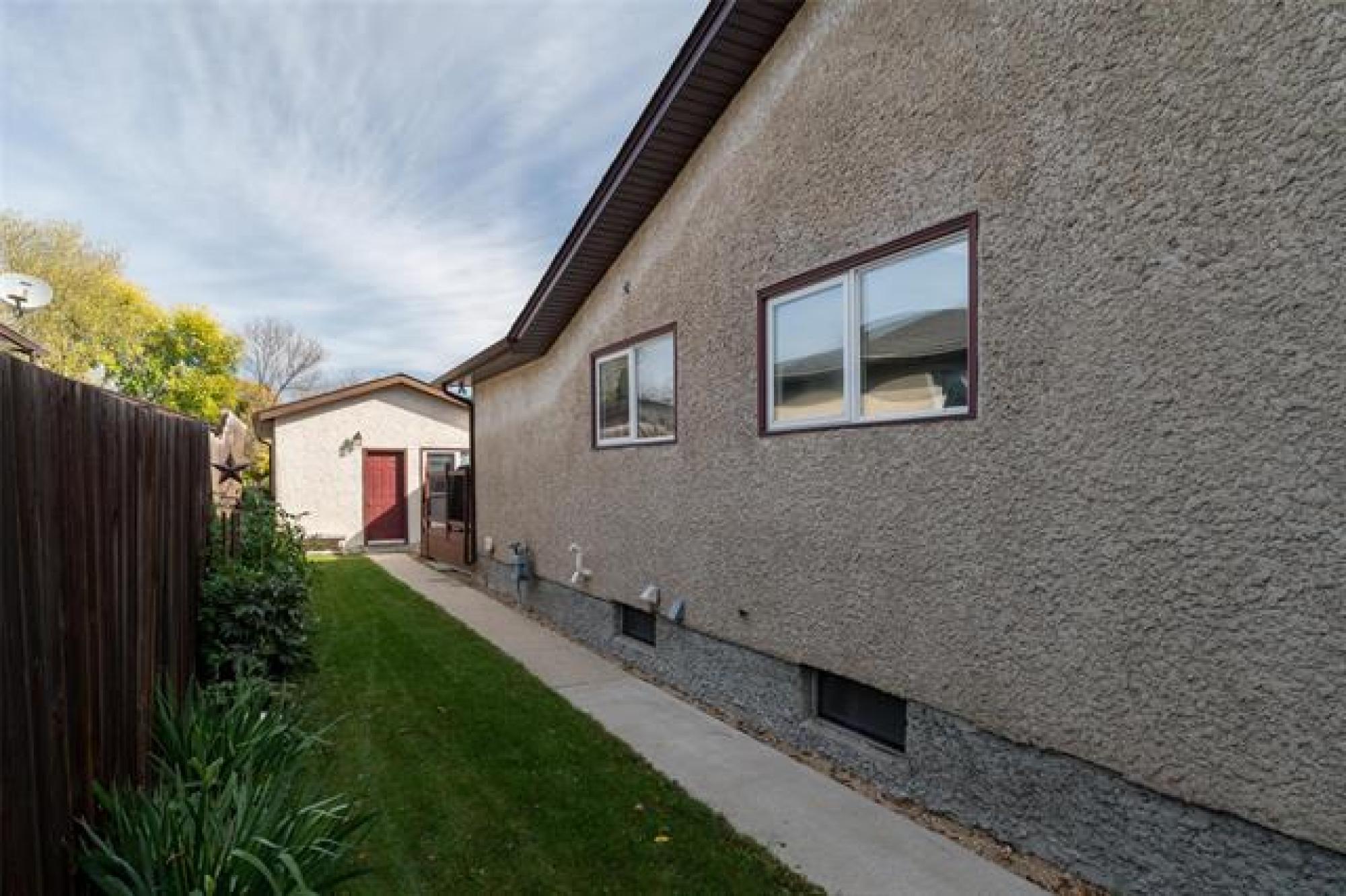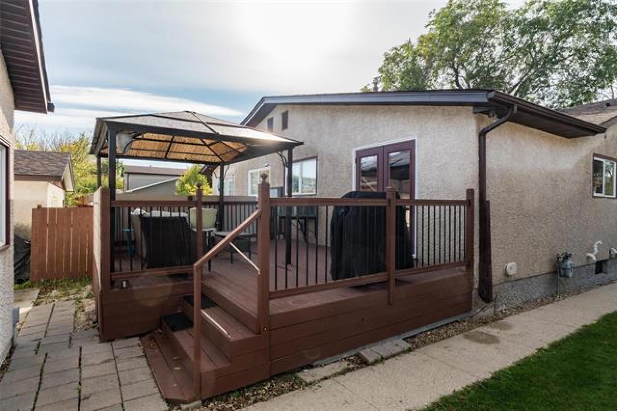 SS Thurs Oct 9/Offers Oct 14. October FALL HOLIDAY SPECIAL you will be THANKFUL to have found!! Genuinely sweet full dev 3 bdrm att 880 sf bungalow in quiet area incl a 2014 blt 26x16 insul det garage w/extra parking. Landscaped yard easy to maintain with delightful perennials & covered deck to enjoy. Comes with extra “TRIMMINGS” incl some newer windows, tankless Hotwater system, newer shingles, recently painted, 200 amp panel, AC, new stove 2025 & existing fridge, built in microwave in a remod white eat-in kitchen great for entertaining with friends & family overlooking a spacious living room to relax in w/electric fireplace to cozy to. Primary bdrm w/garden doors invites you to venture out to covered deck to enjoy your morning coffee. Main floor full bath has been tastefully updated. Lower level offers a large entertainment space and more. A previous 4th bdrm with closet needs only an egress window installed to use as a bdrm or use it now as den, exercise room or crafts room. Utility room w/high eff furn, washer & dryer and more storage. So much to offer you +/or family. Close to schools, transit & easy access to Chief Peguis to take you to shopping or Lagimodiere to head to the lake.