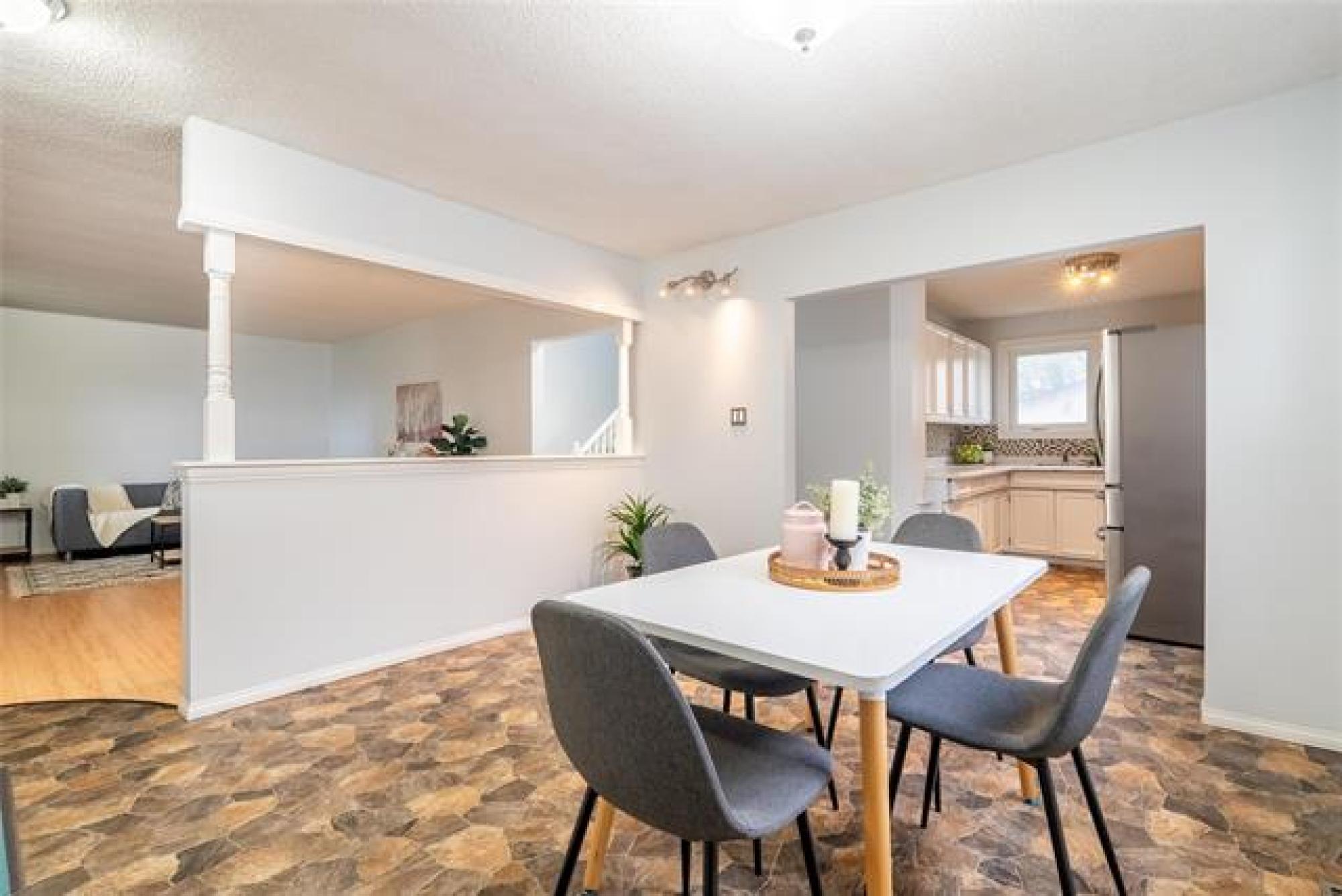 OFFER AS RECEIVED! Discover this charming home on a quiet street in West Transcona. The main floor offers an open concept design with a spacious living room, a large dining area, and a kitchen featuring a walk-in pantry. There's also a convenient main floor bedroom. Upstairs, you'll find two generously sized bedrooms and a full bathroom. The fully finished basement includes a large rec room, a versatile den, and a wet bar, perfect for entertaining. The large backyard is fully fenced and includes a double detached garage. Recent upgrades include new windows (Sept 2021), garage door (March 2021), garage roof (August 2015), roof and eavestrough (Sept 2023), furnace and hot water tank (March 2022), and fresh paint (August 2025). Located close to restaurants, Kildonan Place Mall, Costco, and other amenities. Don't miss out—schedule your showing today!