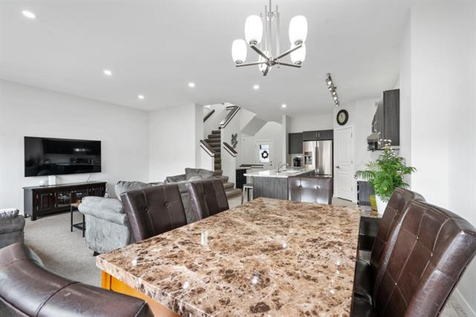 Updated Value, don't miss this opportunity!! Welcome to this beautifully maintained 1,512 sq.ft. Two Storey built by Randall Homes in the highly desirable Castlebury Meadows! Step inside to a soaring foyer that sets the tone for the warm, inviting home & beyond. The open-concept main floor showcases a sprawling kitchen with large island, S/S appliances & corner walk-in pantry - perfect for cooking, gathering & entertaining. The adjoining dining area & Great Room flow seamlessly, offering comfort and style for everyday family living. Sun-filled windows & garden doors open to a spacious rear deck overlooking the landscaped, fully fenced backyard - an ideal retreat for summer barbecues & evenings outdoors. Upstairs you’ll find 3 generous bedrooms plus a stunning primary suite with walk-in closet & private ensuite, along with a versatile office nook for working or studying from home. With 4 bedrooms & 3.5 baths total, there’s room for everyone! The permitted & finished lower level features a rec room, extra bedroom, full bath & ample storage. Attached & insulated garage + Close to schools, shopping, public transit & Gurdwara Kalgidhar Darbar, with easy access to Route 90. Don’t miss it!