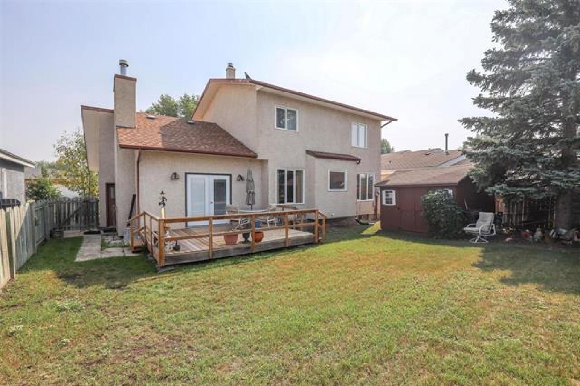*** Custom built in the Maples! FANTASTIC Super solid long time owner 1700 sq ft. 4 bedroom two storey in excellent condition. Upgrades over the last 10 years include: High efficiency furnace, c/air, hot water tank, roof, tri-pane windows, deck, hardwood floors. Large eat in kitchen with stainless appliances, formal living room/dining room combo. Family room with garden doors to rear deck and stone facing gas fireplace. 4 baths with primary ensuite. Upper level has parkay floors. Full rack of appliances , c/vac. Full partly finished basement insulated and dry- walled, seldom available oversize double attached garage with tons of height for storage. Nice curb appeal, private fenced yard area and shed. Excellent floor plan for a family and entertaining. This home has been loved and it shows. Hurry.