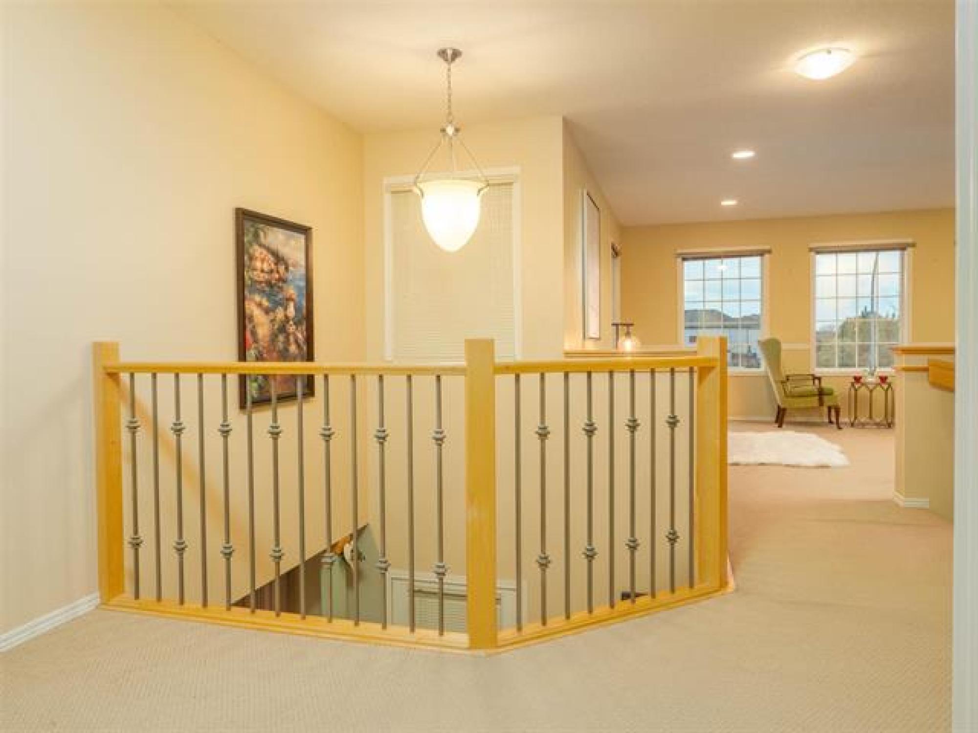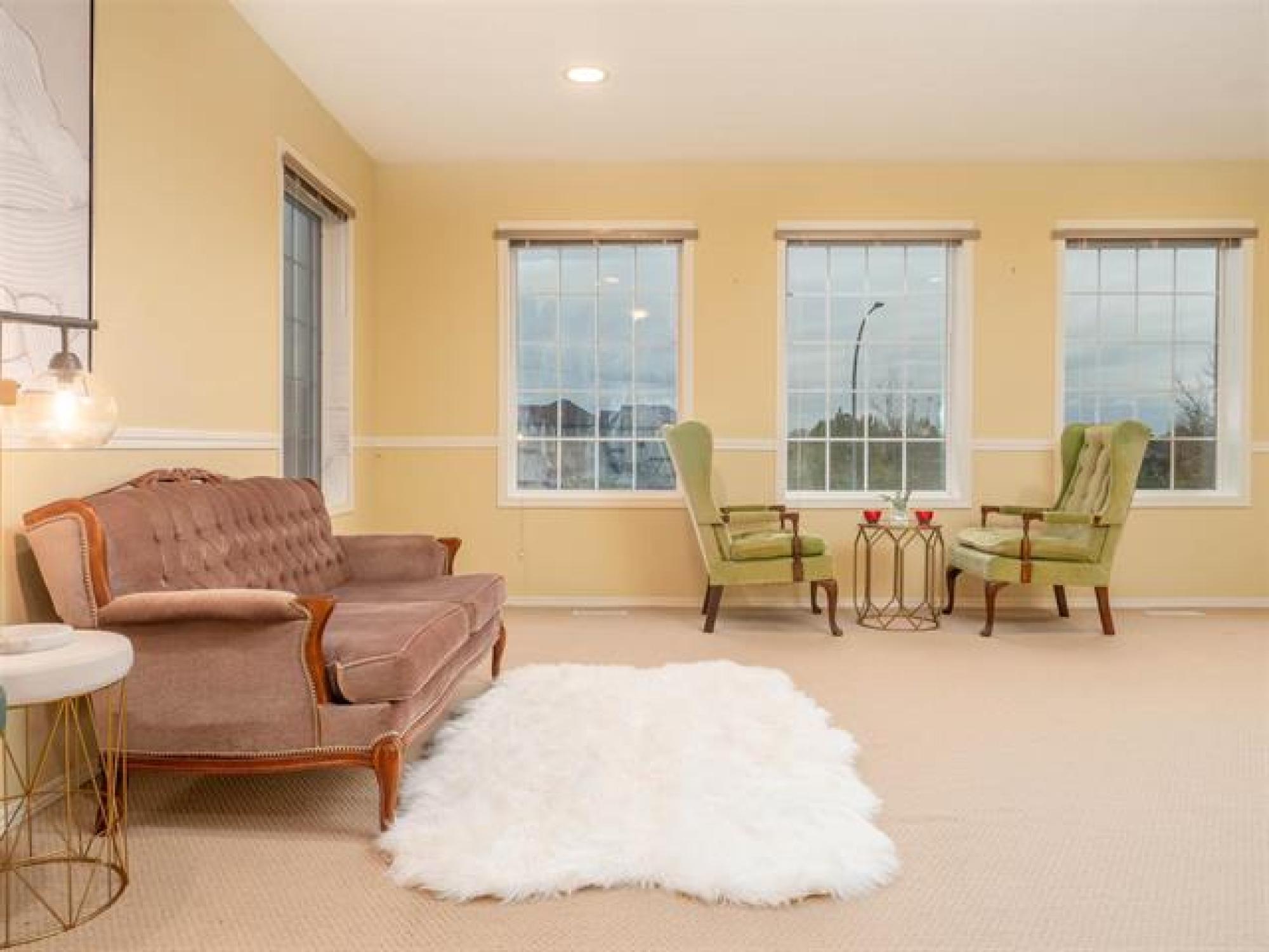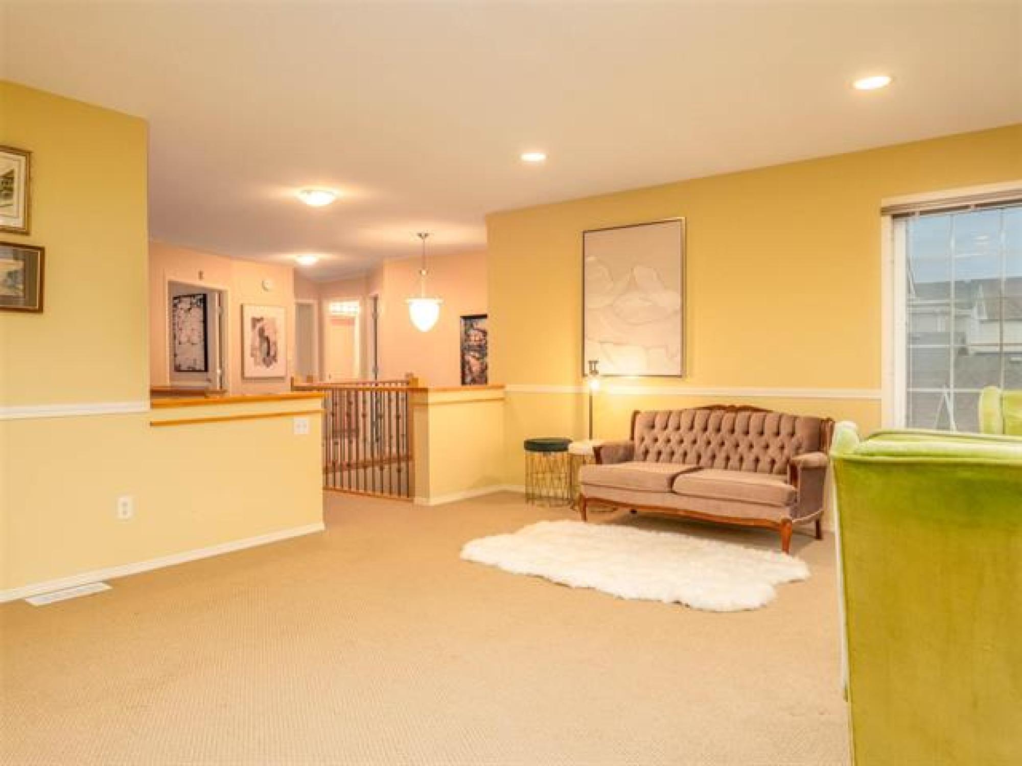 Showings now. Offers as received. Stunning 2storey home in the peaceful, nature-inspired community. Rarely available, this beautifully designed 2,070 sq.ft. family home offers the perfect blend of comfort, functionality, and breathtaking lake views. Facing directly toward the water, the upper loft provides a serene vantage point to enjoy morning coffee or sunset reflections. The second floor features a spacious primary suite with an organized walk-in closet and bright ensuite bath, along with two large, sun-filled bedrooms and an open loft ideal for family relaxation. The main floor offers a warm and inviting family room with a cozy fireplace, a thoughtfully planned kitchen with plenty of cabinets and counter space, and a comfortable dining area perfect for everyday meals and gatherings. A main-floor laundry room with a sink adds convenience to busy family life. The bright bi-level basement, with large windows, includes a generous recreation space, a bedroom, and a full bathroom—perfect for extended family. Recent upgrades include a new roof (2025) and new furnace and water tank (2024). Enjoy tranquil living surrounded by nature, modern comfort, and stunning lake views—all in one exceptional home.