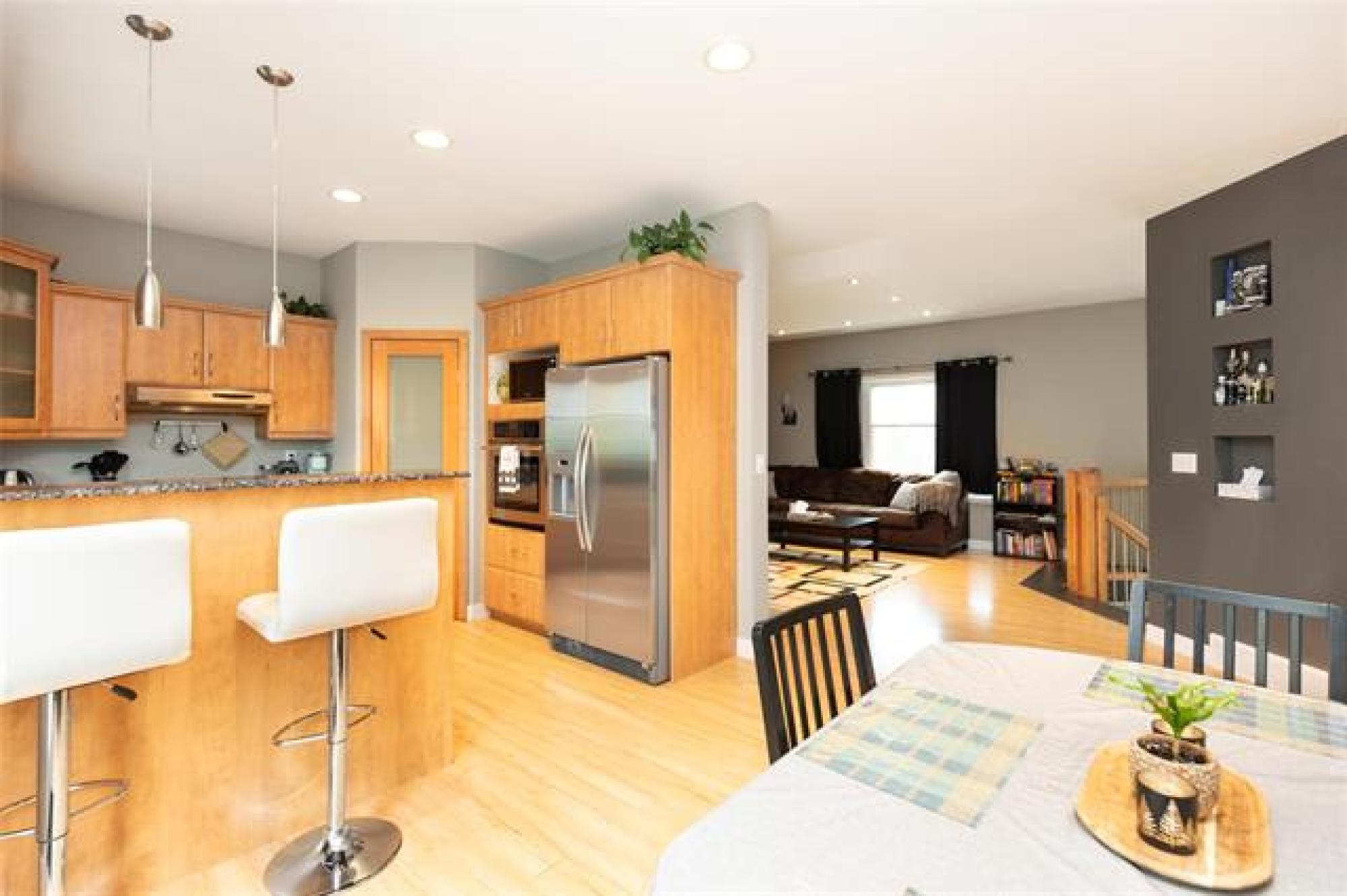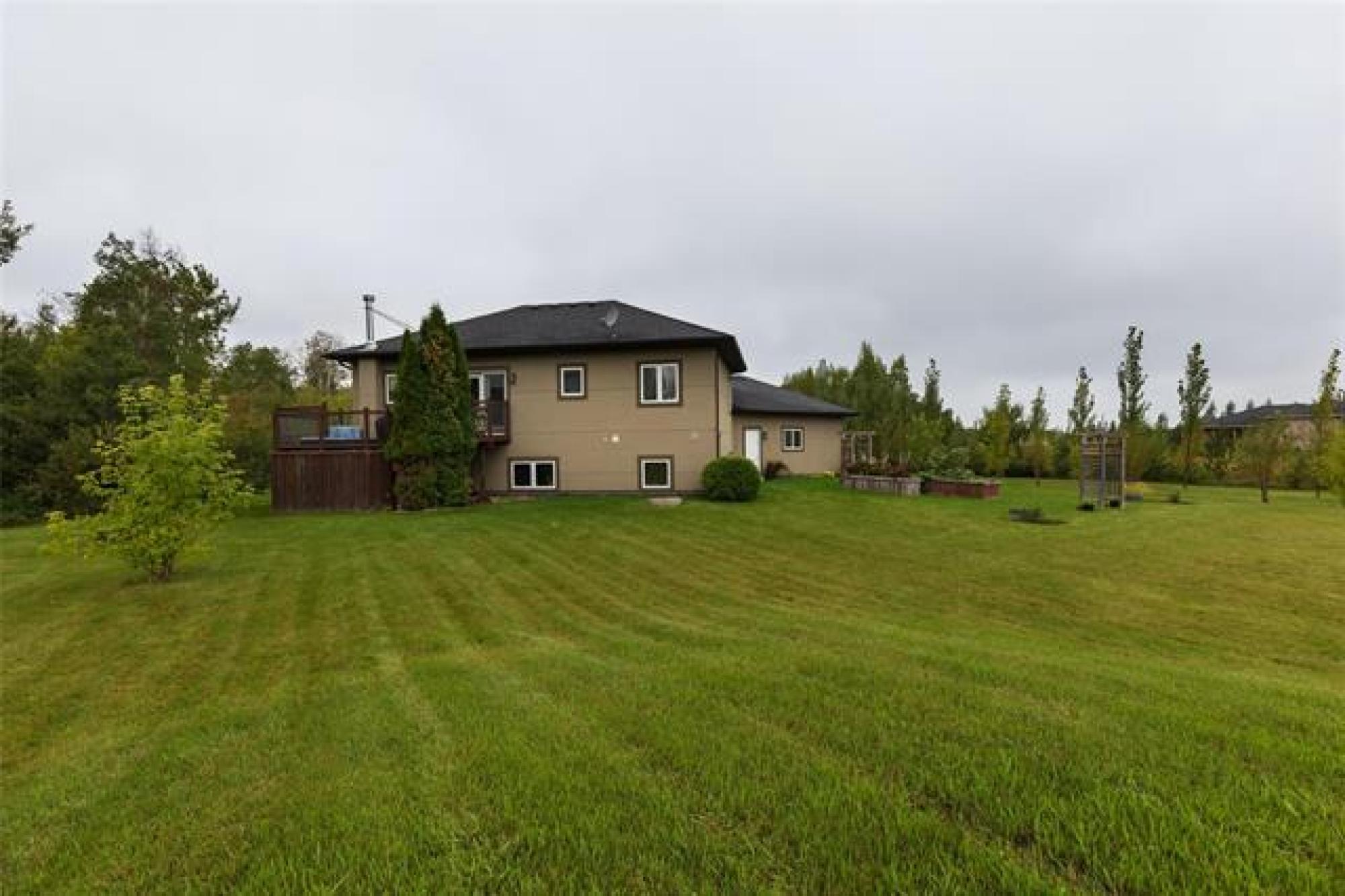 Beautiful country property in a desired neighborhood! This 4-Bedroom 2-Bath home is tucked away in a quiet bay just off Kokomo Road South. Step into a spacious living room, a cozy kitchen featuring granite countertops, built in wall oven and sleek glass cooktop. The dining room is located right off the kitchen with patio door opening onto a two-tiered deck. The main floor offers a full 4pc main bath, a spare bedroom and a primary bedroom complete with its own 3pc ensuite. The basement hosts a warm and inviting family room with a wood burning fireplace-perfect for cold winter evenings-plus two additional bedrooms and a 3pc bath. Recent upgrades include: painted stucco (2025), front and back deck painted (2025), microwave (2025), Valley Fiber (2025), Explore Fiber (2024), water softener (2022), HWT (2022), and most of the house recently painted. This well-treed lot provides privacy and plenty of outdoor fun with a playhouse and zipline tucked away at the back of the property. Zipline and structure sold as is.