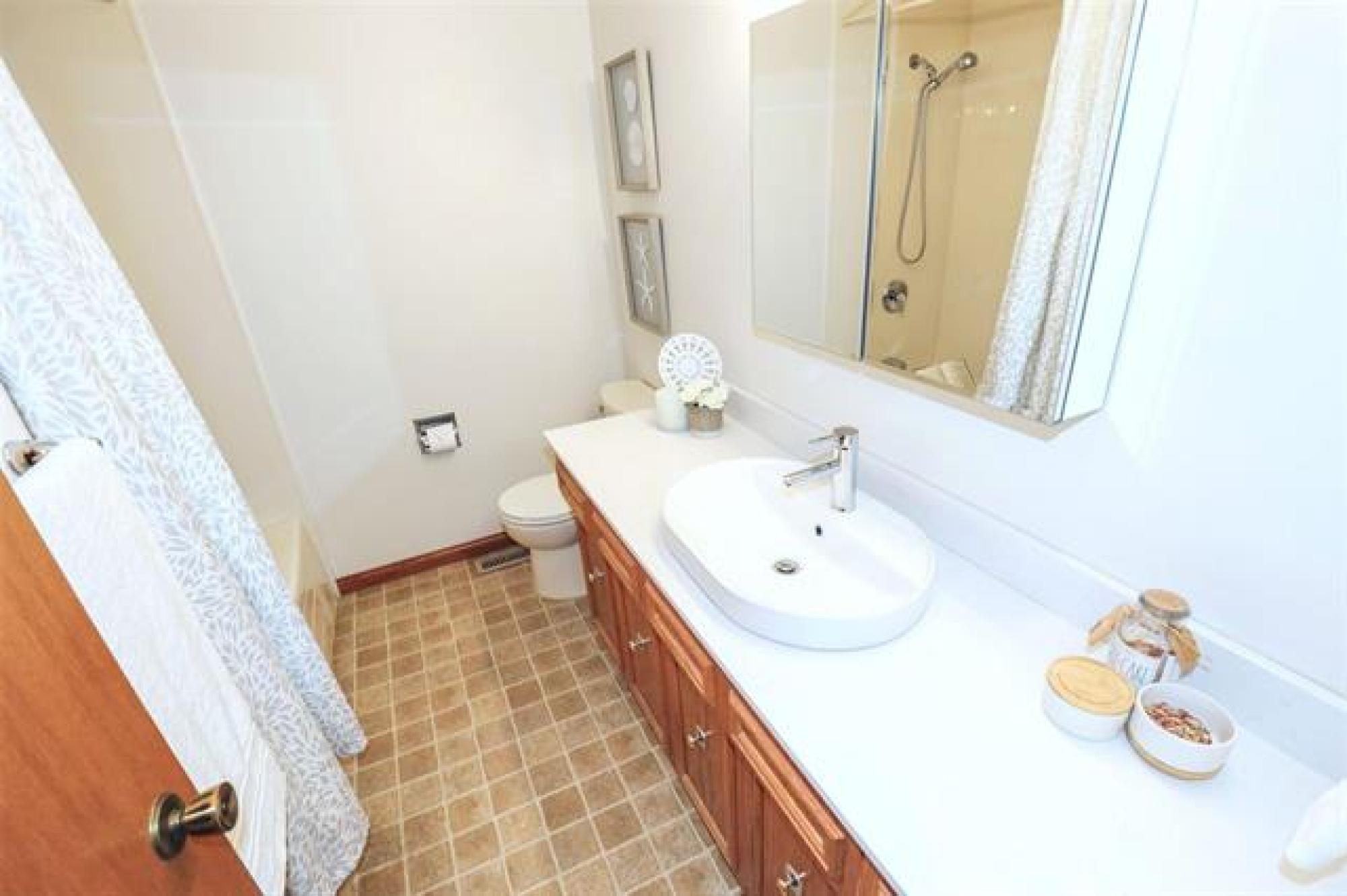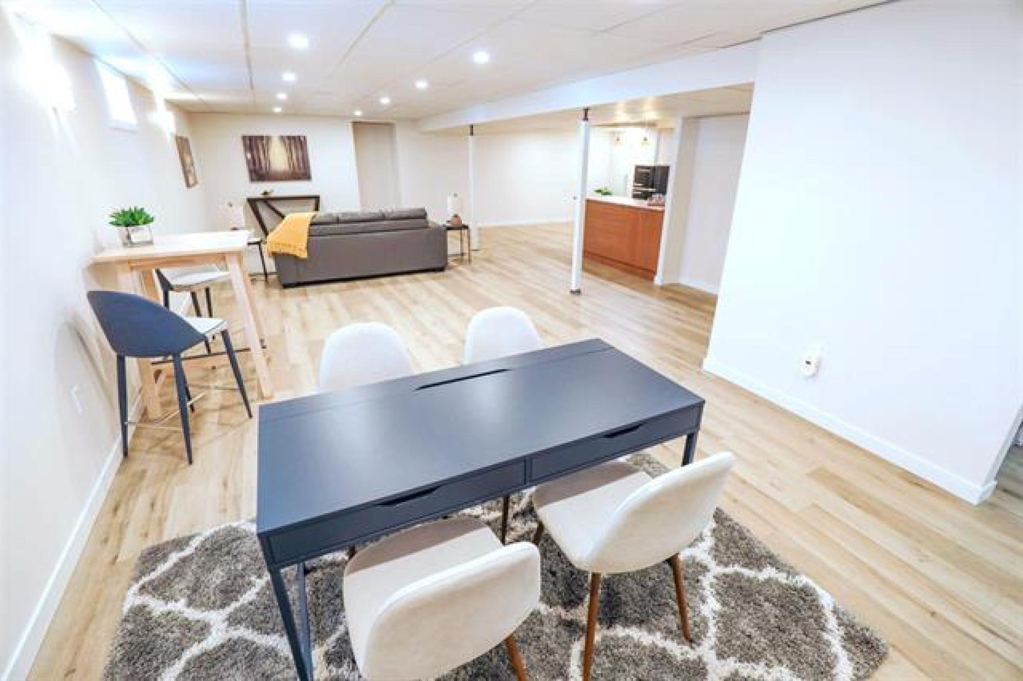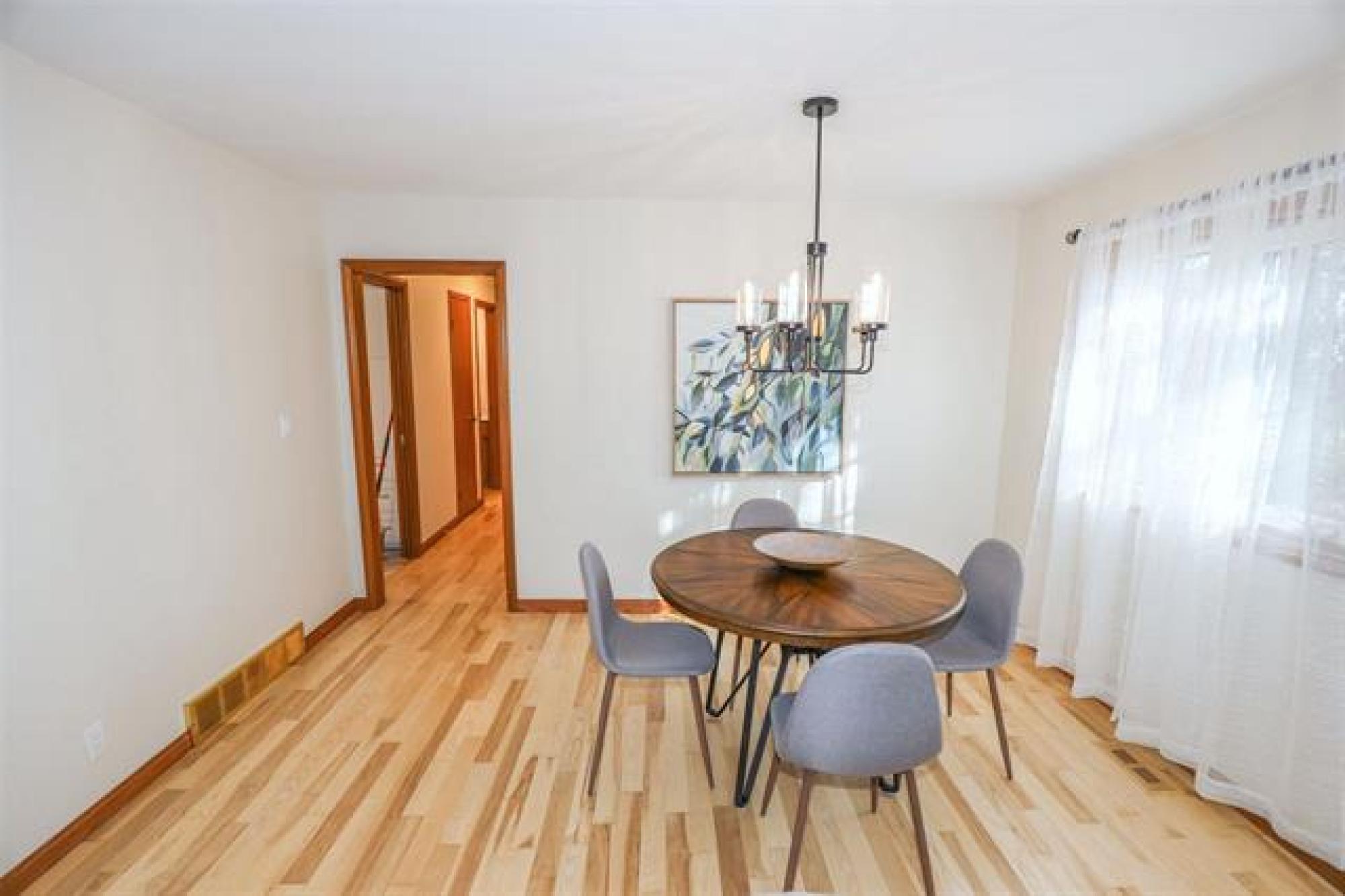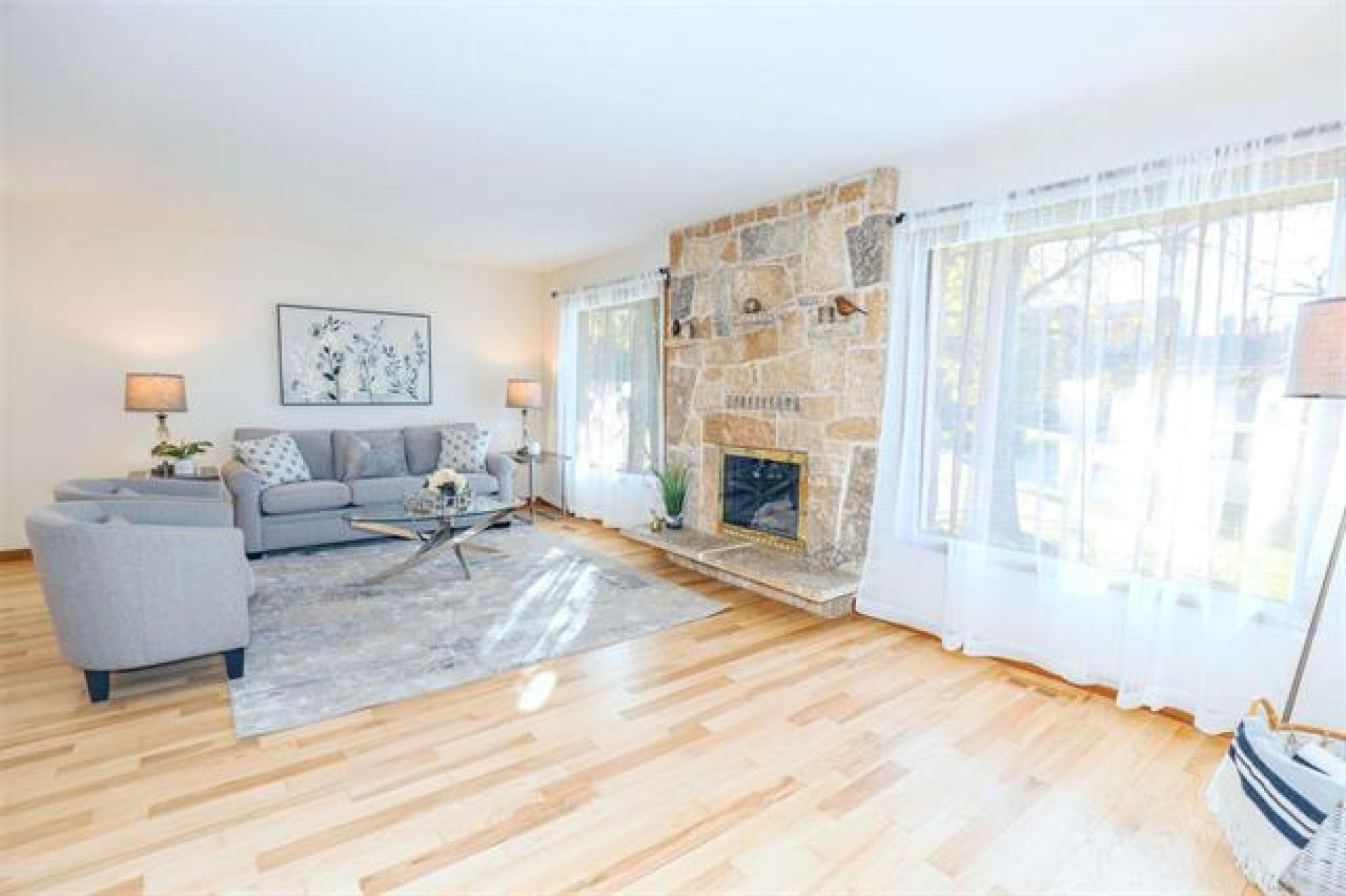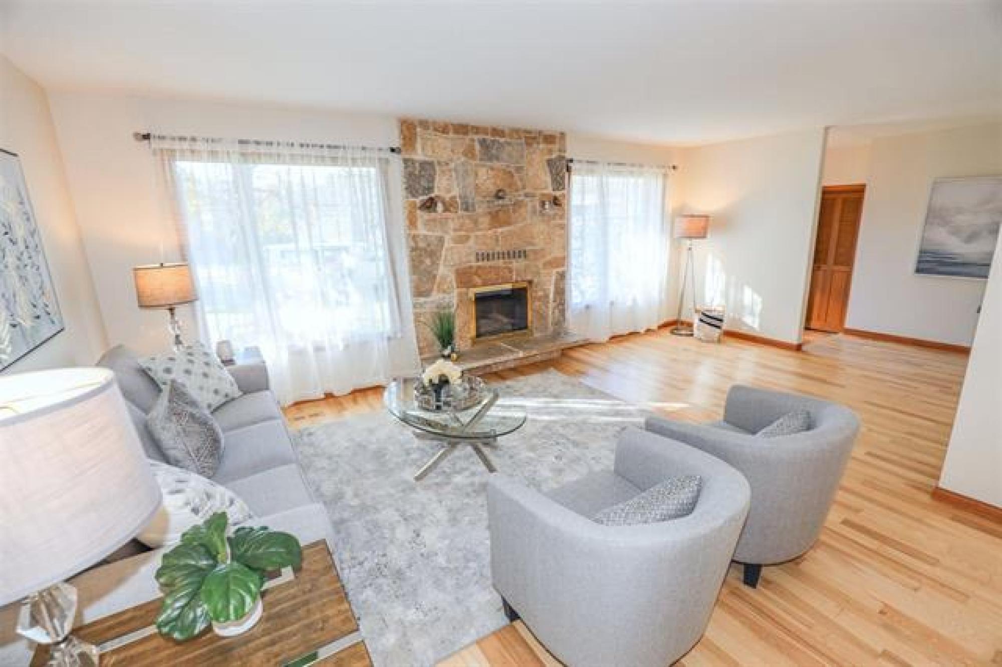 Viewings start Thurs Oct 9. Offers reviewed Tues Oct 14 at 8pm. LIKE A SHOW HOME! Extremely desirable Charleswood location. Tastefully remod 1400 sq ft bungalow features attractive curb appeal, stone front, newer re-finished hardwoods through main floor, new designer light fixtures throughout, spacious living/dining room with gas FP, stunning remod white eat in kitchen, loads of new cabinets, quartz counters, tile backsplash & 4 new stainless steel appliances, 3 generous size main floor bedrooms, 3 full updated baths, main bath & ensuite with Bathfitter tub or shower & new quartz vanity tops, functional front entrance area & side entrance area with garage & backyard access. Nicely finished basement, huge modern drywalled recroom with wet bar, drop ceiling, pot lighting & loads of space for games area, remod bath with glass shower, good size potential 4th bedroom (window not meet egress), large laundry/utility room new with sink, cabinets, washer & dryer. Central air & updated Lennox high efficient furnace. Private fenced yard with garden area & screened room off back entrance. Paved drive to double attached garage with 2 updated insulated car doors. Great family home. Truly a must to see!