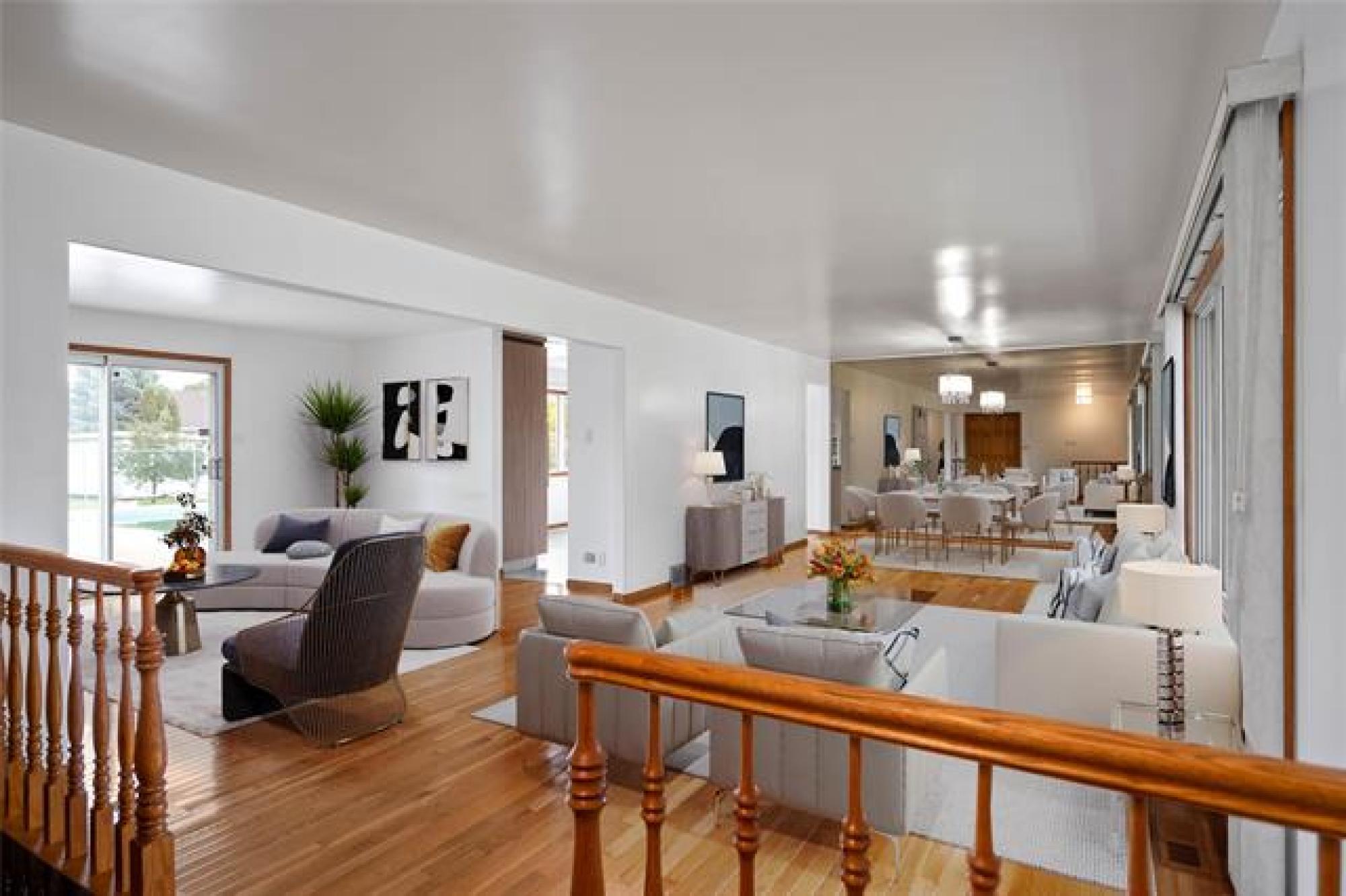 Offers as received with 24 hours for acceptance. Pride of ownership is apparent as soon as you walk in the door. Lovingly cared for by the same family for decades. Gleaming hardwood floors, massive living room/dining area, cozy family room w/wood burning fireplace. All 4 main floor bedrooms are generous w/ large windows & closets. The primary bedroom has a double closet w/ full ensuite bath. Huge eat-in kitchen features tile flooring, newer appliances & a ton of counter space & storage. Handy main floor laundry & 2nd full bathroom nearby. Your fully finished basement is massive! Offering a second kitchen, full bathroom, wet bar, den which could be a wine cellar + additional storage rooms. You will love your inground pool, fenced, landscaped yard, huge shed & storage room. Double attached garage w/ front driveway for additional parking. Updates include: H/E furnace, some windows, kitchen, some appliances, NEW washer & dryer, interior paint, lighting, bathroom vanity, shingles, pool liner & more. Close to all levels of schooling, shopping, public transportation & all other amenities. Book your viewing today!