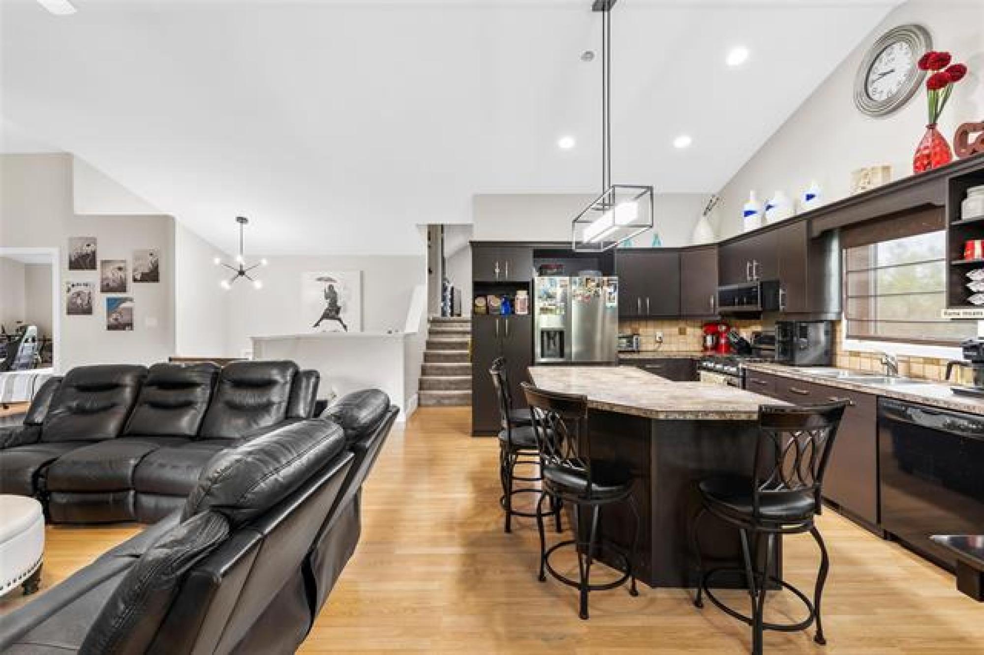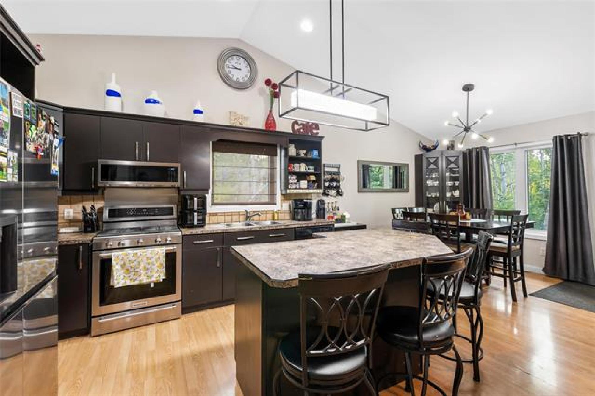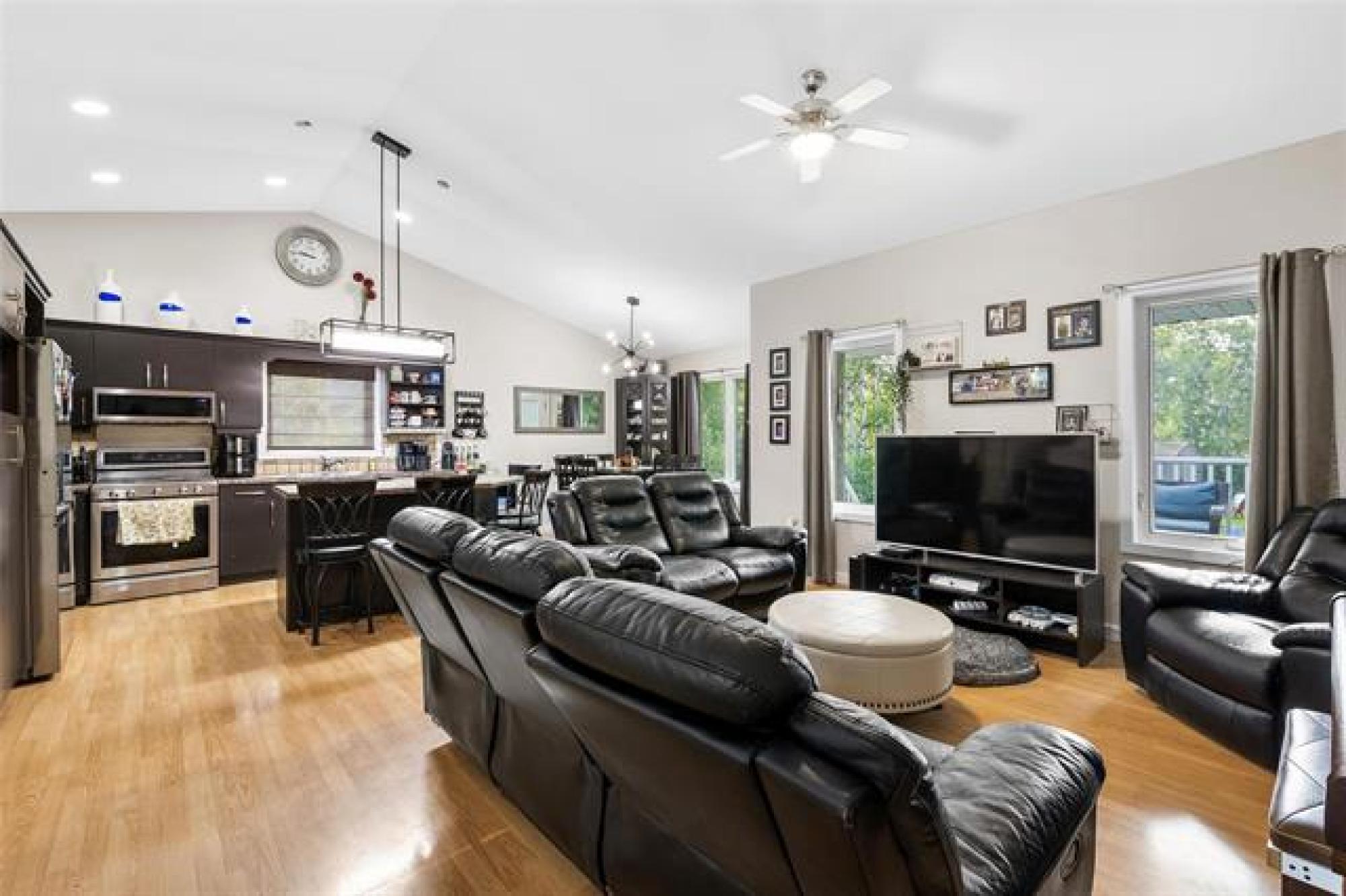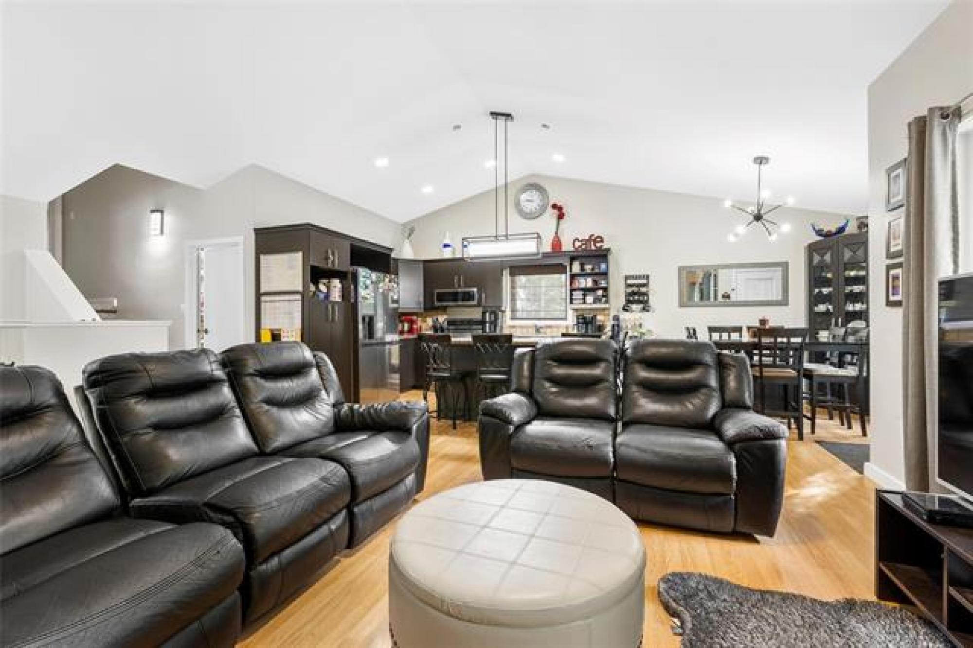 SS Saturday Sept 13 - Welcome to 10 Eastwood – a spacious 5-bedroom family home on a beautifully treed lot! This well-designed cabover offers an exceptional layout with plenty of room for everyone. The main floor features vaulted ceilings and an open-concept kitchen, living, and dining area with direct access to the backyard deck. A large butler’s pantry (with laundry) adds convenience, along with two bedrooms and a full bathroom. Just a few steps up, the private primary suite impresses with a walk-in closet and ensuite. The fully finished basement provides even more living space, including two additional bedrooms, a full bathroom, a 24.5' x 14' rec room, storage, and plumbing for a future kitchen. With its own direct access to the garage, this level offers great potential for a private suite. Outside, enjoy the oversized yard complete with a patio, fire pit, and storage shed—perfect for relaxing or entertaining. An attached garage that currently doubles as a man cave adds extra usability or just a nicer place to park. Located in one of Steinbach’s most desirable neighborhoods, this home combines space, comfort, and style. Updates: A/C 2024, Shingles 2023, Furnace 2019. Book your showing today!