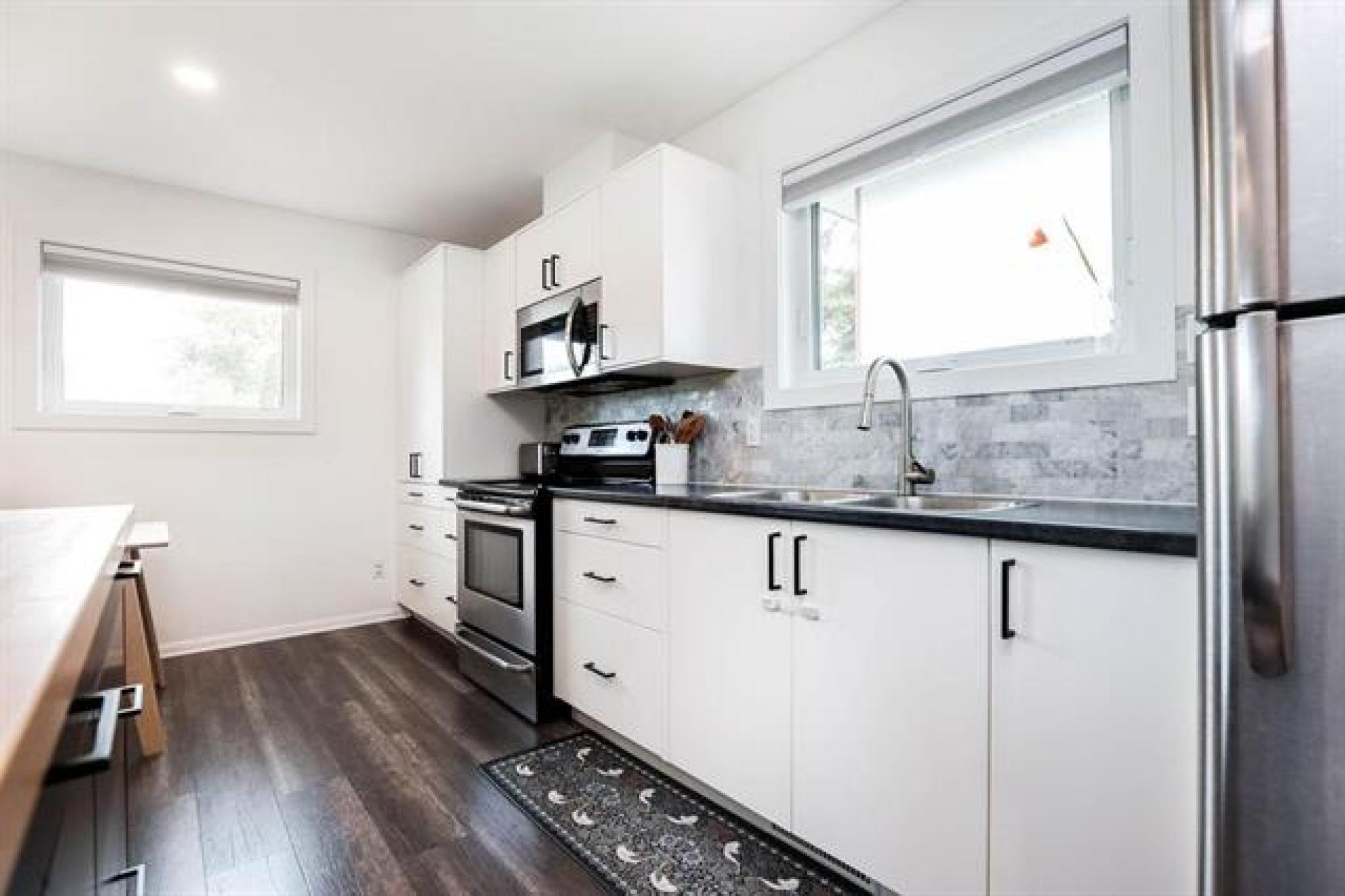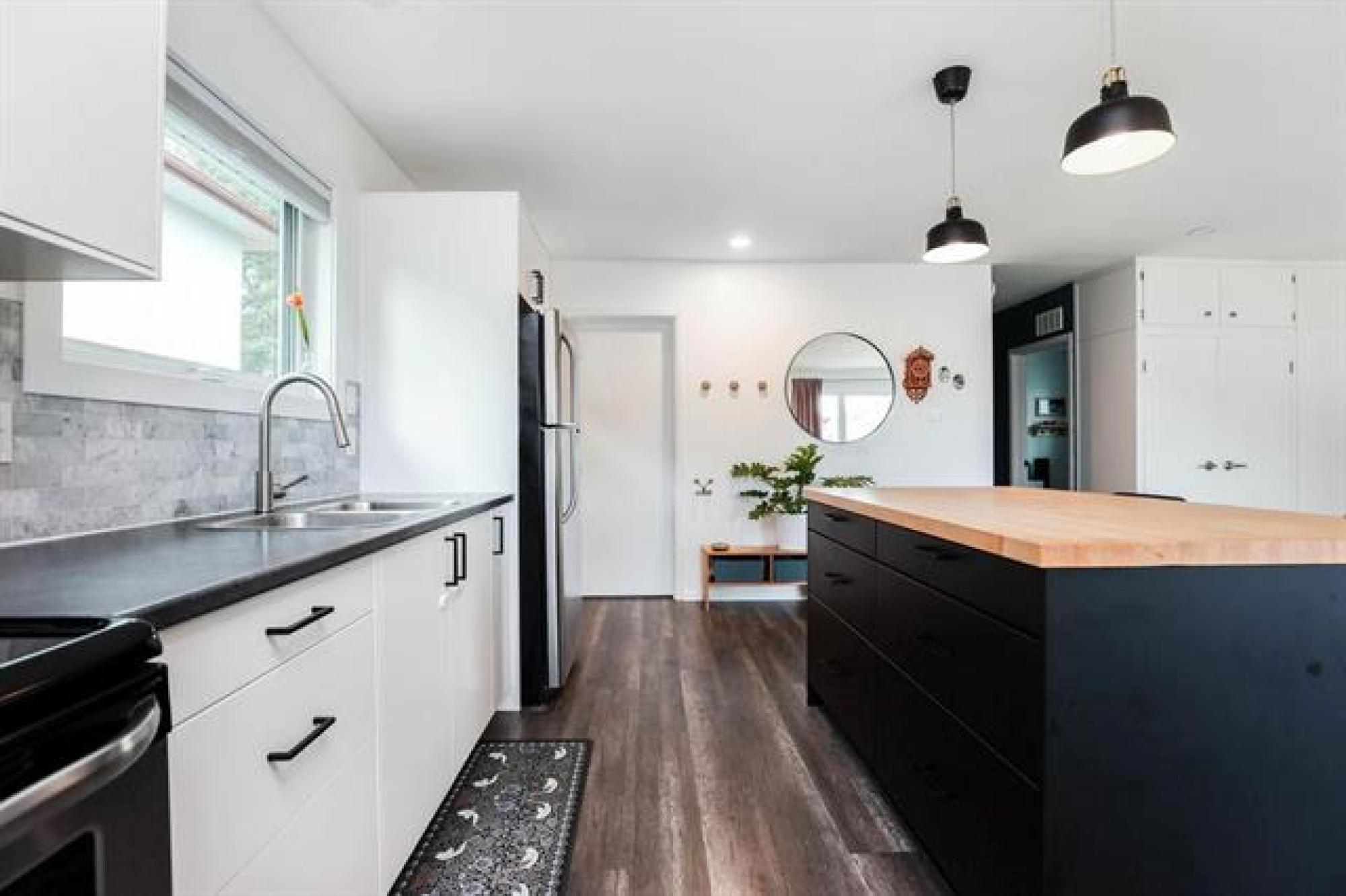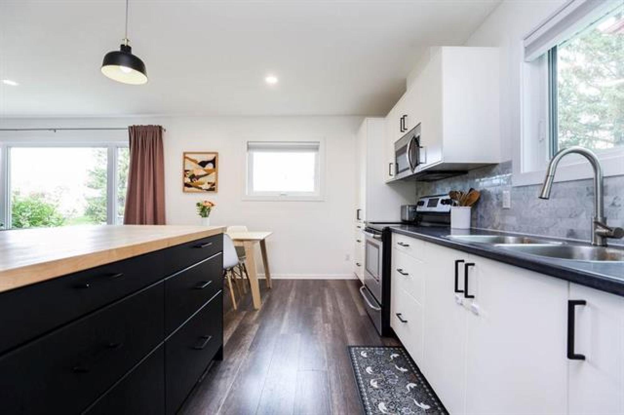 Showings Start October 15/2025 Offers reviewed October 21/2025. Tastefully updated & remodeled! This bright and spacious home features a remodeled kitchen, laminate flooring, LED lighting, and fresh paint throughout. Custom features in the house include a kitchen island with maple countertop, recessed medicine cabinet, and outdoor pergola. Entire exterior has been renovated in 2024 to improve energy efficiency by removing old exterior stucco and sheeting, re-insulating, and adding an extra 2" of continuous exterior insulation. Upgrades to the house were triple pane windows throughout (2023), upgraded attic insulation (2021), hybrid heat pump hot water tank (2024), and an HRV to bring fresh outside air into the newly sealed house (2024). The backyard features a patio, garden box, and pergola. Close to schools, playgrounds, library, swimming pool, golf, shopping, and public transportation. This home shows beautifully!