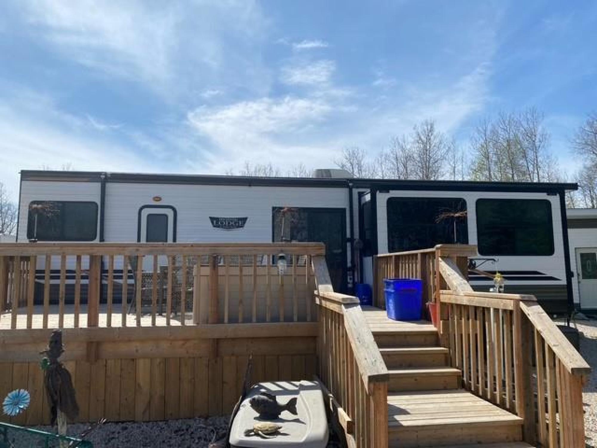 'FANTASTIC GETAWAY RESORT.' YOUR OWN PLACE TO UNWIND WITH 3 GUEST BUILDINGS ONLY 35 MINUTES FROM WINNIPEG NORTH PERIMETER JUST OFF #6 HWY. FEATURING A 2020' FOREST RIVER' MODEL WILDWOOD 40 FT FLT XLARGE 2BR MOBILE TRAILER SECURED WITH HUGE FRONT DECK. COMPLETELY SET UP WITH HYDRO AND WELL AND SEPTIC HOLDING TANK. FRONT 'STONE' DRIVEWAY TO LARGE CLEARING WITH TONNES OF PARKING. OUTDOOR OVERGROUND POOL WITH 3 GUEST BUILDINGS AND A SHED AND SURROUND BY TREES ON 1.25 ACRES.SAND PIPER BEACH AND TWIN BEACHES JUST MINUTES AWAY AND TOWN OF ST LAURENT. PAVED ROAD ALL THE WAY