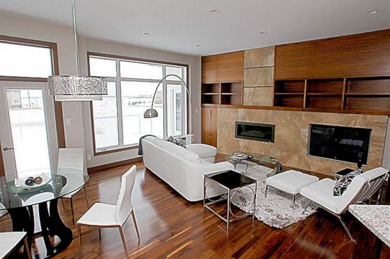 That same theme applies to 27 Wood Sage's walk-out lower level. Like the main level, it features high ceilings, huge windows (along with a door to a covered patio) and rich finishes. Once again, there's a handmade walnut entertainment unit -- and a laminate floor installed over the basement's wood structural floor. Two huge bedrooms (in their own private wing), a four-piece bath and tons of storage round out the basement, which is nearly as big as the main level.