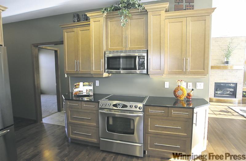 A stylish design feature -- a rounded wall that sales representative Robb Whitla says always catches visitors' imagination -- then directs you to a hallway to the right. Off that hallway is a den (or bedroom), garage entrance and laundry room, plus a door to the kitchen's pantry.