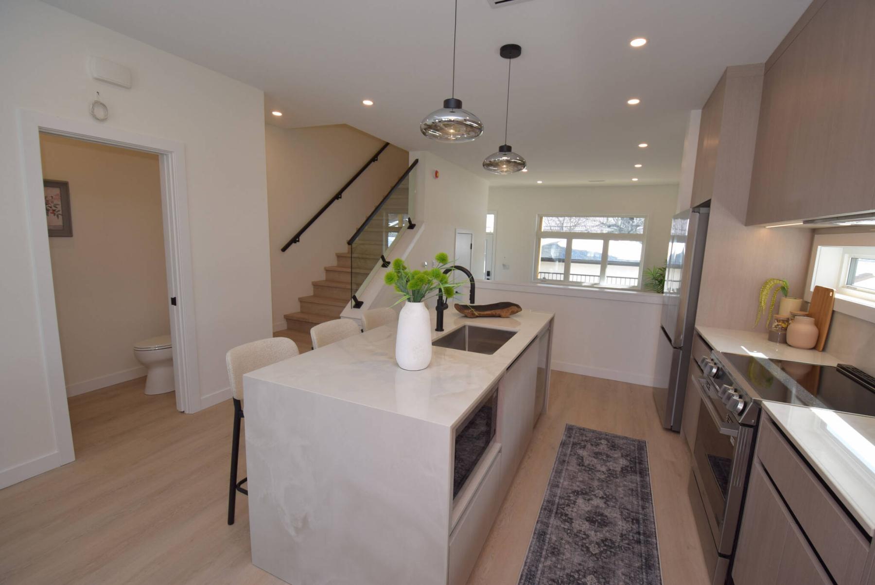 “There’s a convenient main-floor powder room, plus a side entrance off the great room with a solid-core door; all doors in the home are the same. It provides private access to the lower level, which offers potential for a secondary suite.”