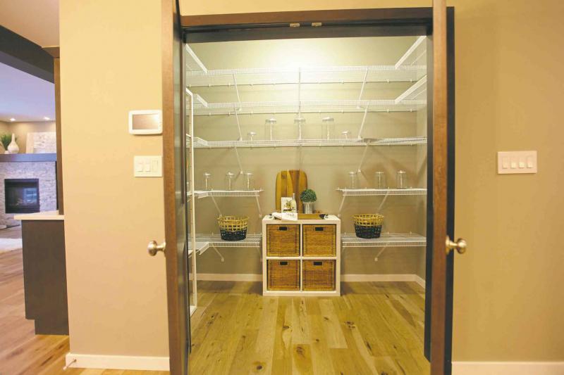 Style is also omnipresent in the form of rich engineered hickory hardwoods that run from the front-oriented dining/flex space through the kitchen, dinette area and family room. Additional features such as the pantry's dark-stained double doors add character to the main living area.