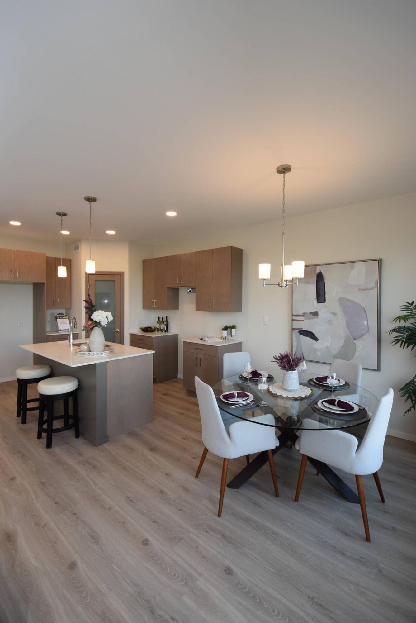 Style and function merge perfectly in the intelligently designed kitchen/dining area.