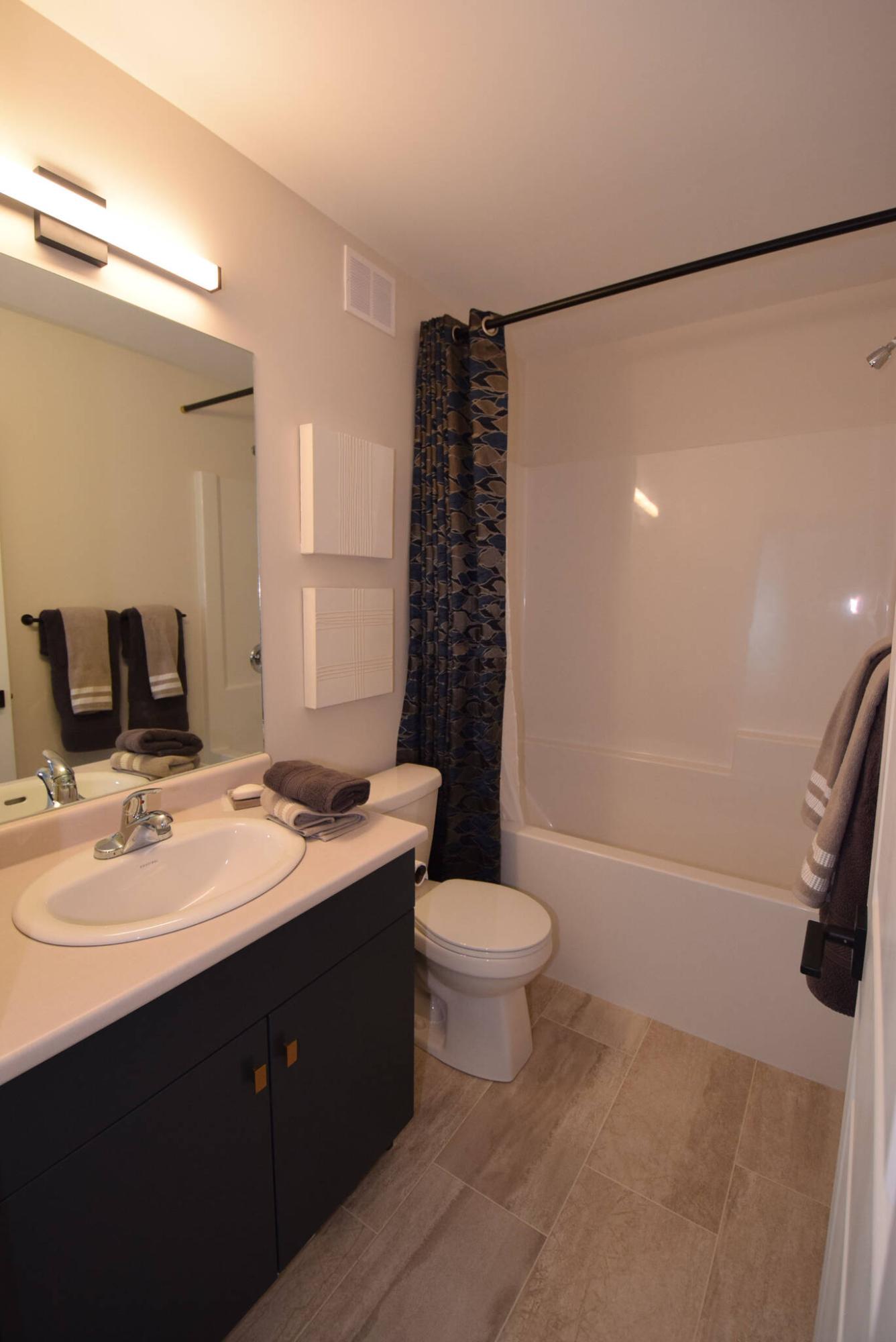 The spacious, smart looking ensuite comes with a tub/shower combo instead of just a walk-in shower — a nice added touch.