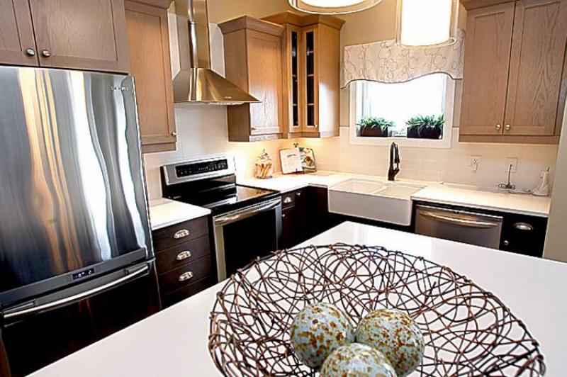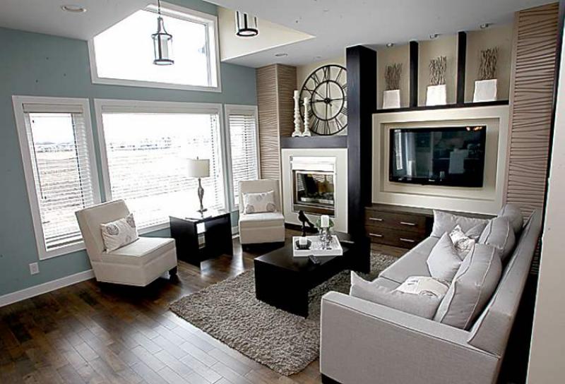 "It features a custom (dark oak) entertainment unit that comes with decorative sculptured (taupe-coloured) art panels at either end, a ribbon-style fireplace with stainless steel accent and a maple hardwood floor (same as in the dining area and kitchen)," Finch said. "It's a space that's great for entertaining or spending time with the kids."